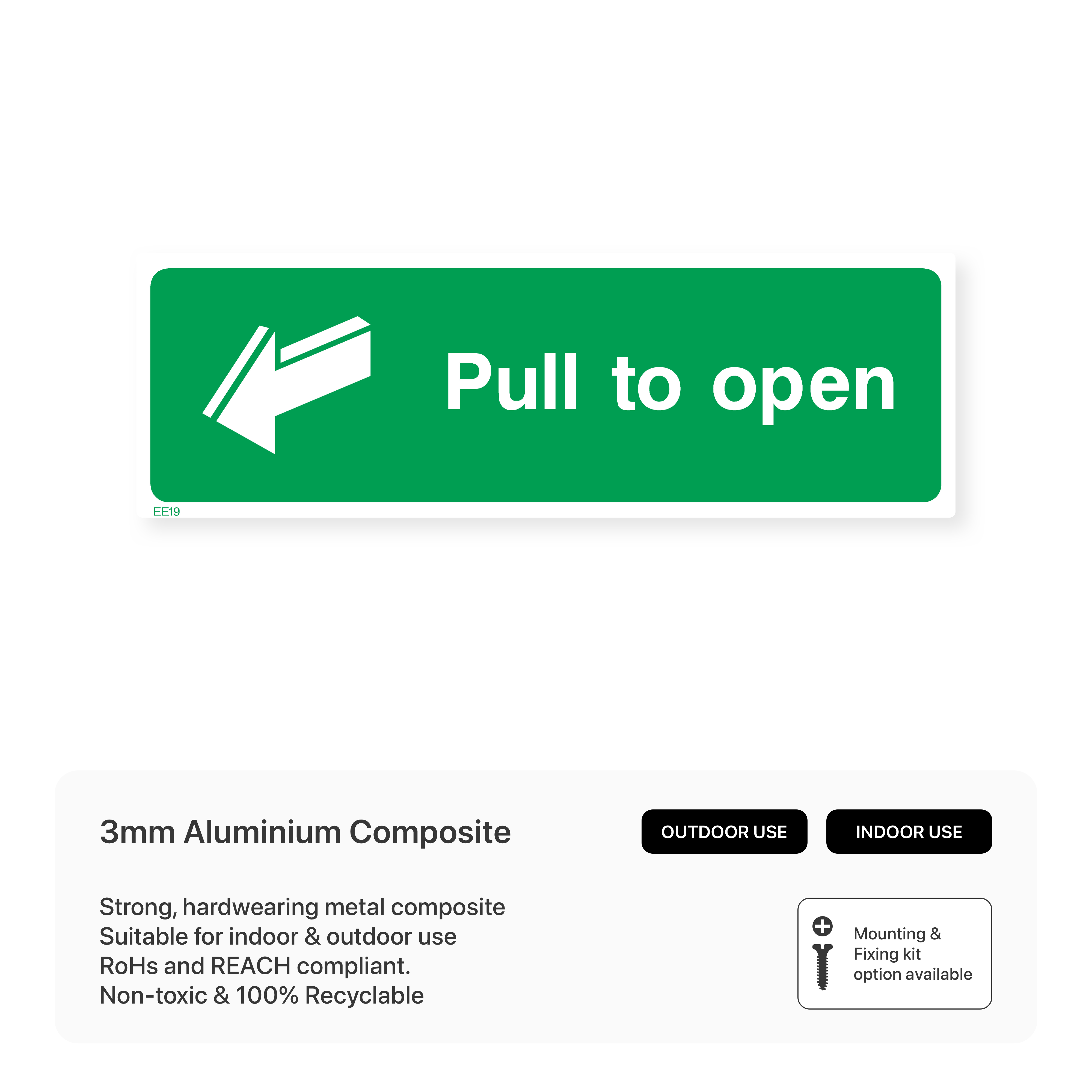 Clearly mark doors with our "Pull to open" sign. This sign provides clear instructions on how to open the door, ensuring ease of use and preventing accidents.