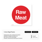 Clearly label areas designated for raw meat handling with our "Raw Meat" signs. Maintain hygiene and prevent cross-contamination in food preparation areas.