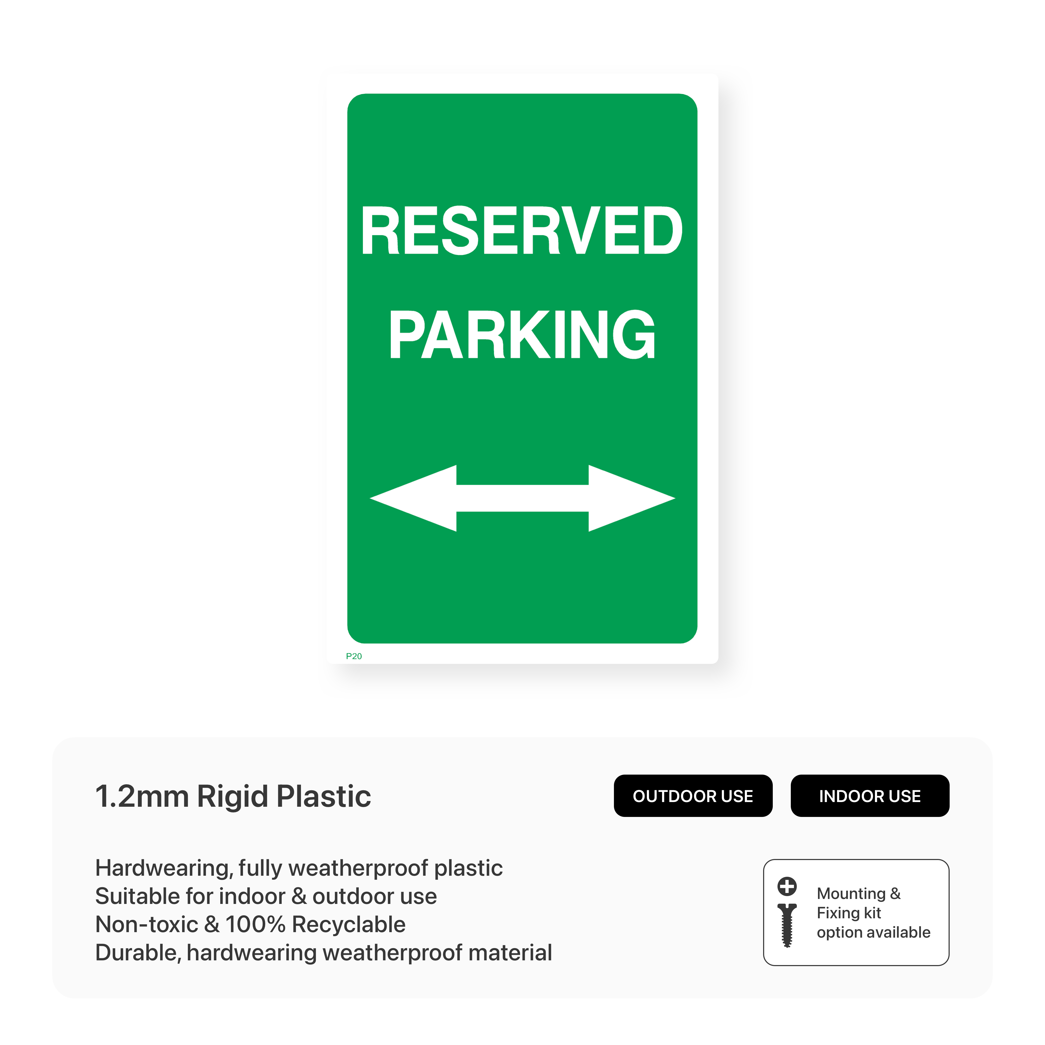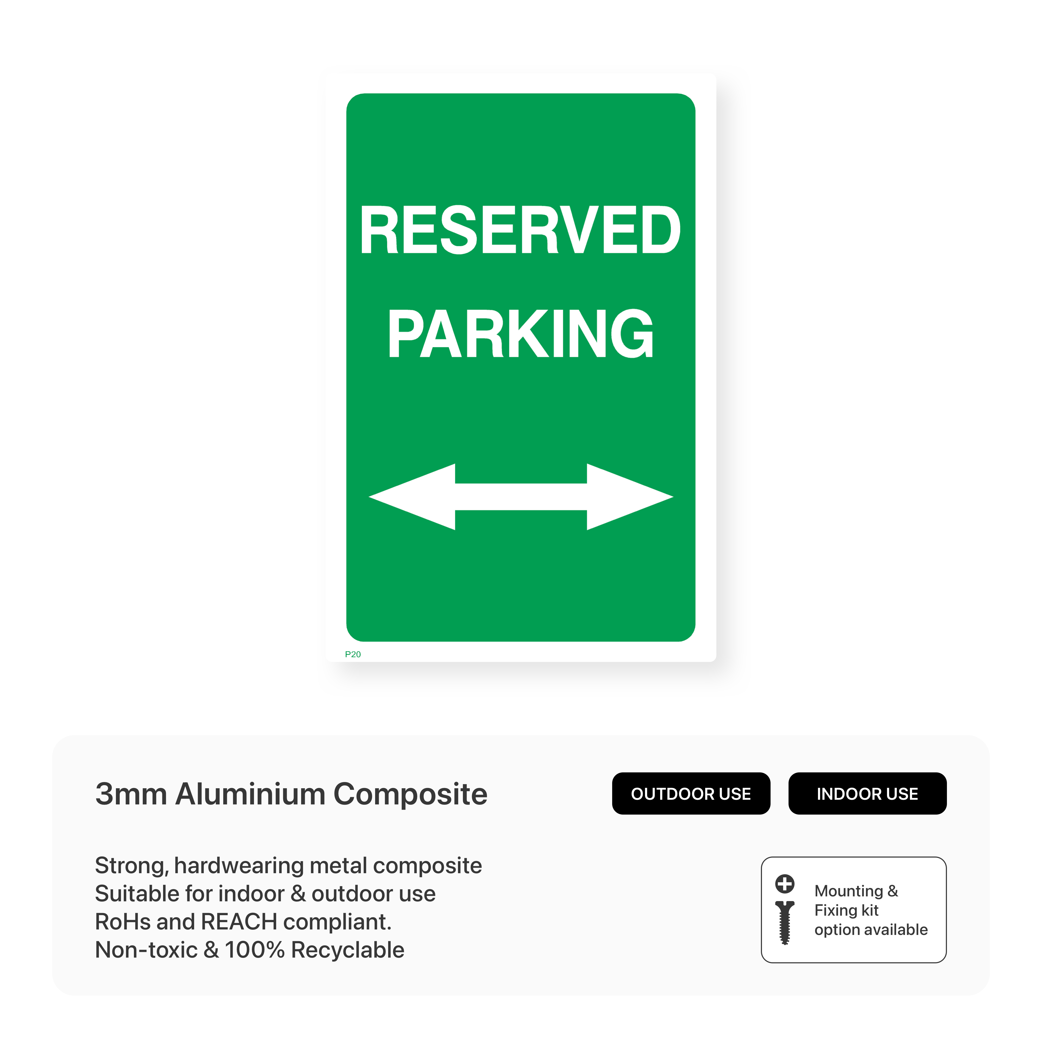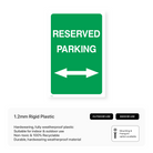 Guide drivers to reserved parking areas with our "Reserved Parking (Arrow Both Ways)" sign. This sign clearly indicates that reserved parking is available in both directions, ensuring easy navigation and a smooth parking experience. Choose from various sizes and materials to suit your specific needs and create a user-friendly parking environment.