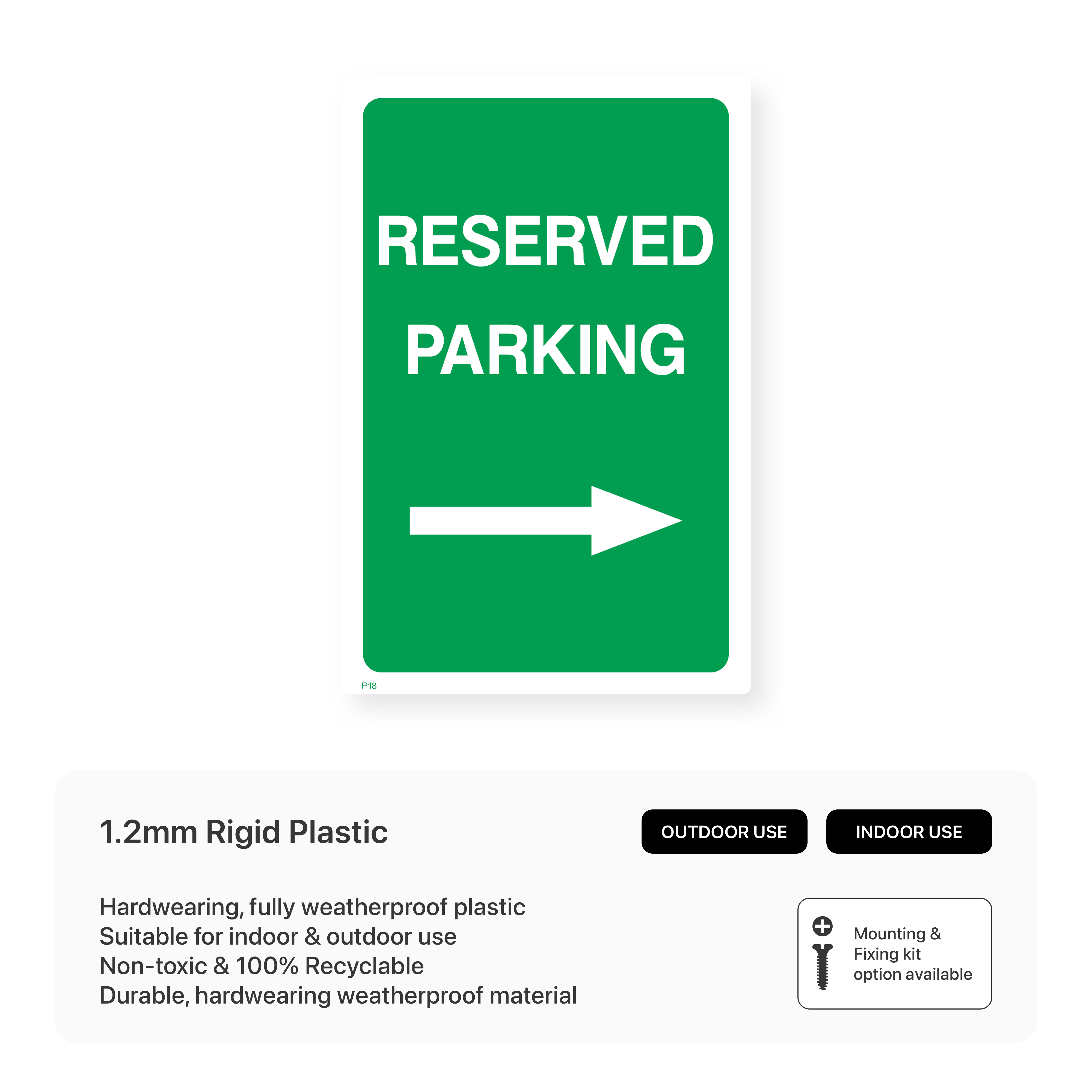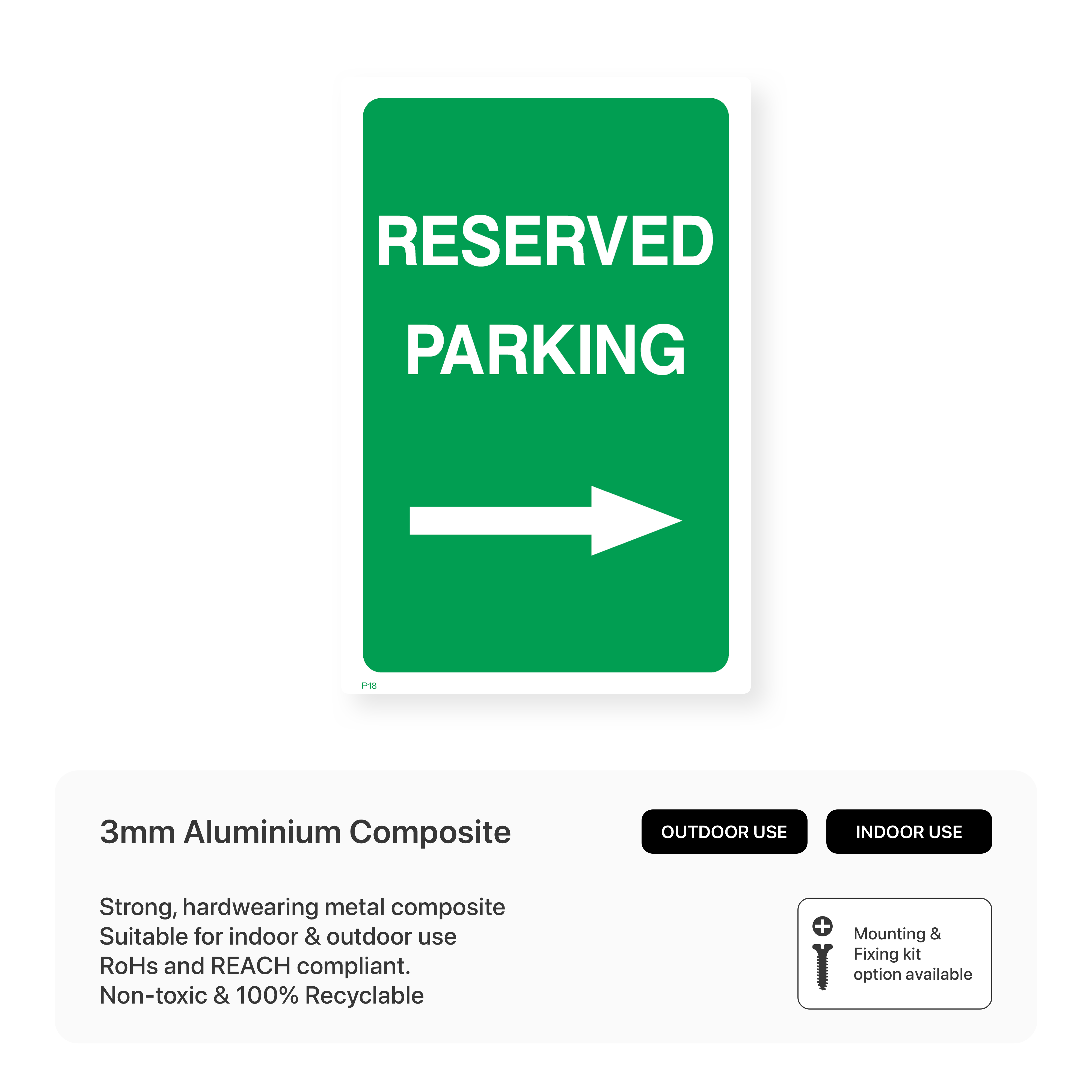 Direct drivers to reserved parking areas with our "Reserved Parking (Arrow Right)" sign. This sign clearly indicates the direction of the reserved parking spaces, ensuring easy navigation and a smooth parking experience. Choose from various sizes and materials to suit your specific needs and create a user-friendly parking environment.