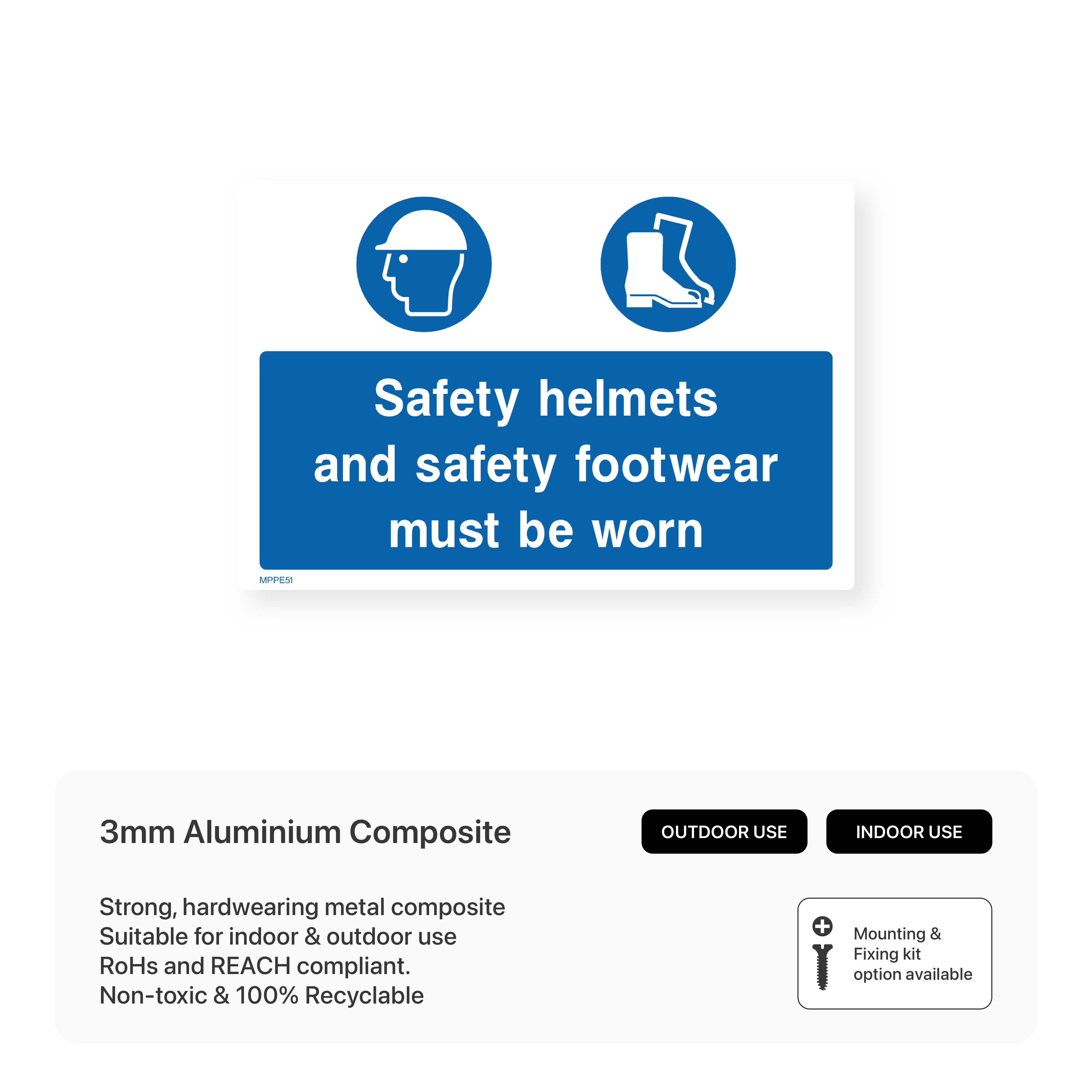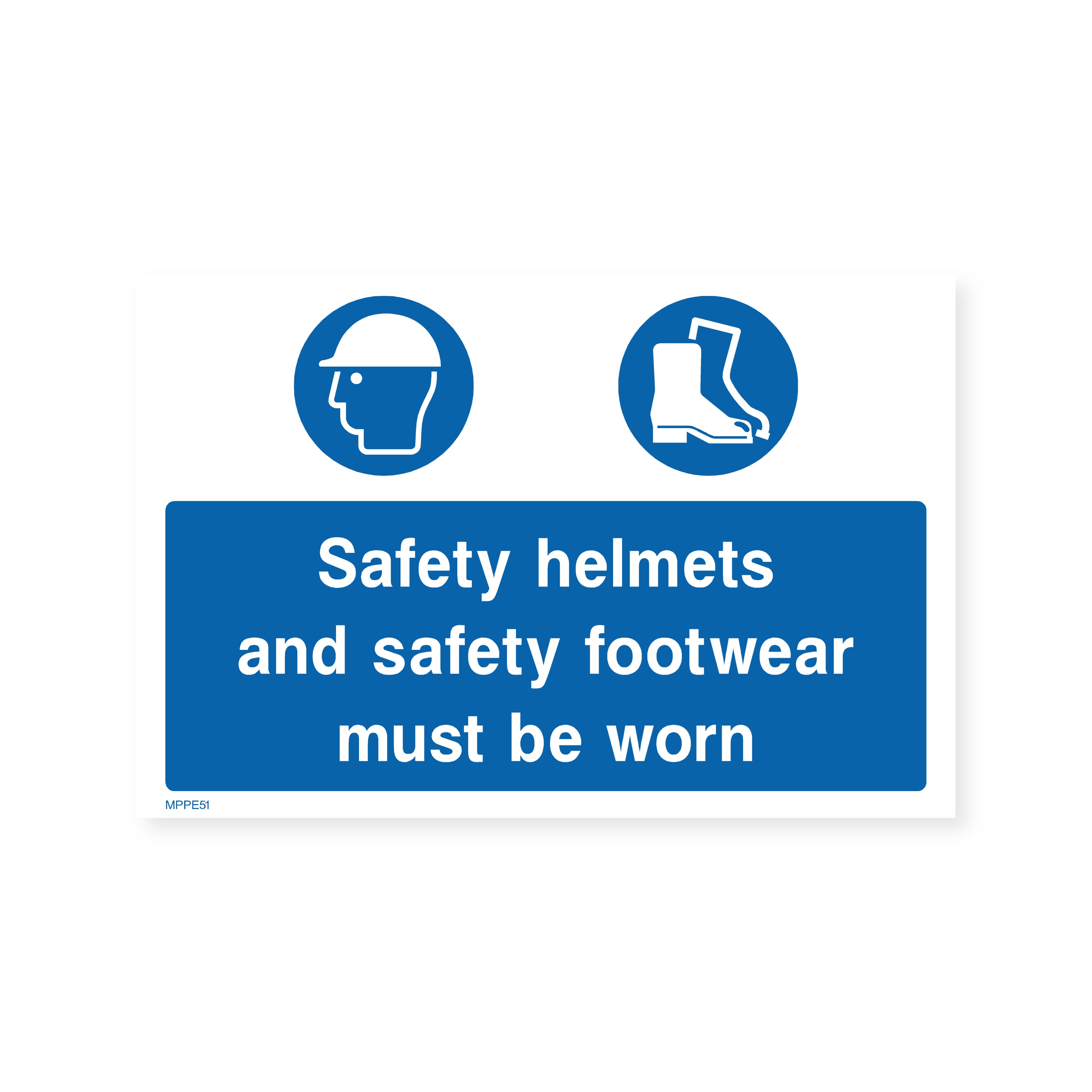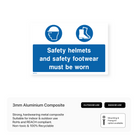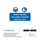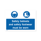 Protect your workforce from head and foot injuries with our "Safety Helmets and Safety Footwear Must Be Worn" landscape sign. This sign clearly communicates the mandatory use of both safety helmets and footwear in designated areas to ensure compliance with safety regulations and prevent accidents. Choose from various sizes and materials to create a safer workplace.