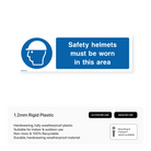 Protect your workforce from head injuries with our "Safety Helmets Must Be Worn in This Area" sign. Clearly mark areas where hard hats are mandatory to ensure compliance with safety regulations and prevent accidents. Choose from various sizes and materials to suit your specific needs and create a safer workplace.