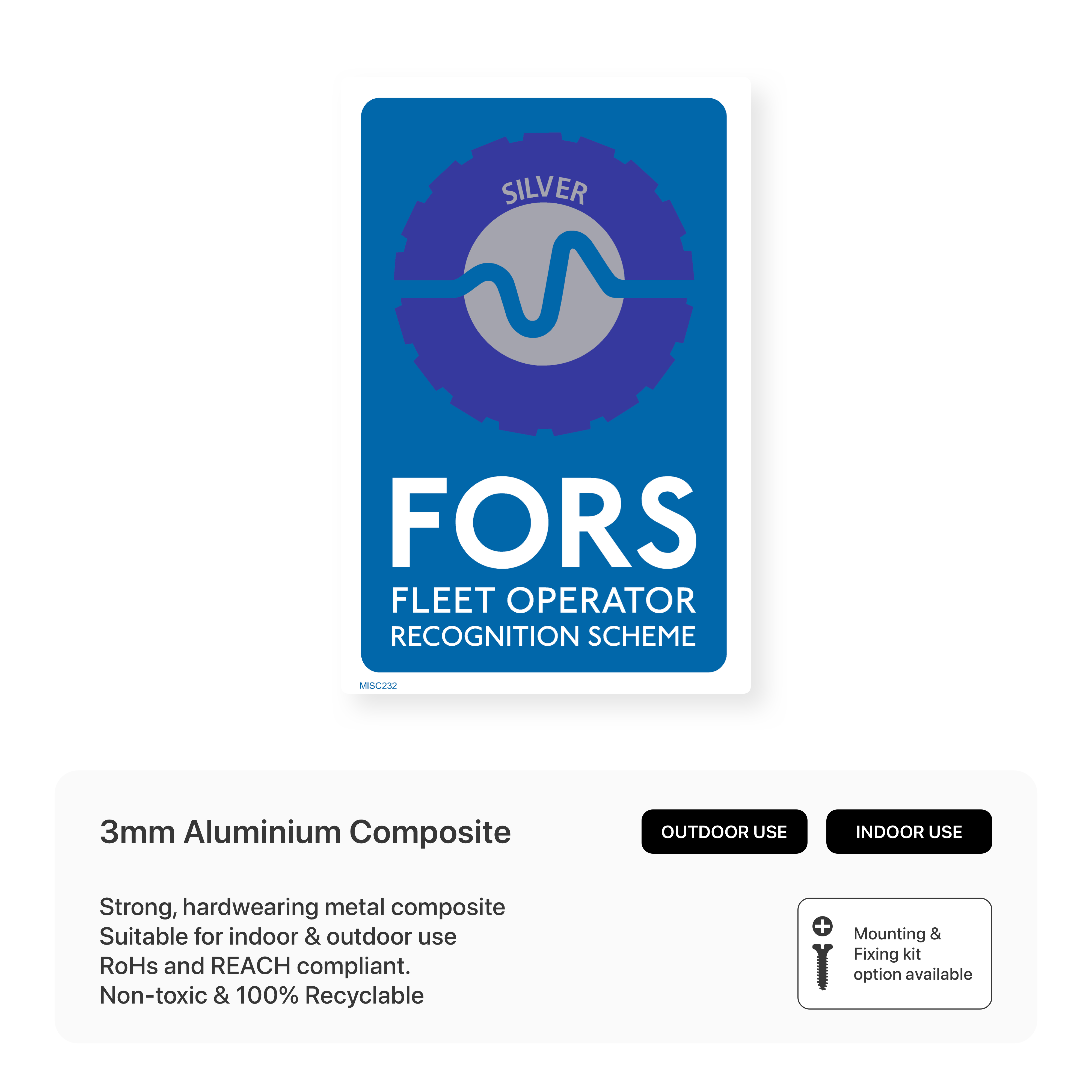 Showcase your commitment to road safety and operational excellence with our "Silver FORS Fleet Operator Recognition Scheme" signs. Demonstrate compliance with industry standards and enhance your company's reputation.