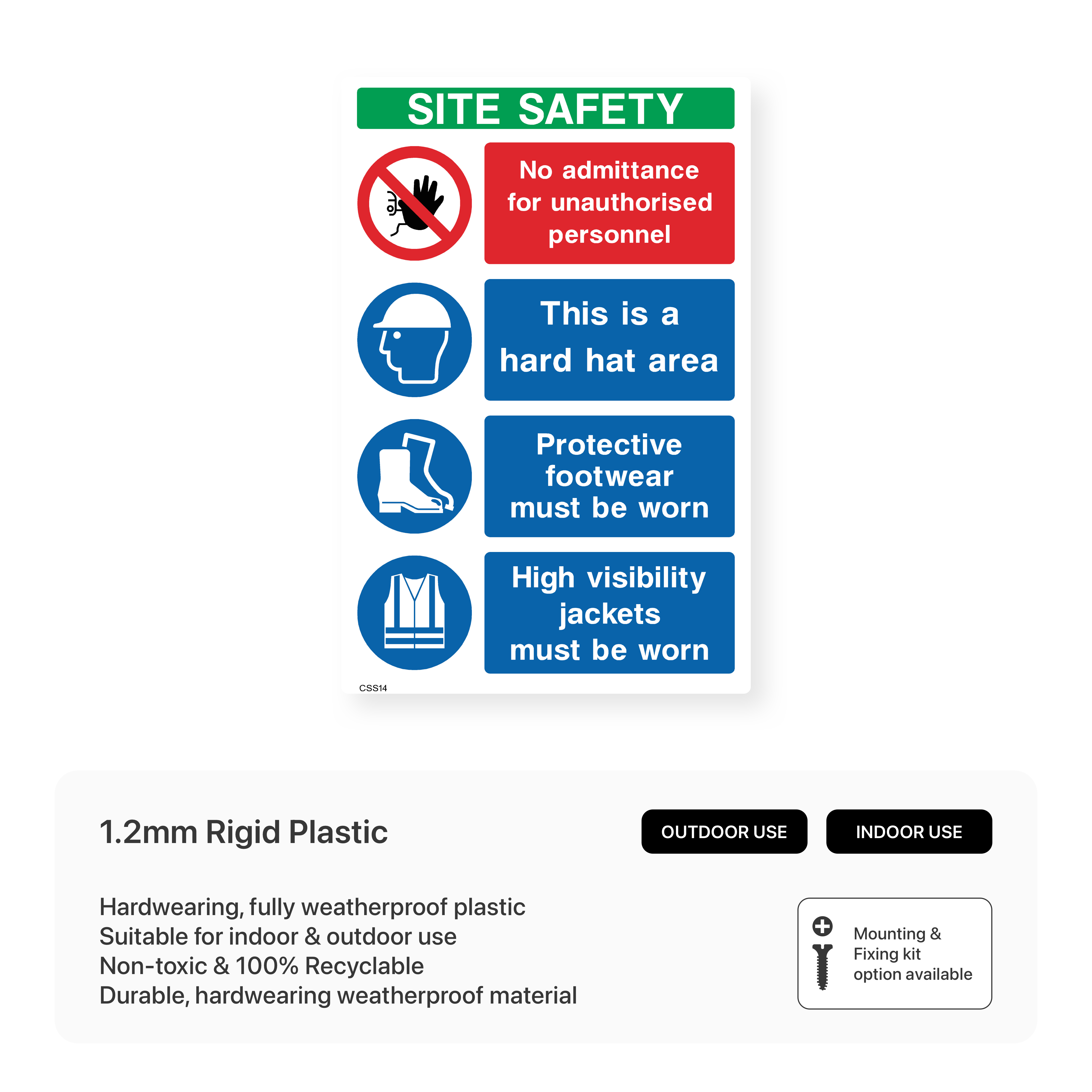 Enforce restricted access with our "Site safety - No admittance" sign. Clearly communicate that entry is prohibited to unauthorised personnel, ensuring safety and security on your construction site.