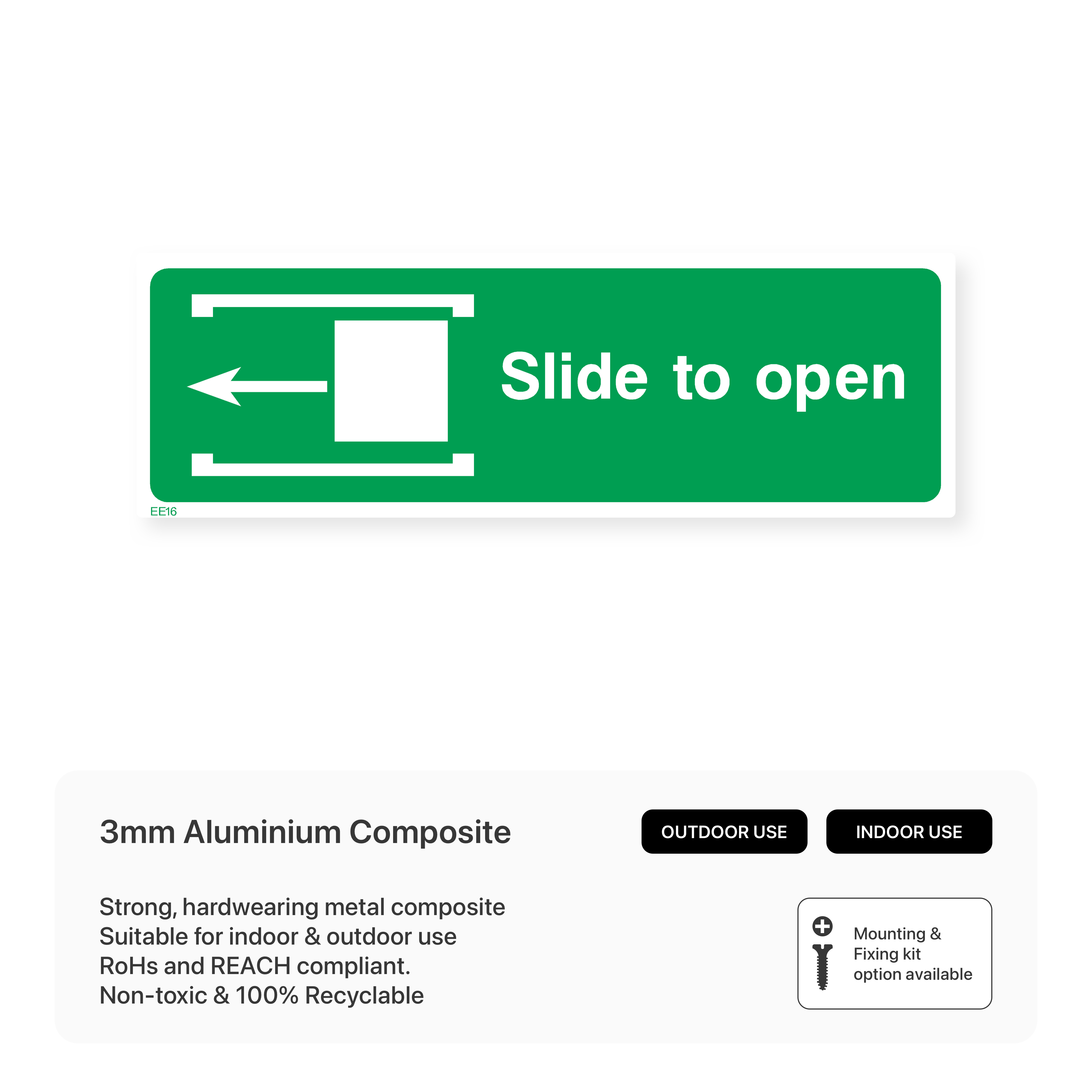 Clearly mark fire exit doors with our "Slide to open - Left" sign. This sign provides clear instructions on how to open the door in case of emergency, ensuring a quick and safe evacuation.