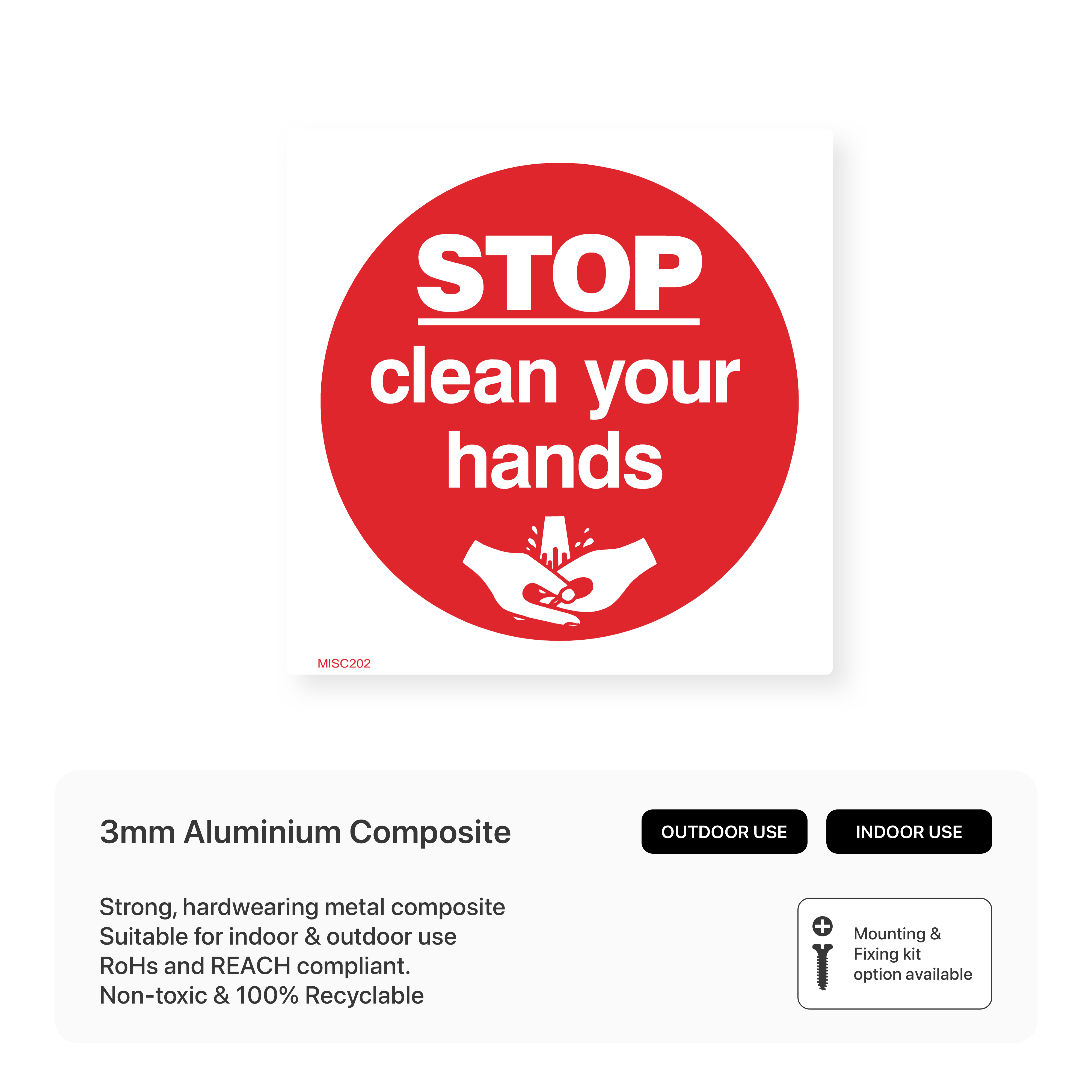 Encourage proper hygiene practices with our "Stop Clean Your Hands" signs. Perfect for food preparation areas, restrooms, and healthcare facilities.