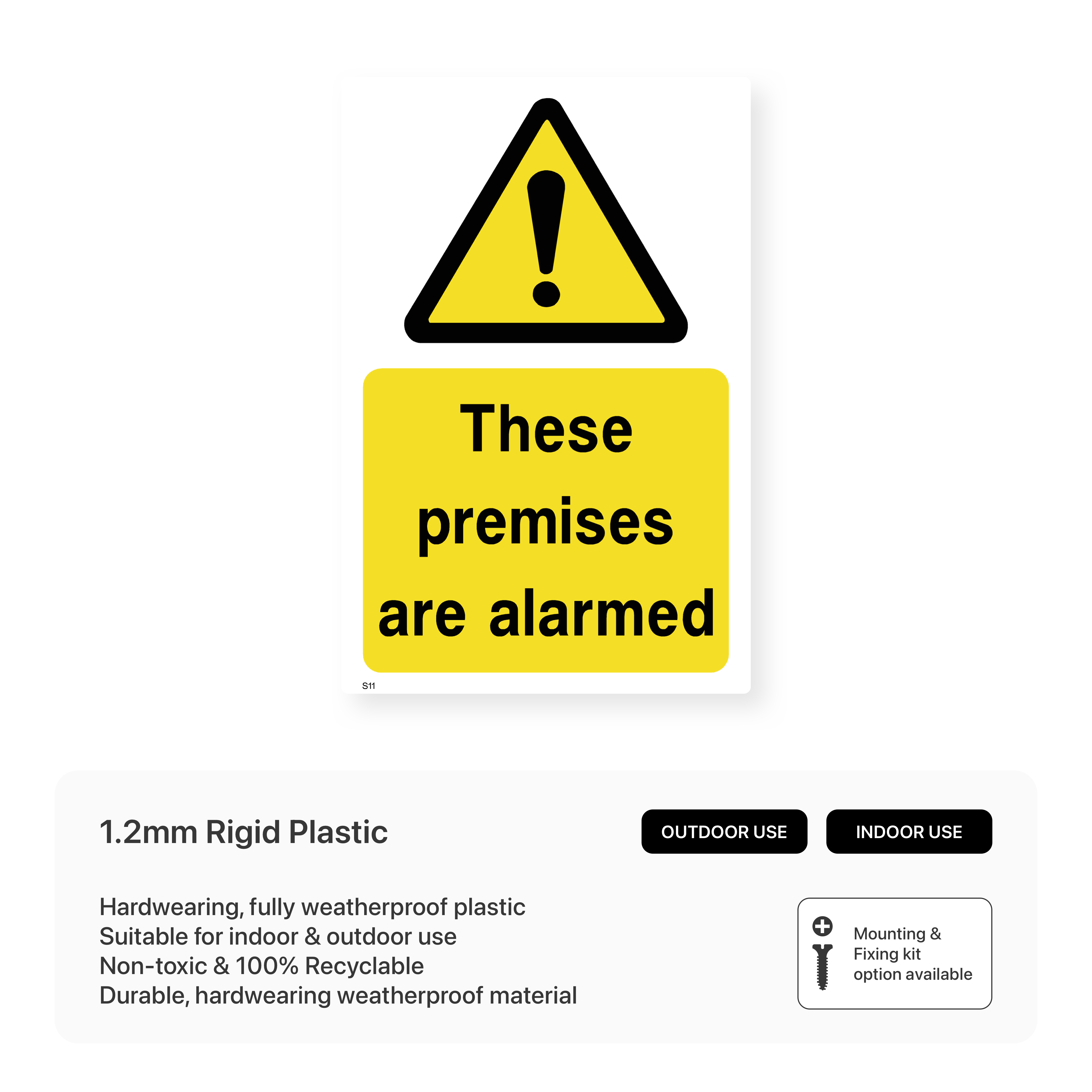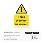 These premises are alarmed. Deter unauthorized access and criminal activity with this clear warning sign.