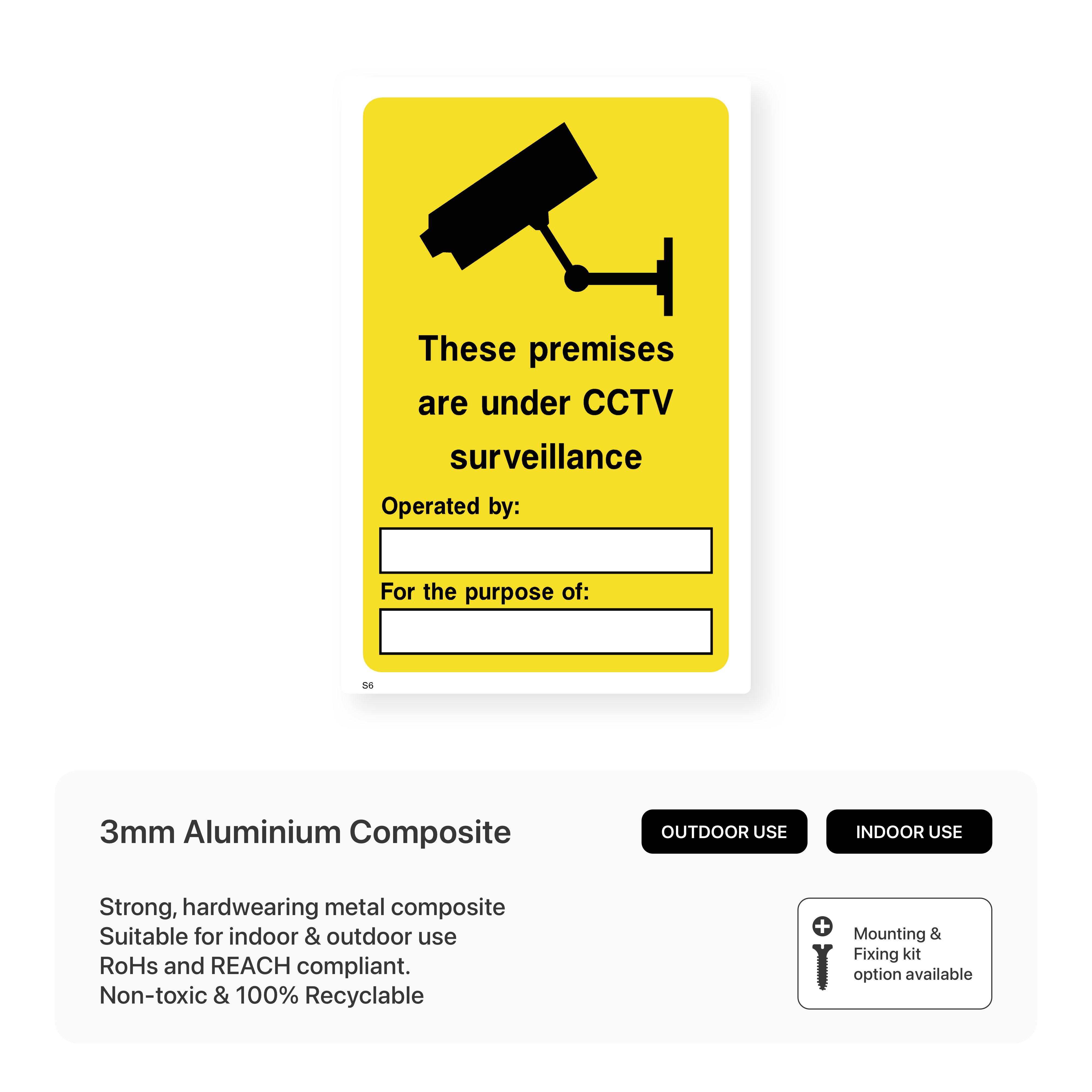 These premises are under CCTV surveillance: Inform about the presence of CCTV surveillance. Operated by: State the entity operating the system. For the purpose of: Specify the purpose (e.g., security, safety).