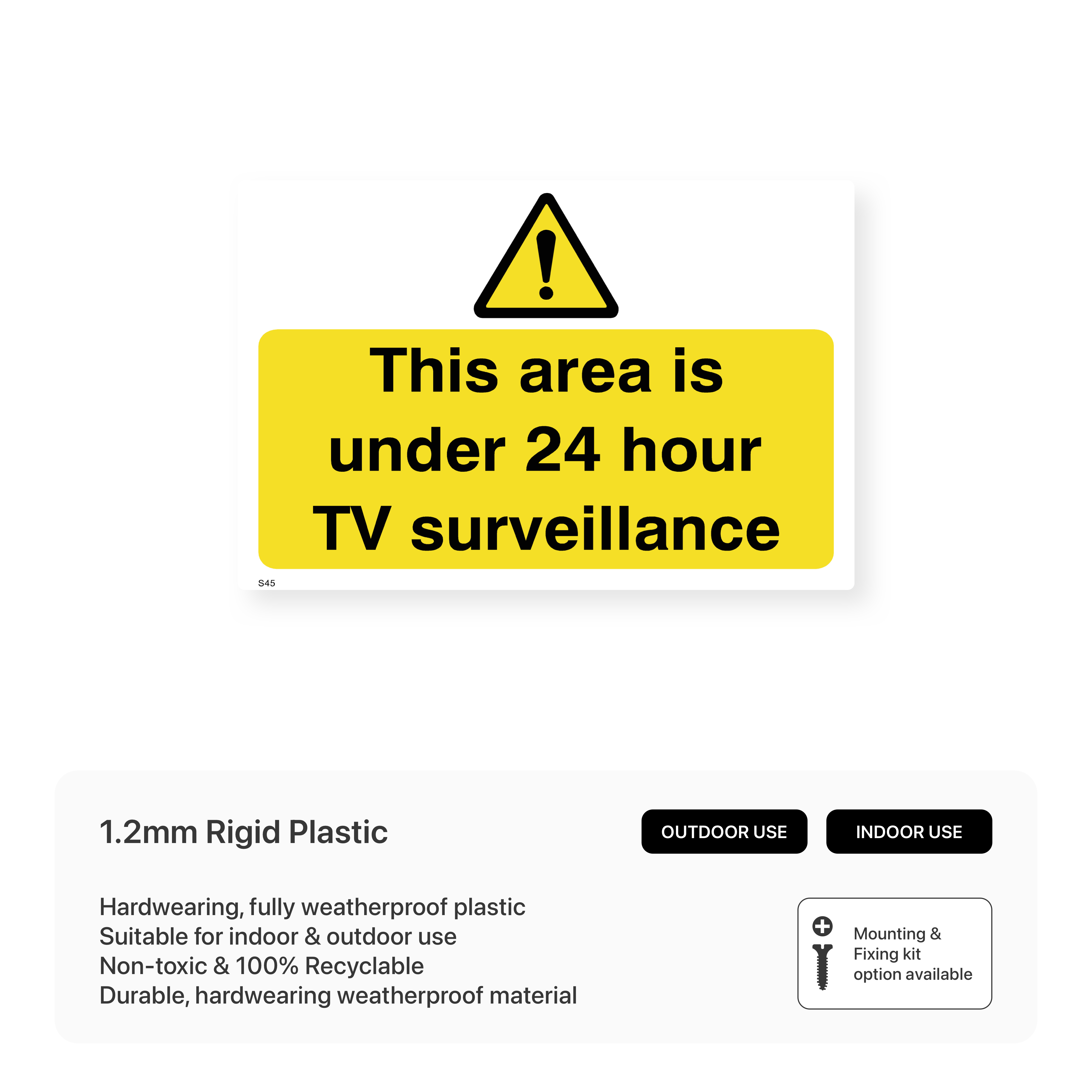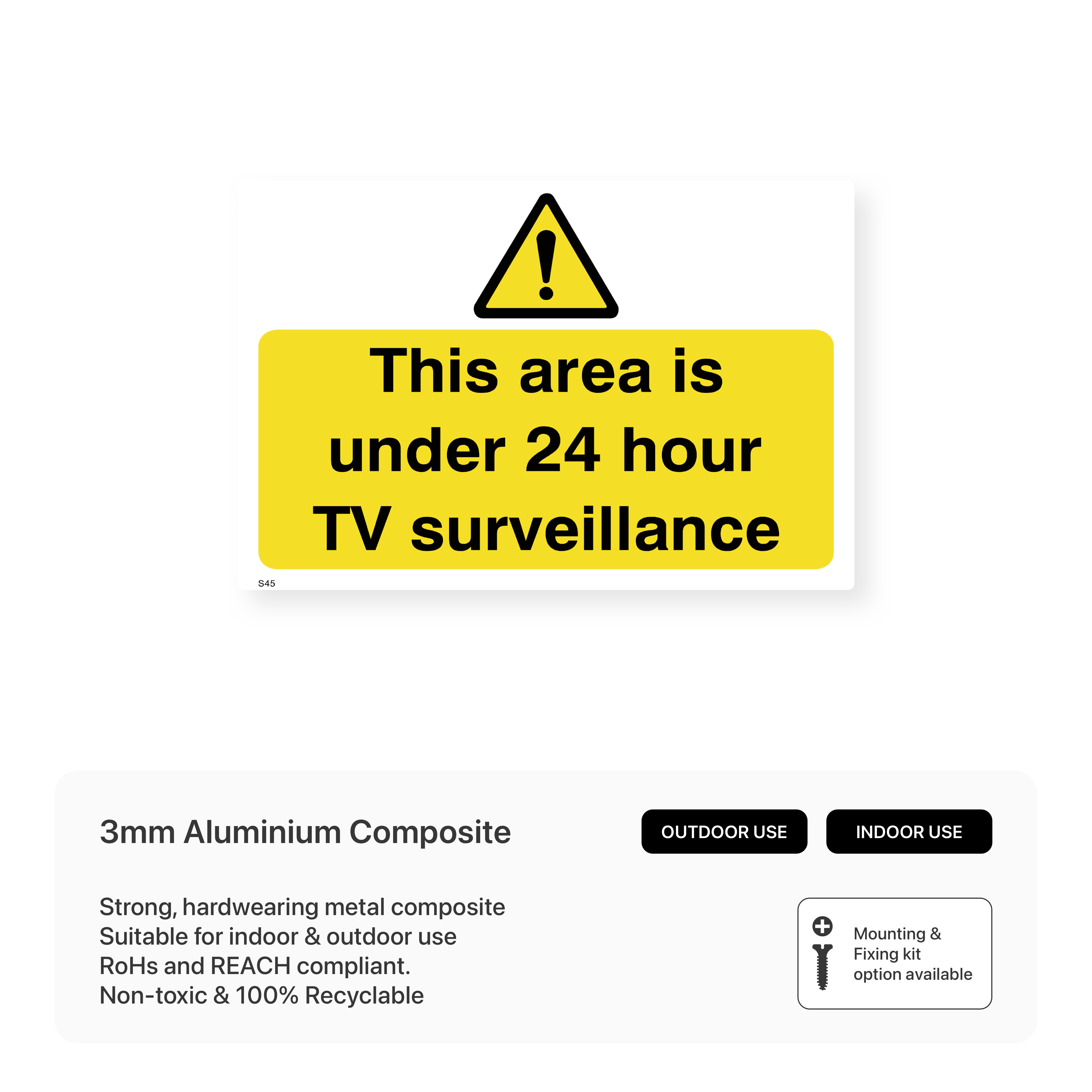 This sign clearly indicates that the area is monitored by CCTV cameras 24 hours a day, 7 days a week. Deter theft, vandalism, and other criminal activity with this highly visible warning.