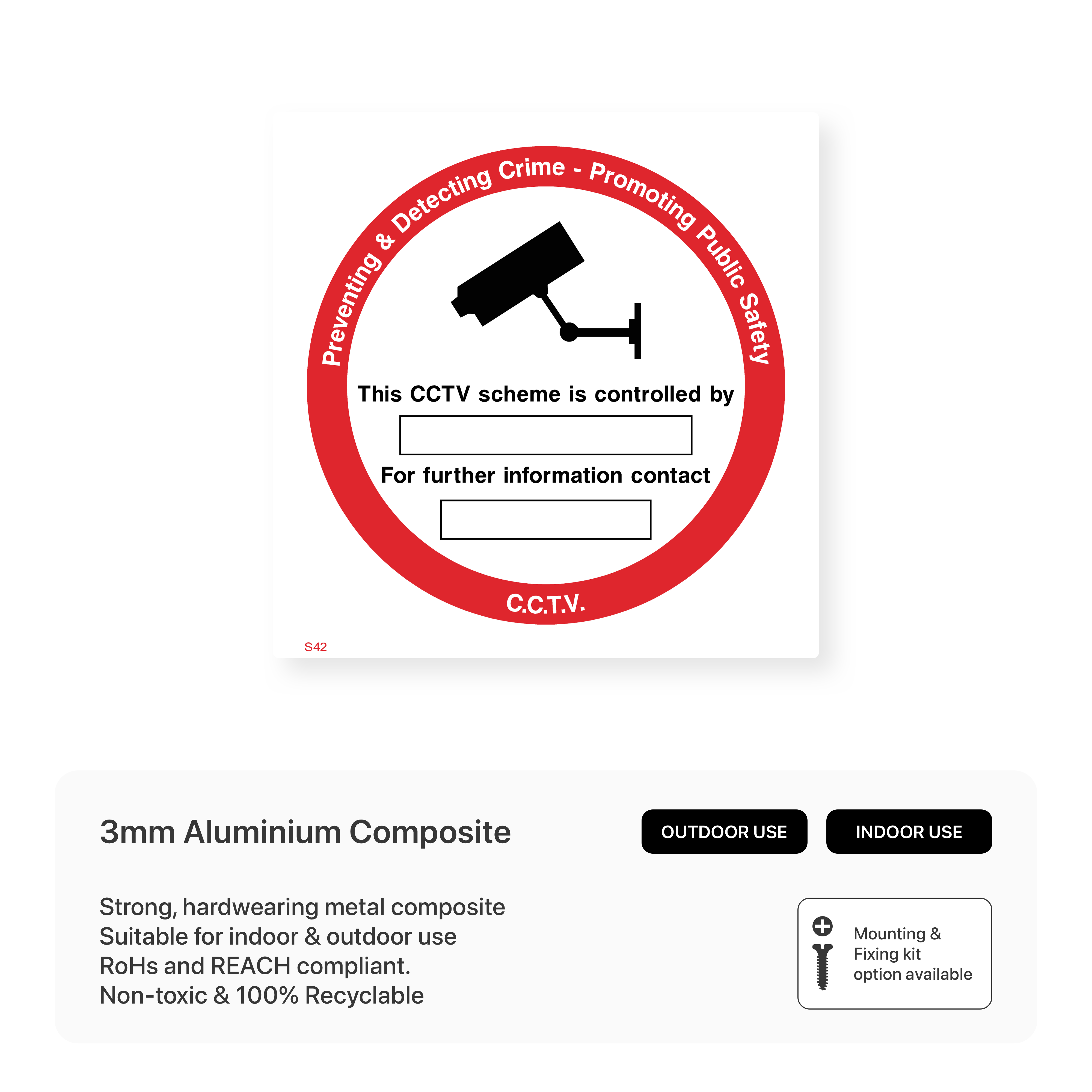 This sign informs the public that the CCTV scheme is controlled by a specific entity and provides contact information for further inquiries. It promotes transparency and accountability in surveillance practices.