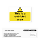 Clearly mark restricted areas and prevent unauthorised access with this sign. Ensure the safety and security of your premises with this simple yet effective message. Choose from a variety of sizes and materials.