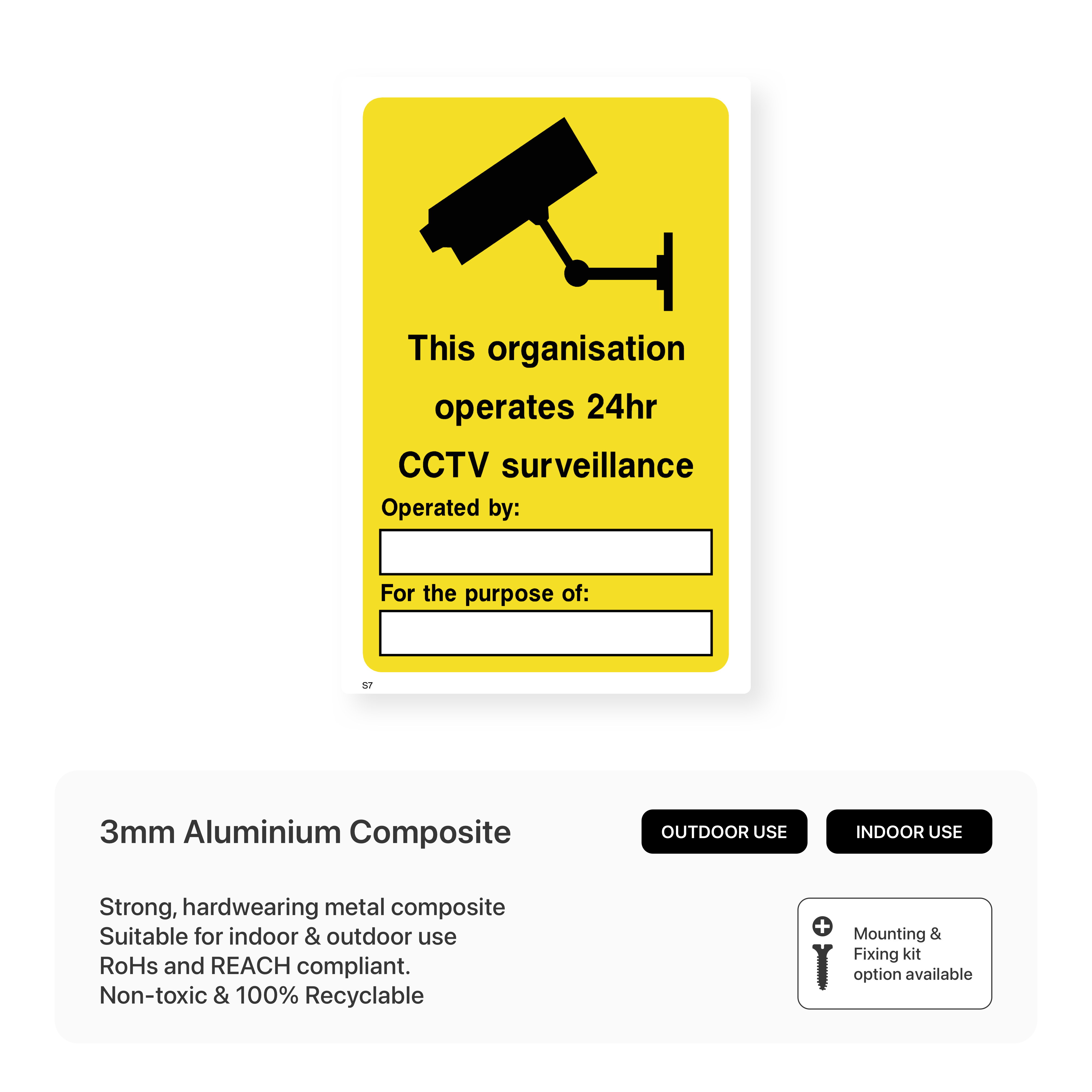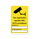 This organisation operates 24hr CCTV surveillance: Inform about continuous CCTV monitoring. Operated by: State the operating entity. For the purpose of: Specify the purpose (e.g., security, safety).
