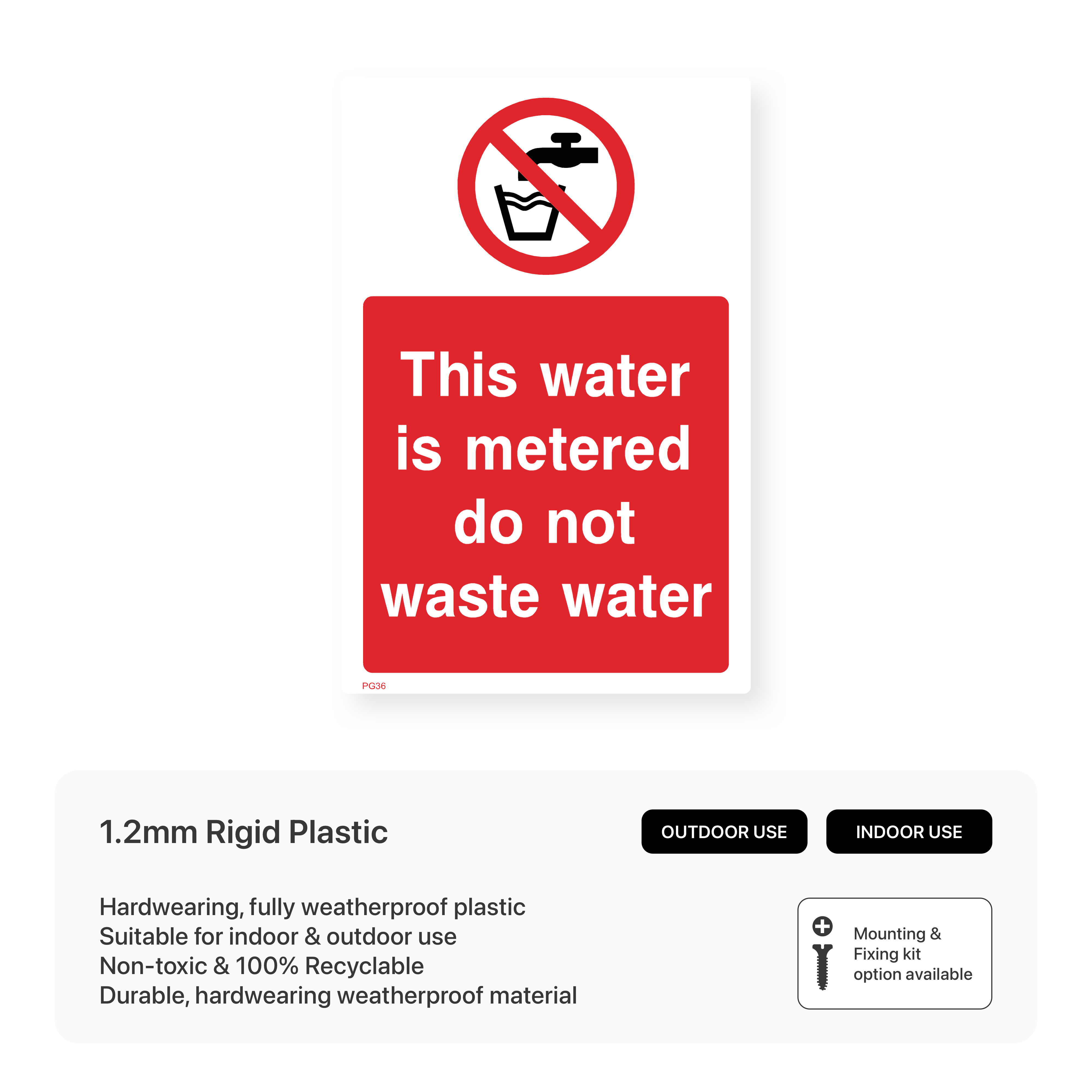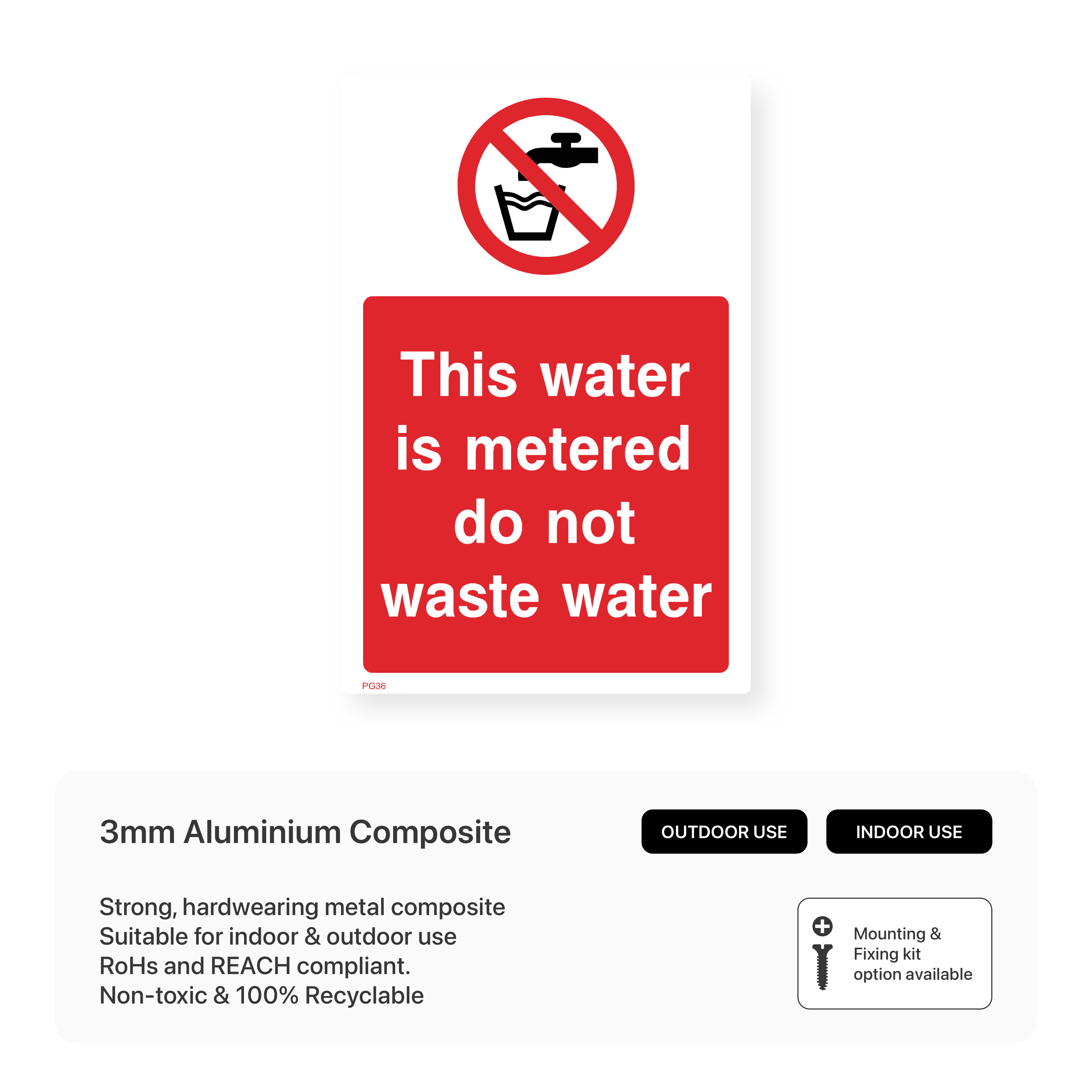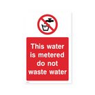 Promote responsible water usage in your workplace with our "This Water is Metered - Do Not Waste Water" portrait sign. This sign raises awareness of water conservation and encourages employees to use water wisely. Made from durable materials, it is suitable for various environments.
