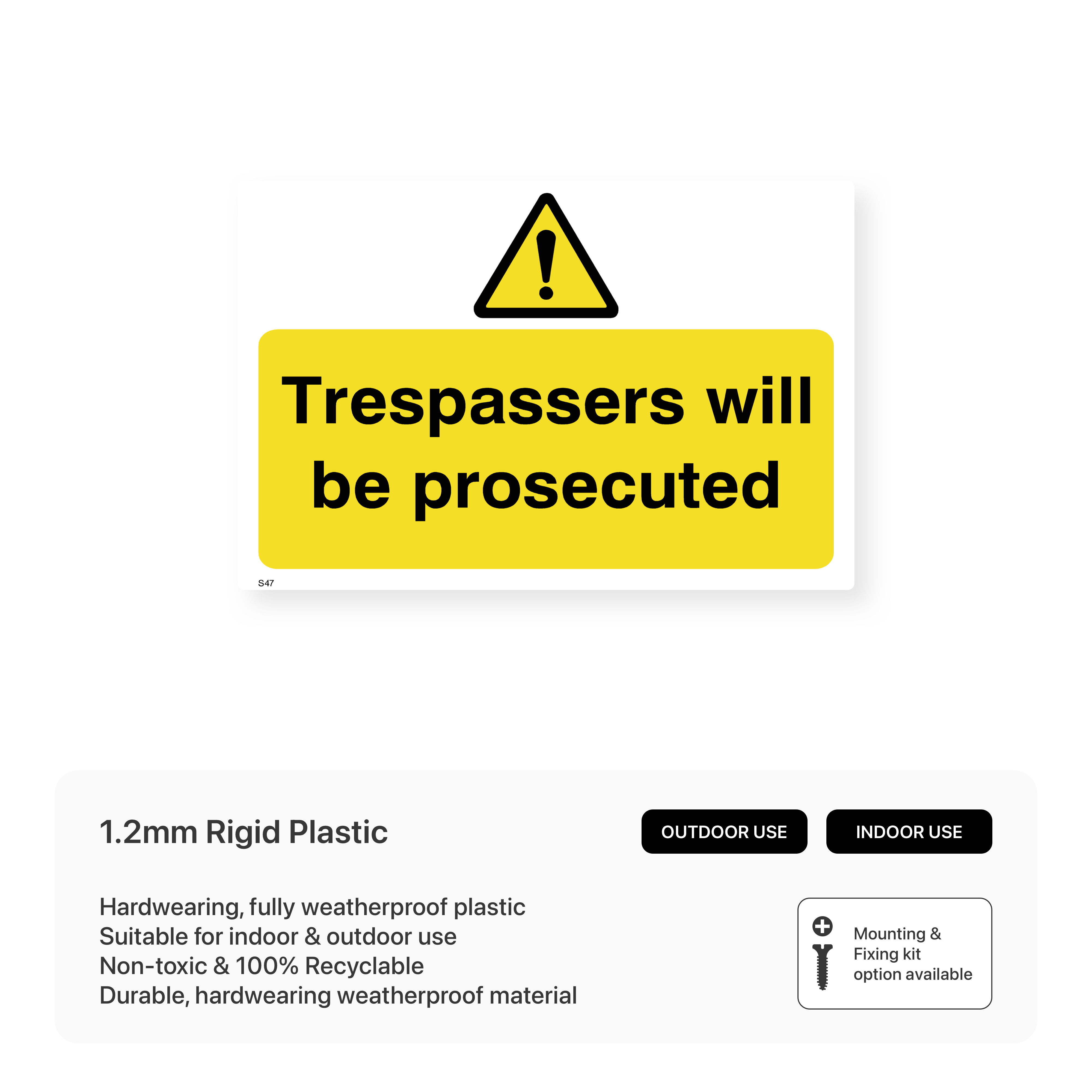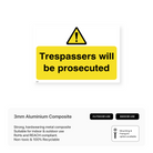 Deter unauthorised access to your property with this sign, clearly stating that trespassers will face legal consequences.