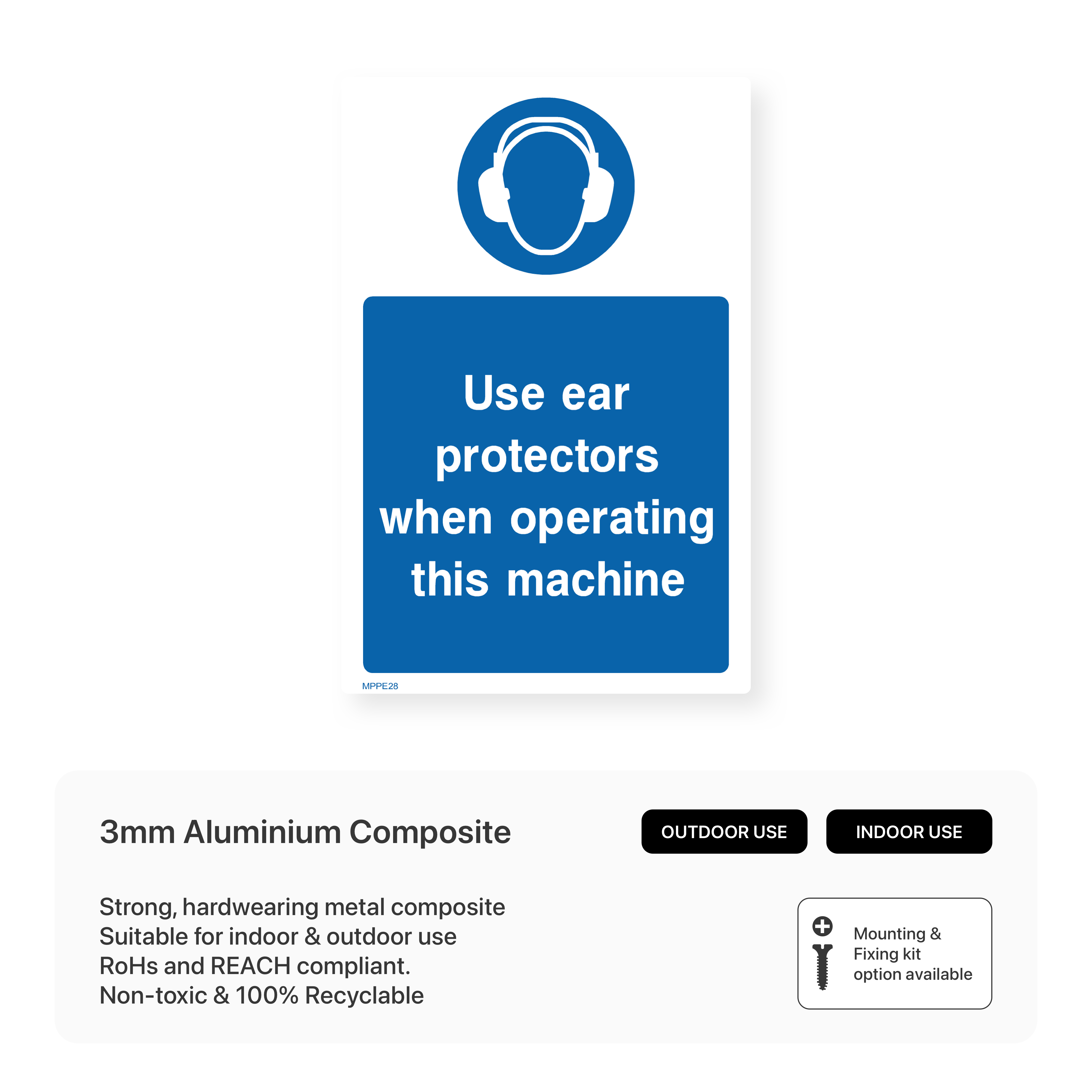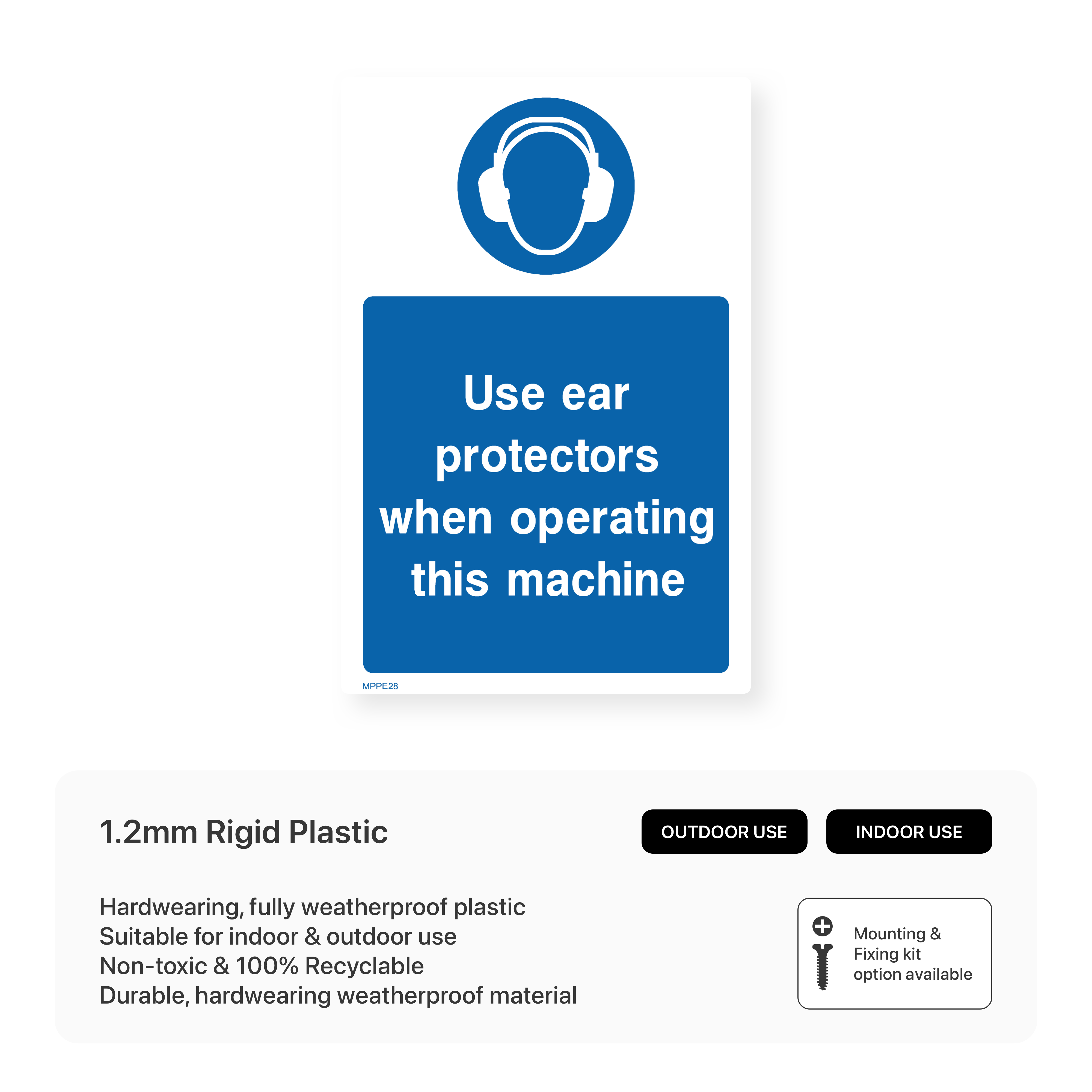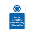 Prioritise hearing safety when operating machinery with our "Use Ear Protectors When Operating This Machine" portrait sign. This sign clearly communicates the mandatory use of ear protection to prevent hearing loss caused by loud equipment. Ensure a safe working environment and protect your employees' hearing with our durable and compliant safety signage.