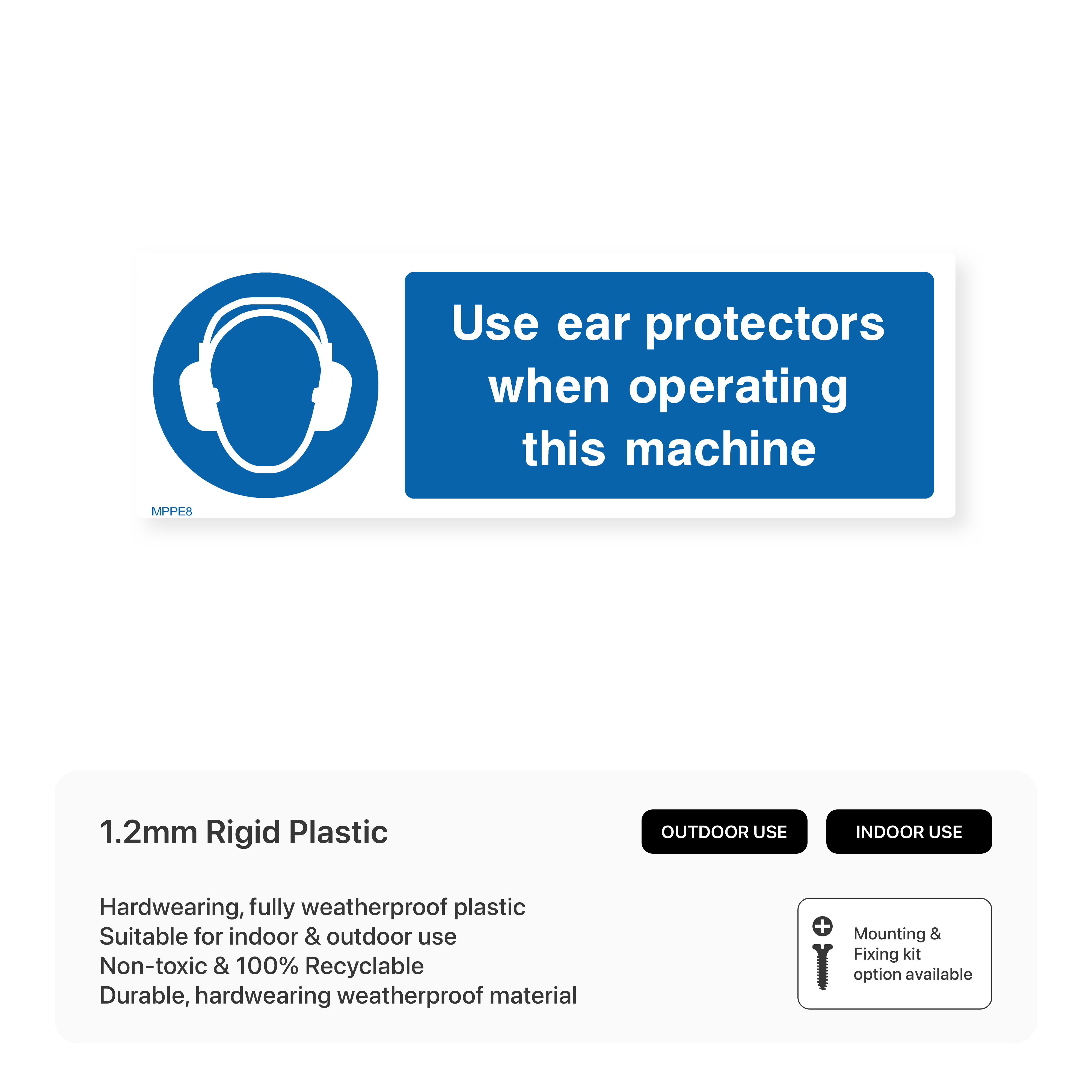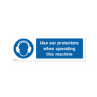 Prioritize hearing safety when operating machinery with our "Use Ear Protectors When Operating This Machine" sign. This sign clearly communicates the mandatory use of ear protection to prevent hearing loss caused by loud equipment. Ensure a safe working environment and protect your employees' hearing with our durable and compliant safety signage.