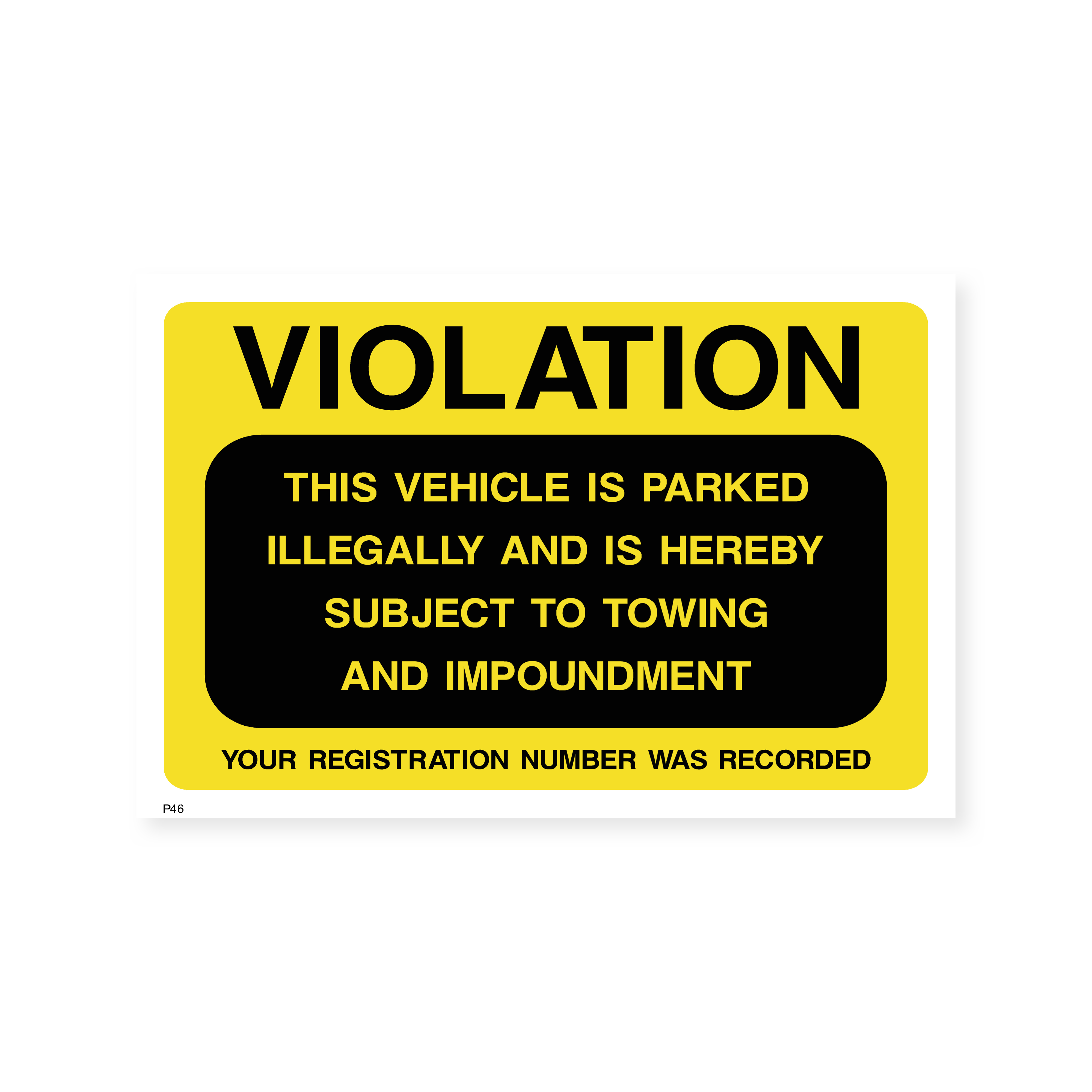 VIOLATION - THIS VEHICLE IS PARKED ILLEGALLY AND S HEREBY SUBJECT TO TOWING AND IMPOUNDMENT -- Your Registration number Was Recorded