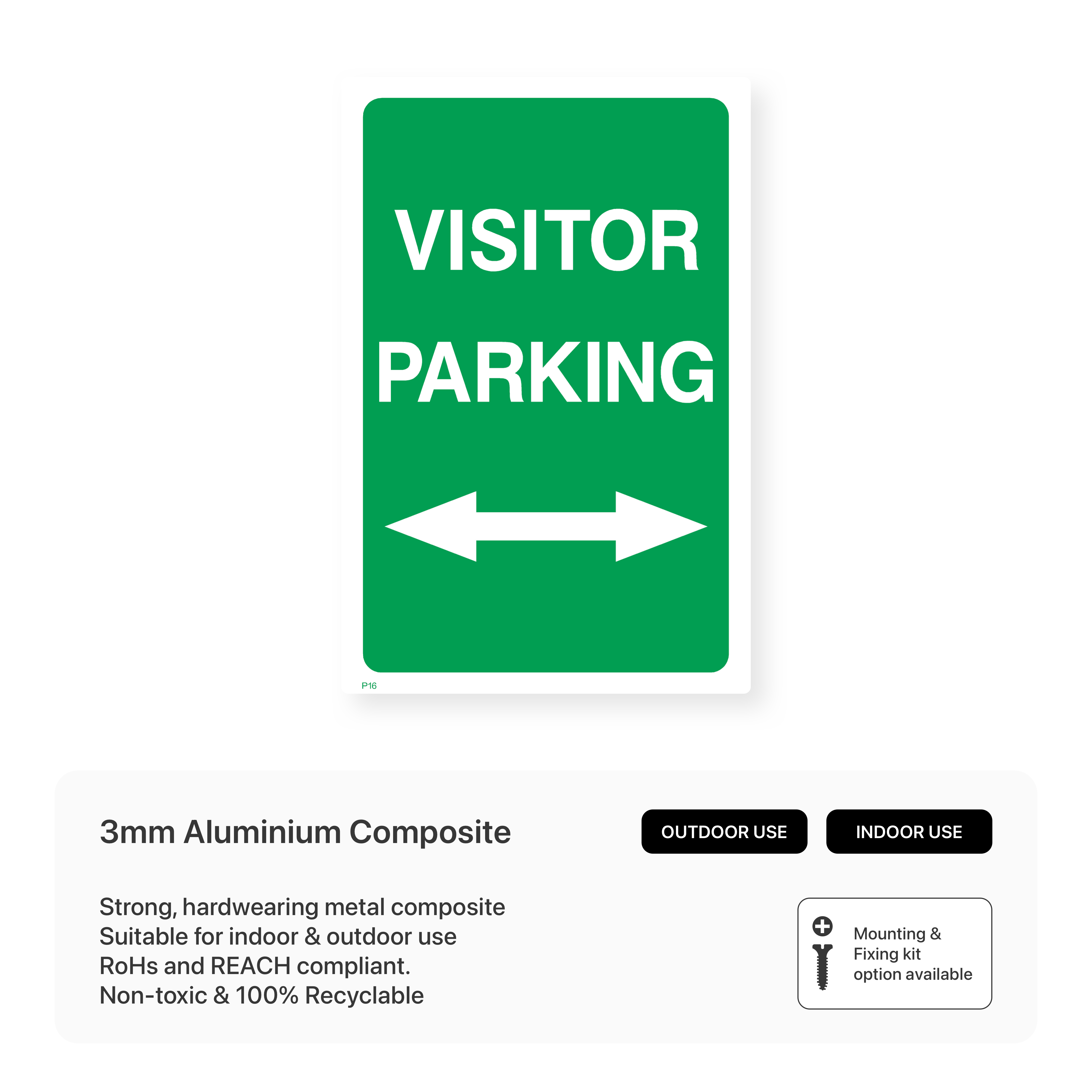 Guide visitors to the correct parking area with our "Visitor Parking (Arrow Both Ways)" sign. This sign clearly indicates that visitor parking is available in both directions, ensuring easy navigation and a smooth parking experience. Choose from various sizes and materials to suit your specific needs and create a user-friendly parking environment.
