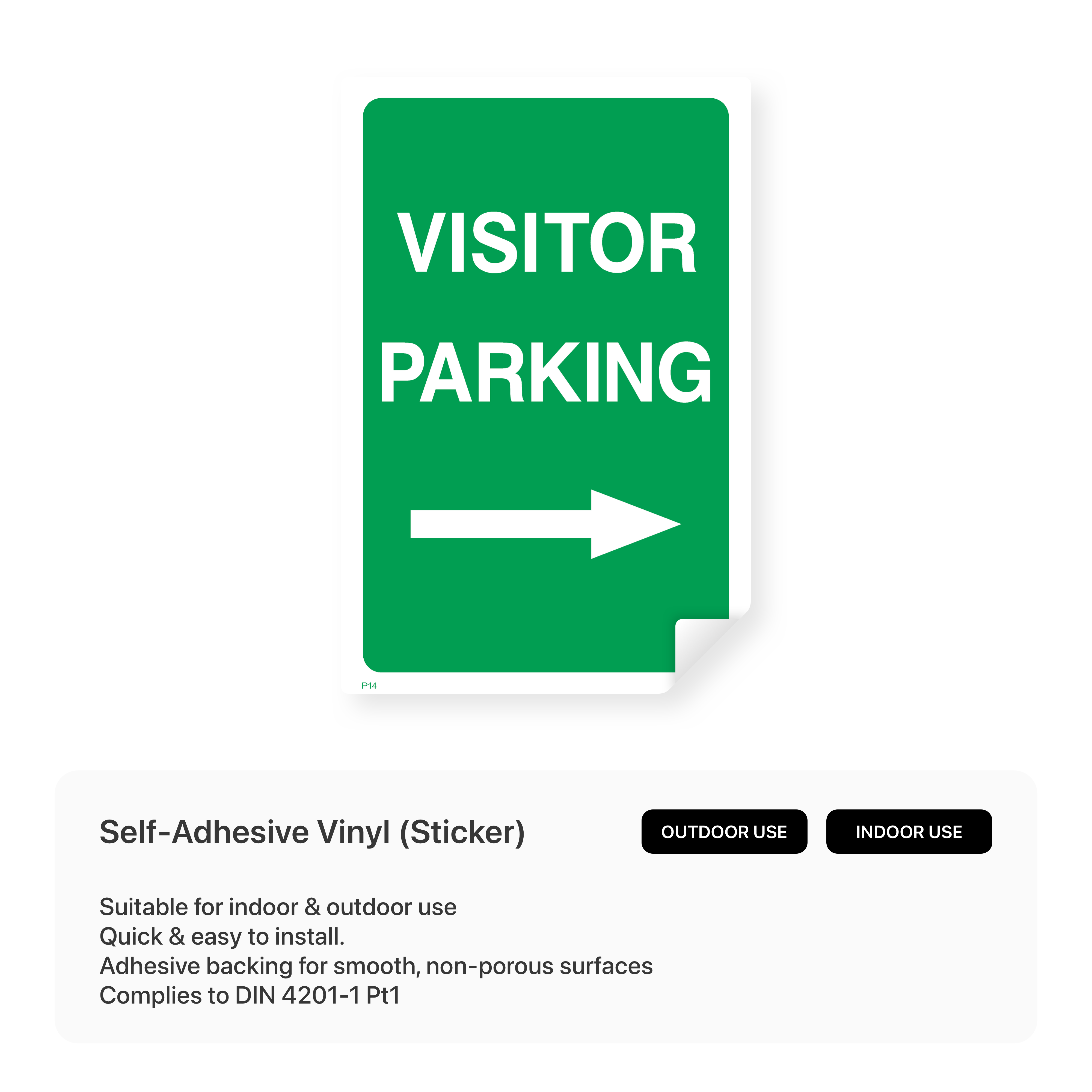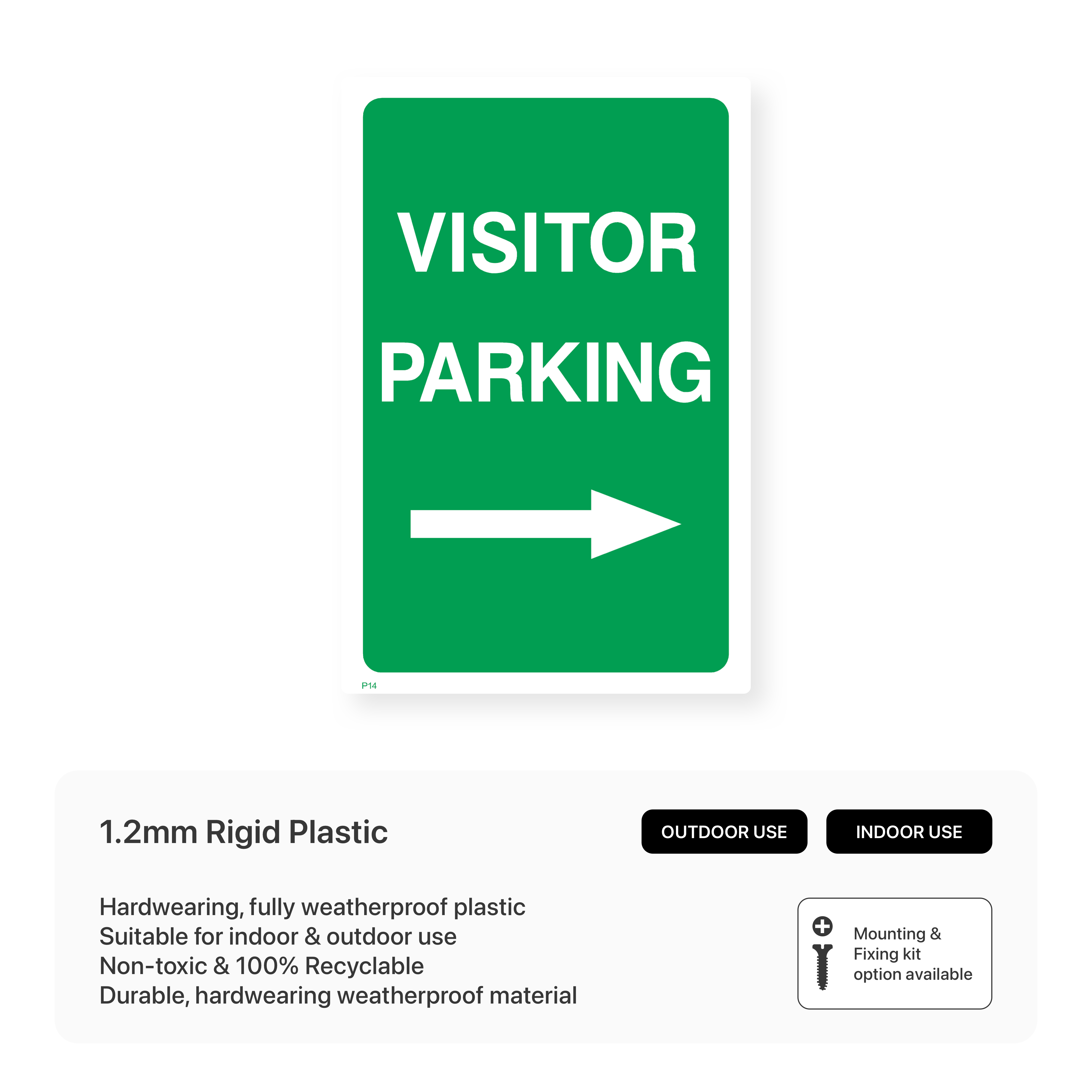Guide visitors to the correct parking area with our "Visitor Parking (Arrow Right)" sign. This sign clearly indicates the direction of the visitor parking area, ensuring easy navigation and a smooth parking experience. Choose from various sizes and materials to suit your specific needs and create a user-friendly parking environment.