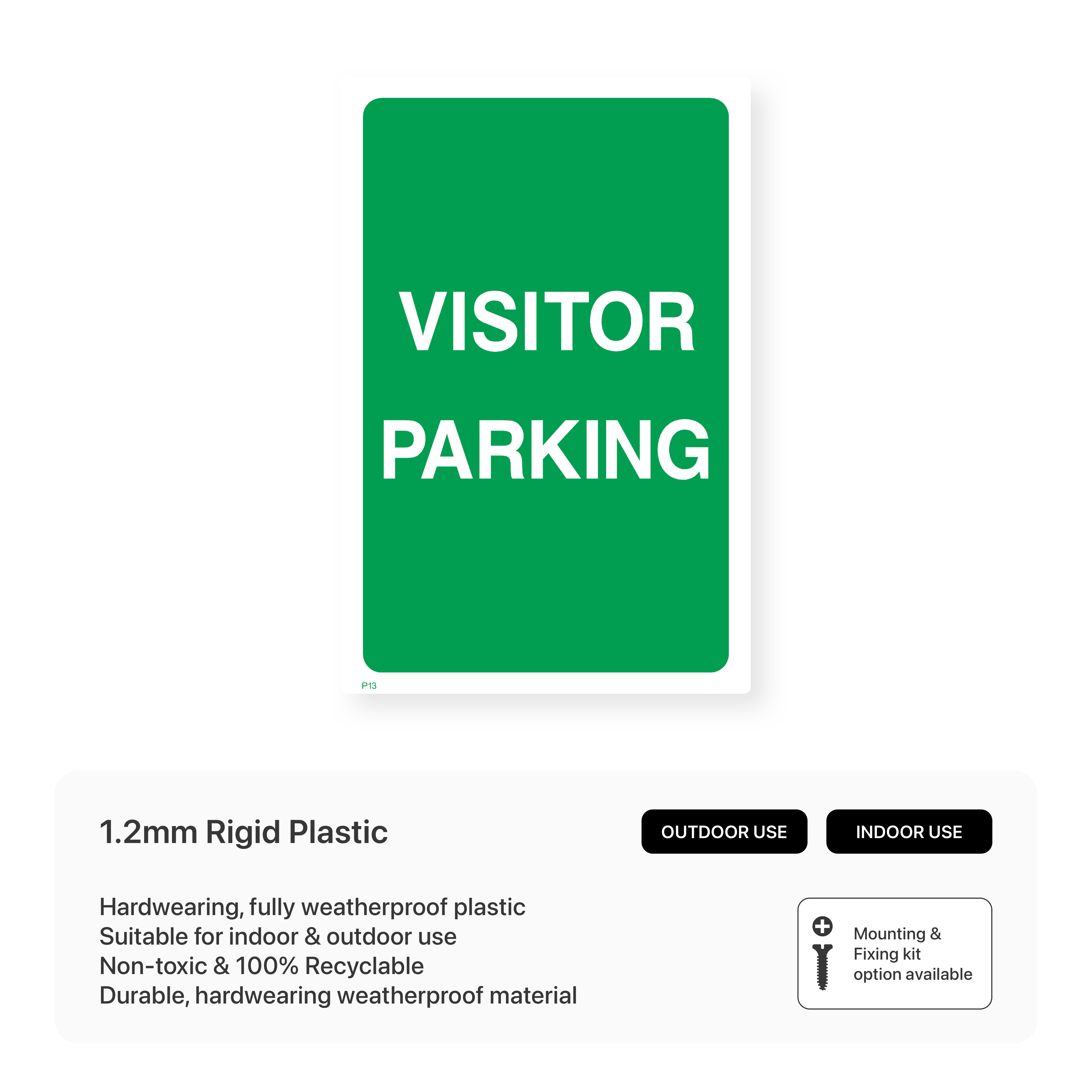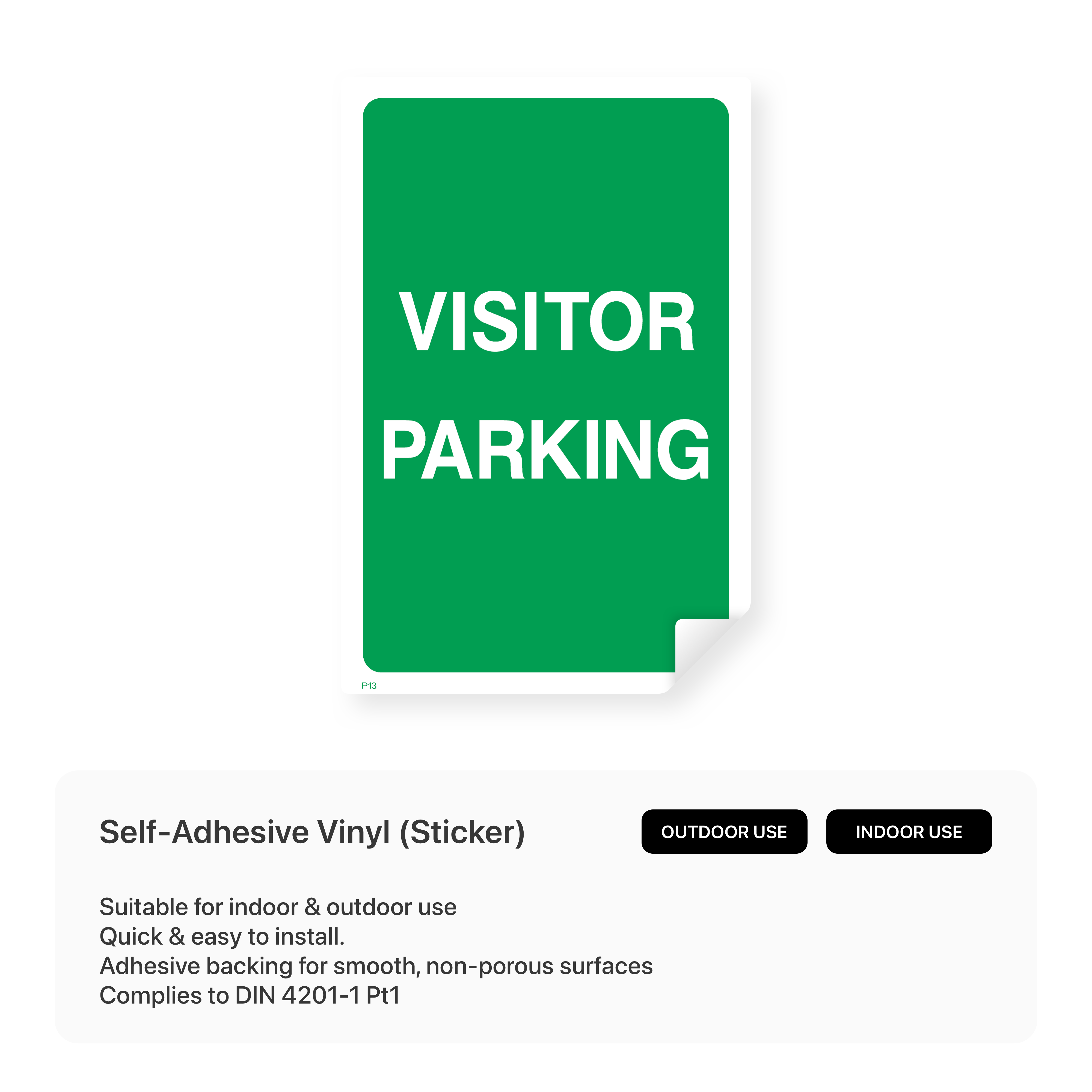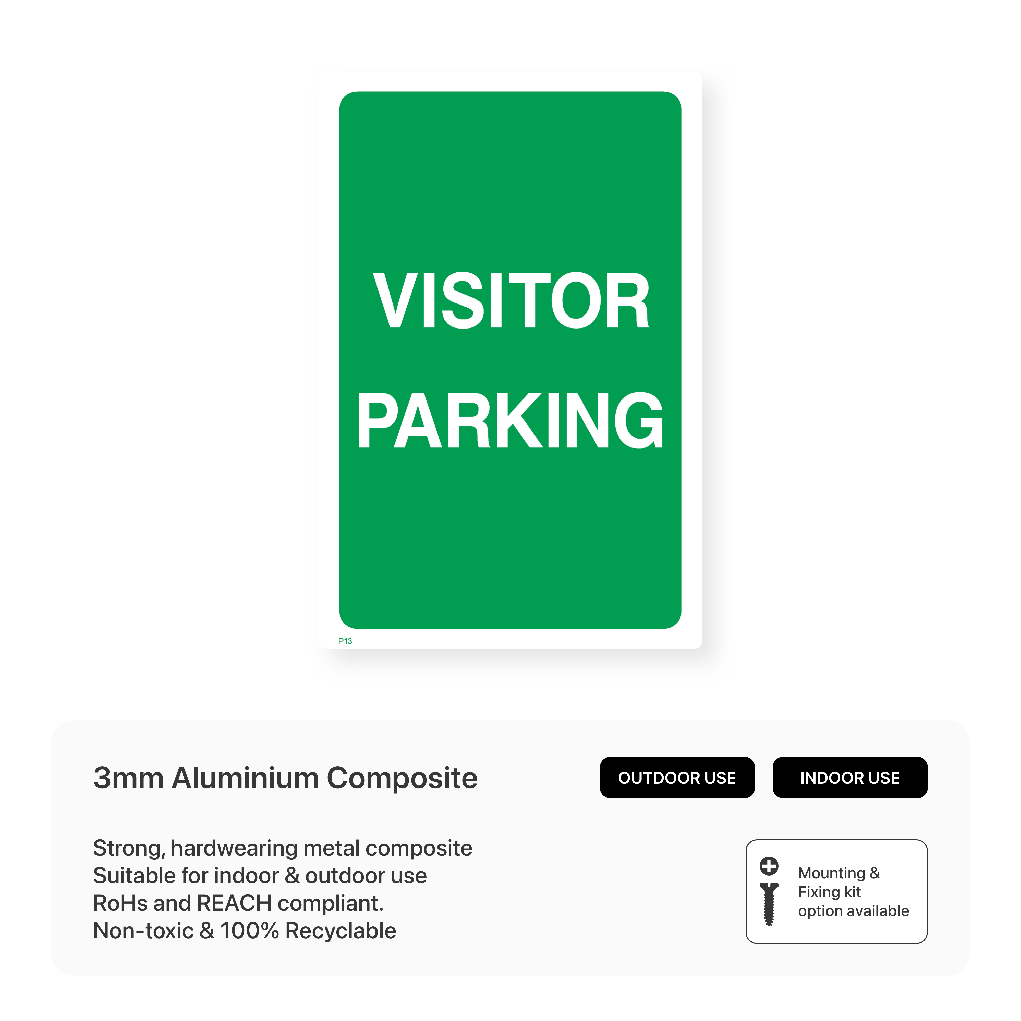 Welcome visitors with our clear and welcoming "Visitor Parking" sign. This sign clearly indicates designated parking areas for visitors, ensuring a positive first impression and convenient parking experience. Choose from various sizes and materials to suit your specific needs and create a welcoming environment for your guests.
