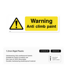 Deter climbers and intruders with this sign, warning of the presence of anti-climb paint. This clear warning helps to protect your property and prevent unauthorised access. Available in various sizes and materials.