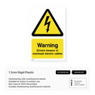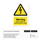 This portrait-oriented sign alerts drivers to the presence of overhead electric cables, helping to prevent accidents and ensure the safety of both drivers and electrical infrastructure. Suitable for use on roads, construction sites, and other areas with overhead power lines.