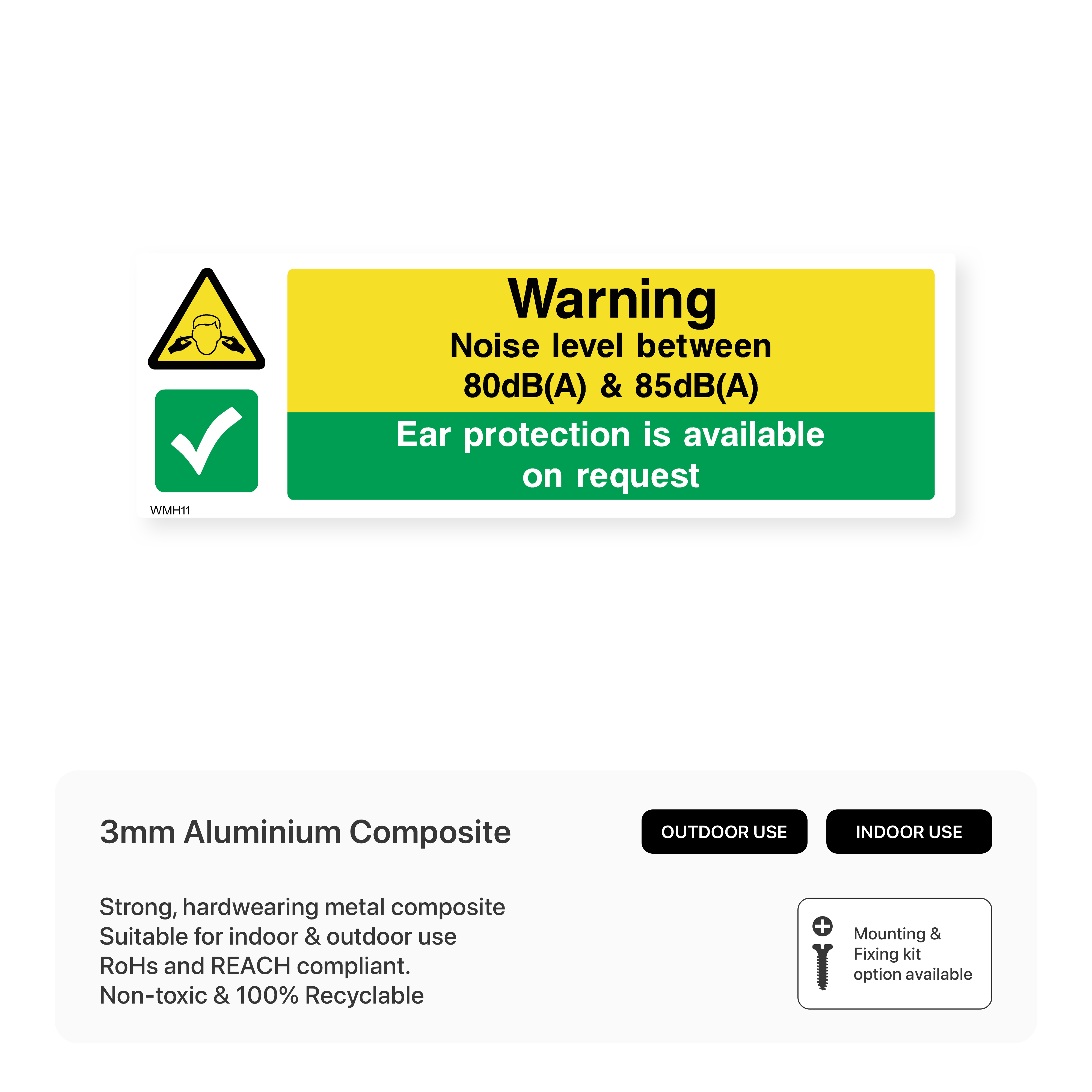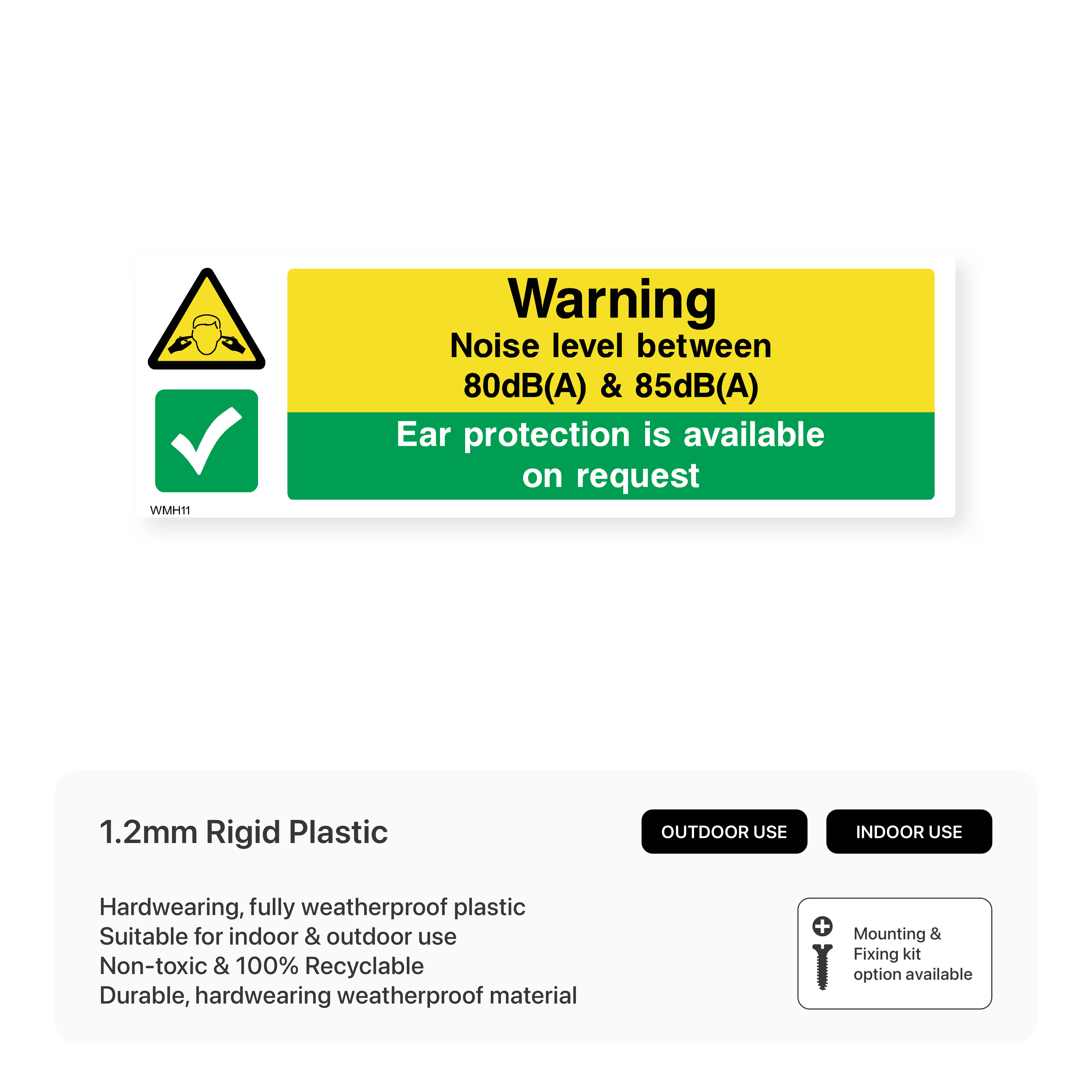 Protect hearing in noisy work environments with our "Warning - Noise Level Between 80dB(A) & 85dB (A) Ear Protection is Available on Request" sign. This sign clearly indicates high noise levels and encourages the use of ear protection to prevent hearing damage.