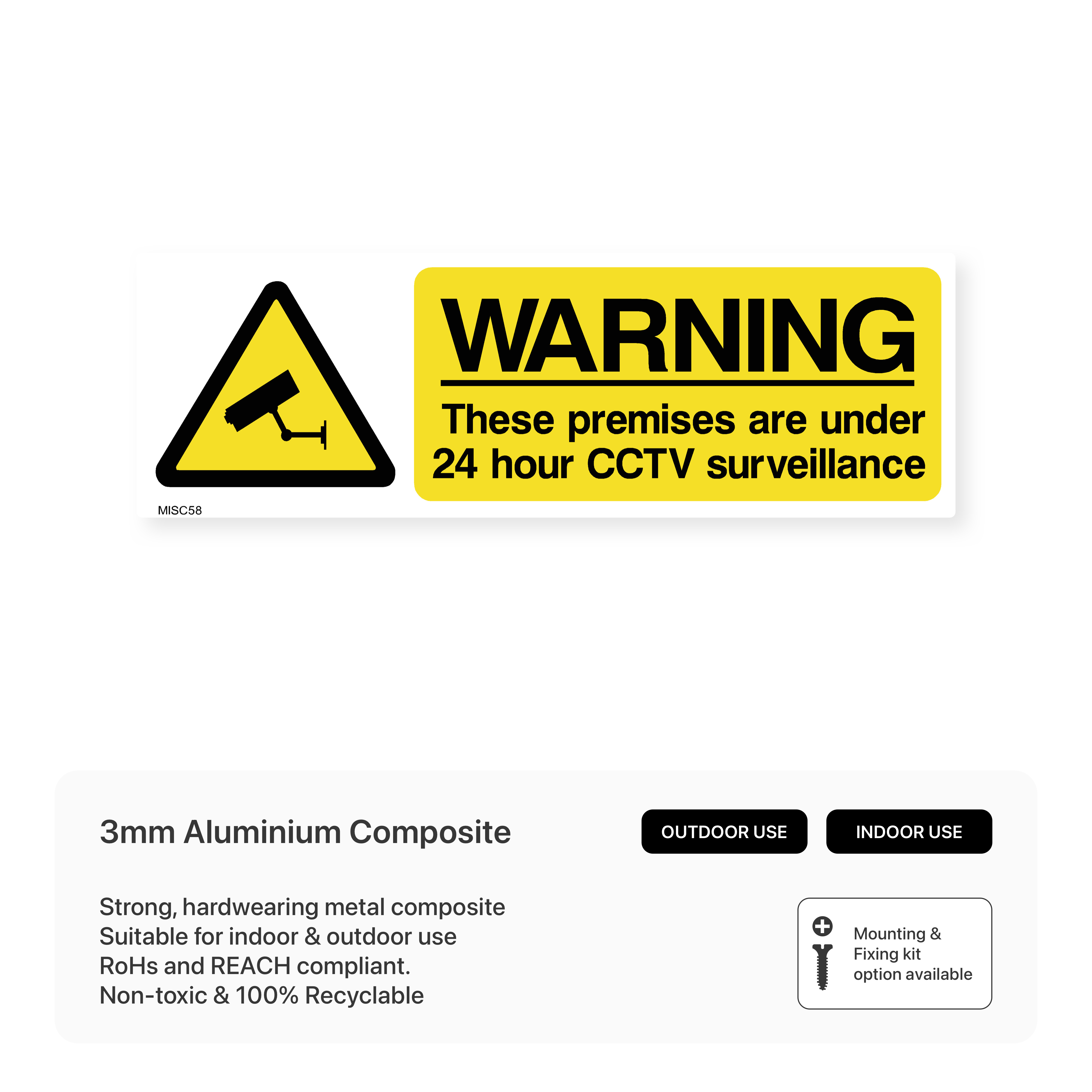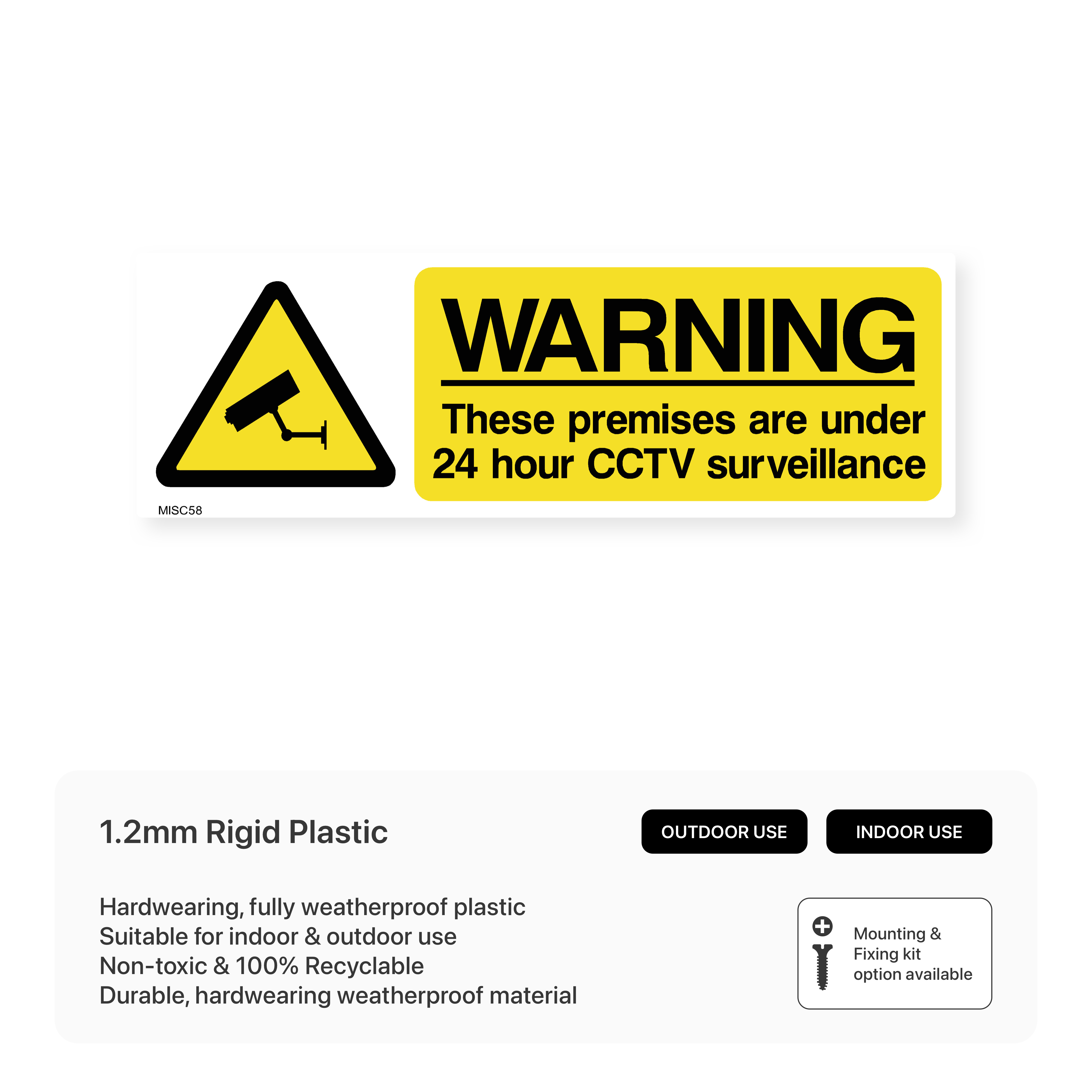 Deter crime and enhance security with our clear "24-Hour CCTV Surveillance" signs. Ensure your property is protected around the clock.