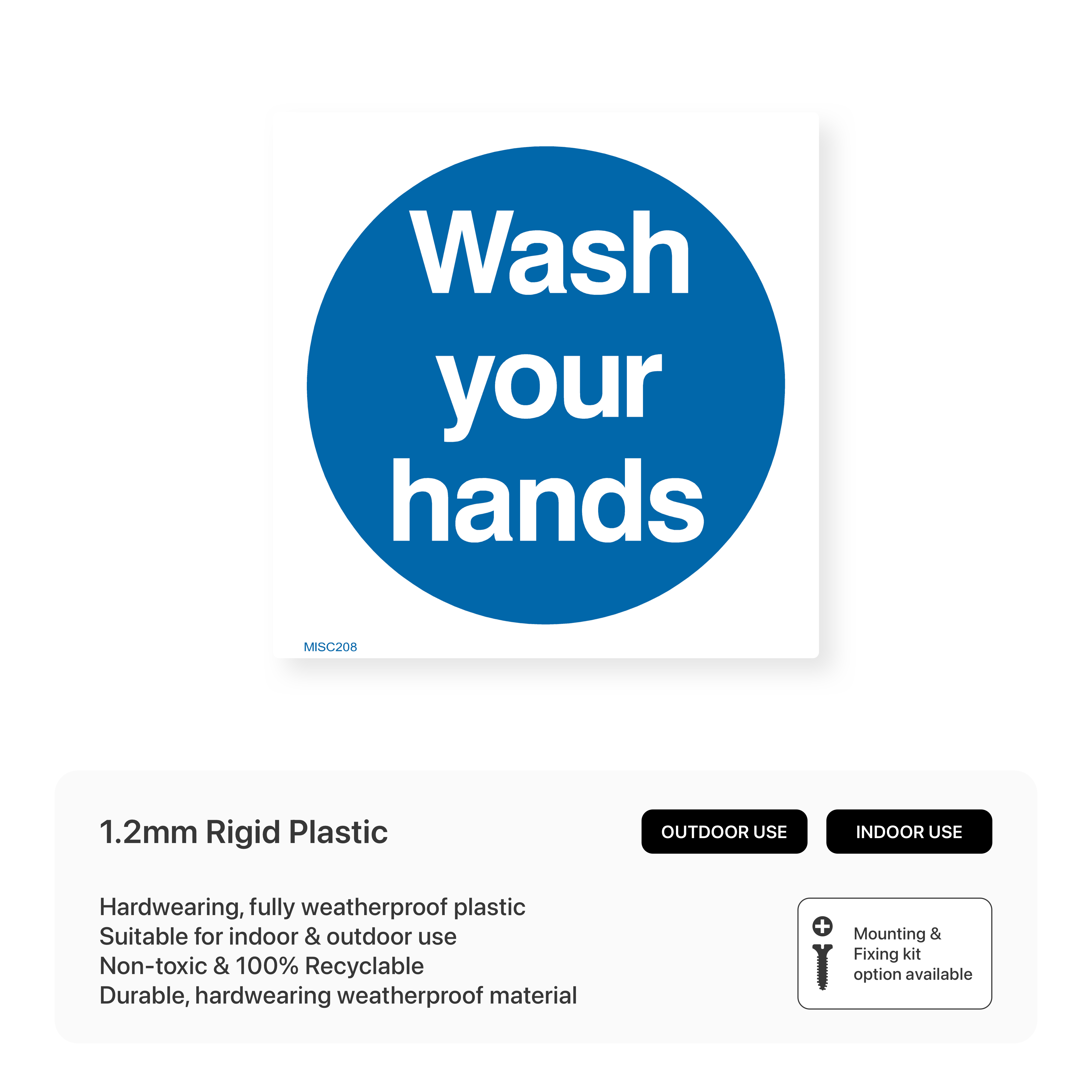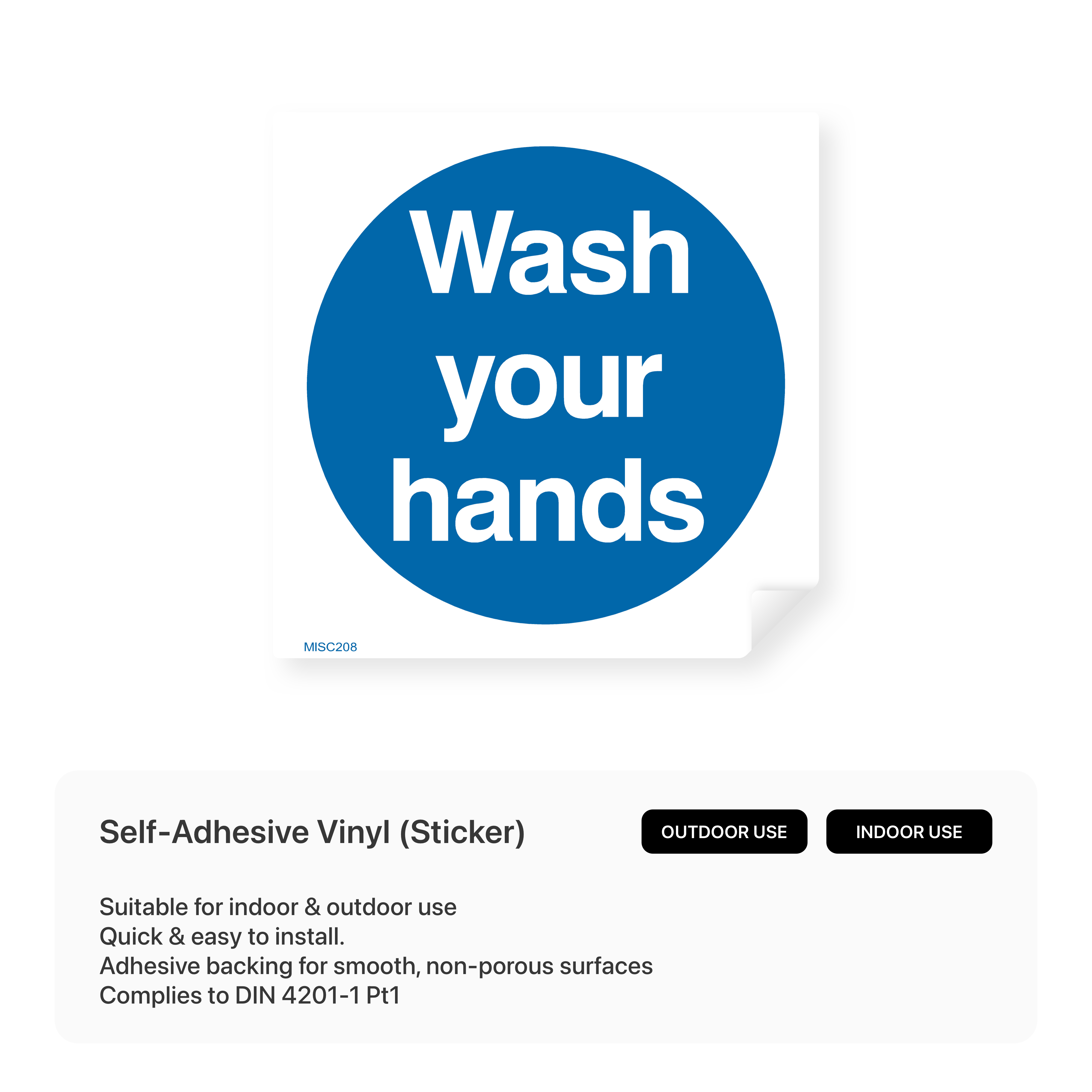 Encourage good hygiene practices with our "Wash Your Hands" signs. Perfect for restrooms, kitchens, and food preparation areas.
