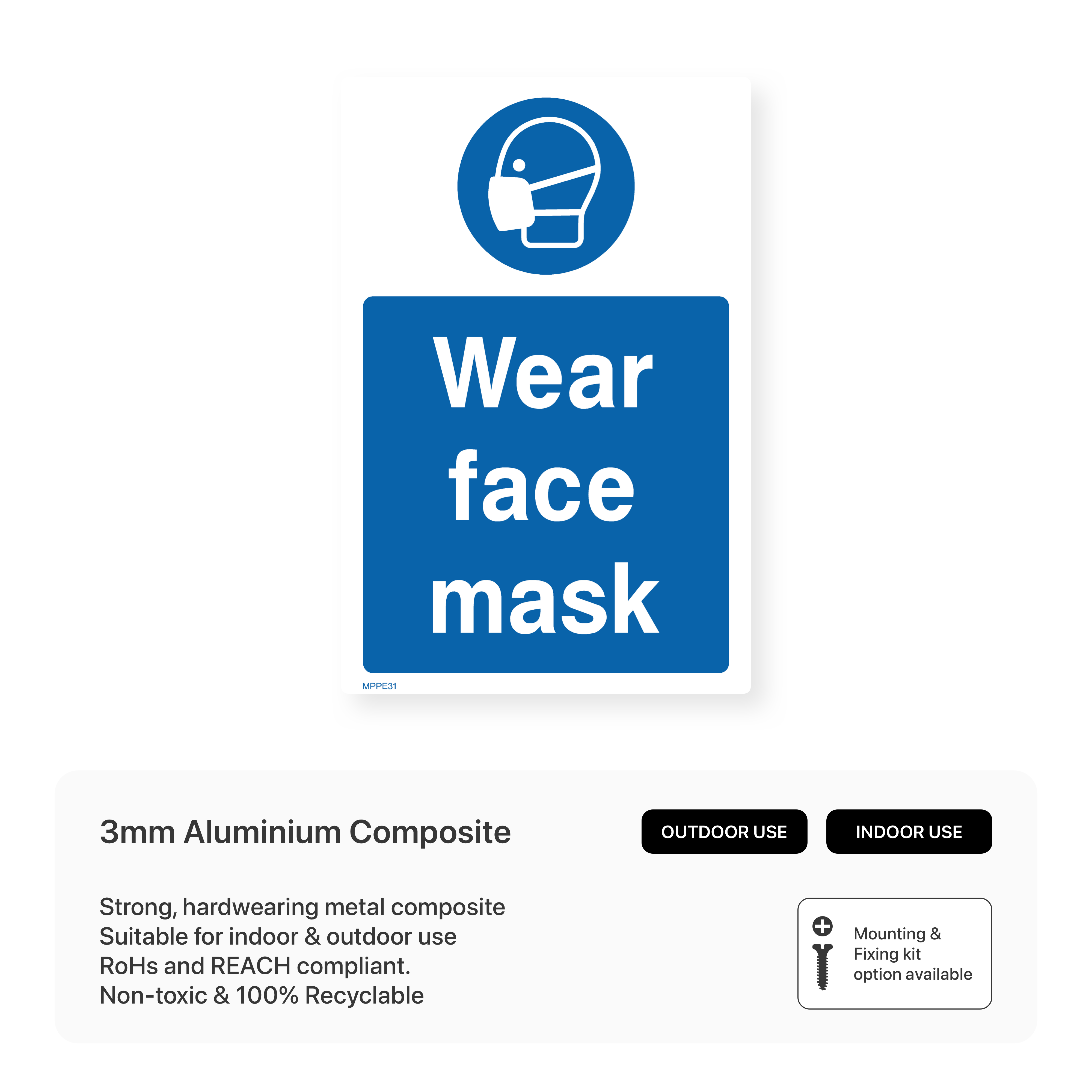 Prioritize respiratory health and hygiene with our "Wear Face Mask" portrait sign. This sign clearly communicates the mandatory use of face masks in designated areas to prevent the spread of airborne particles. Ensure a safe and healthy workplace with our durable and compliant safety signage.