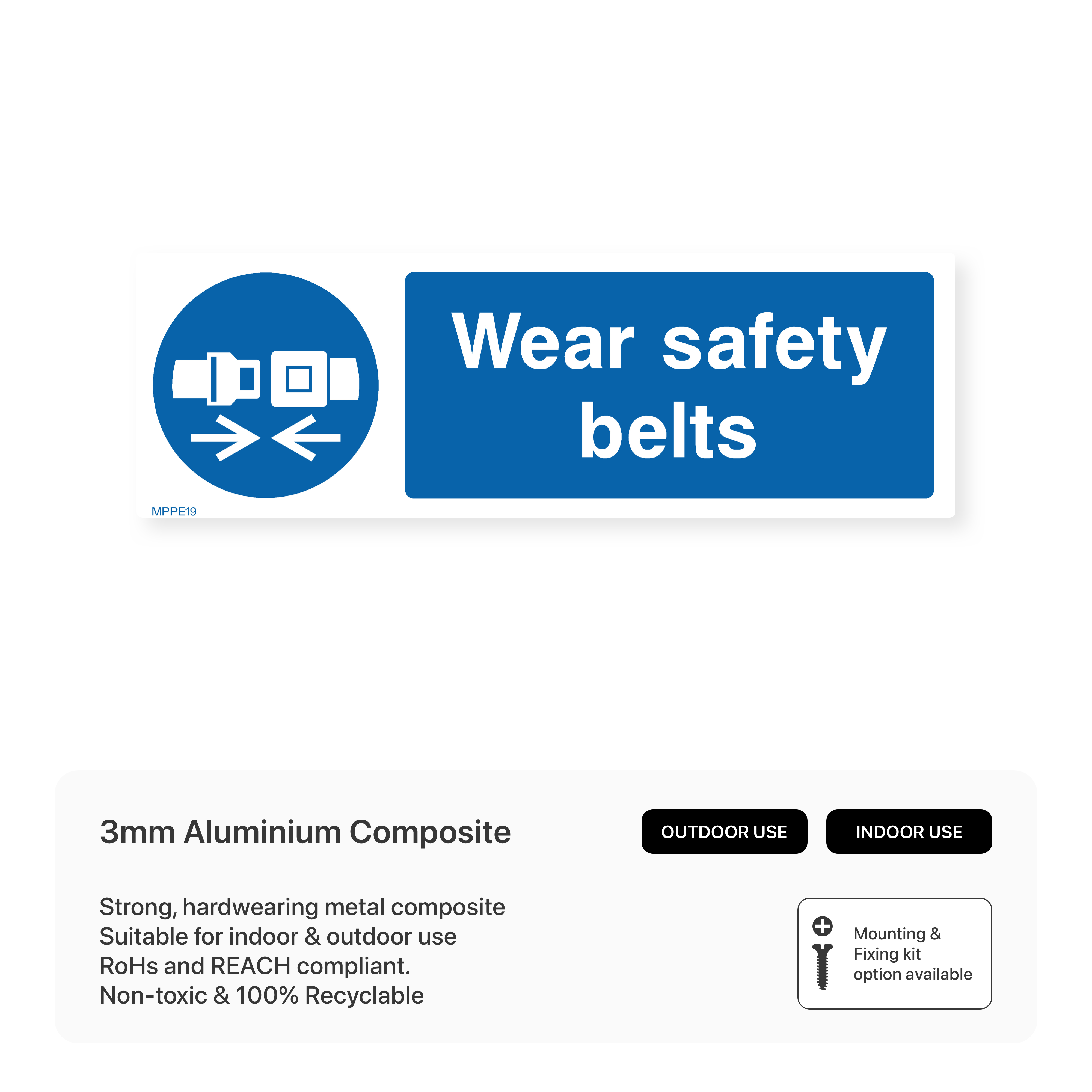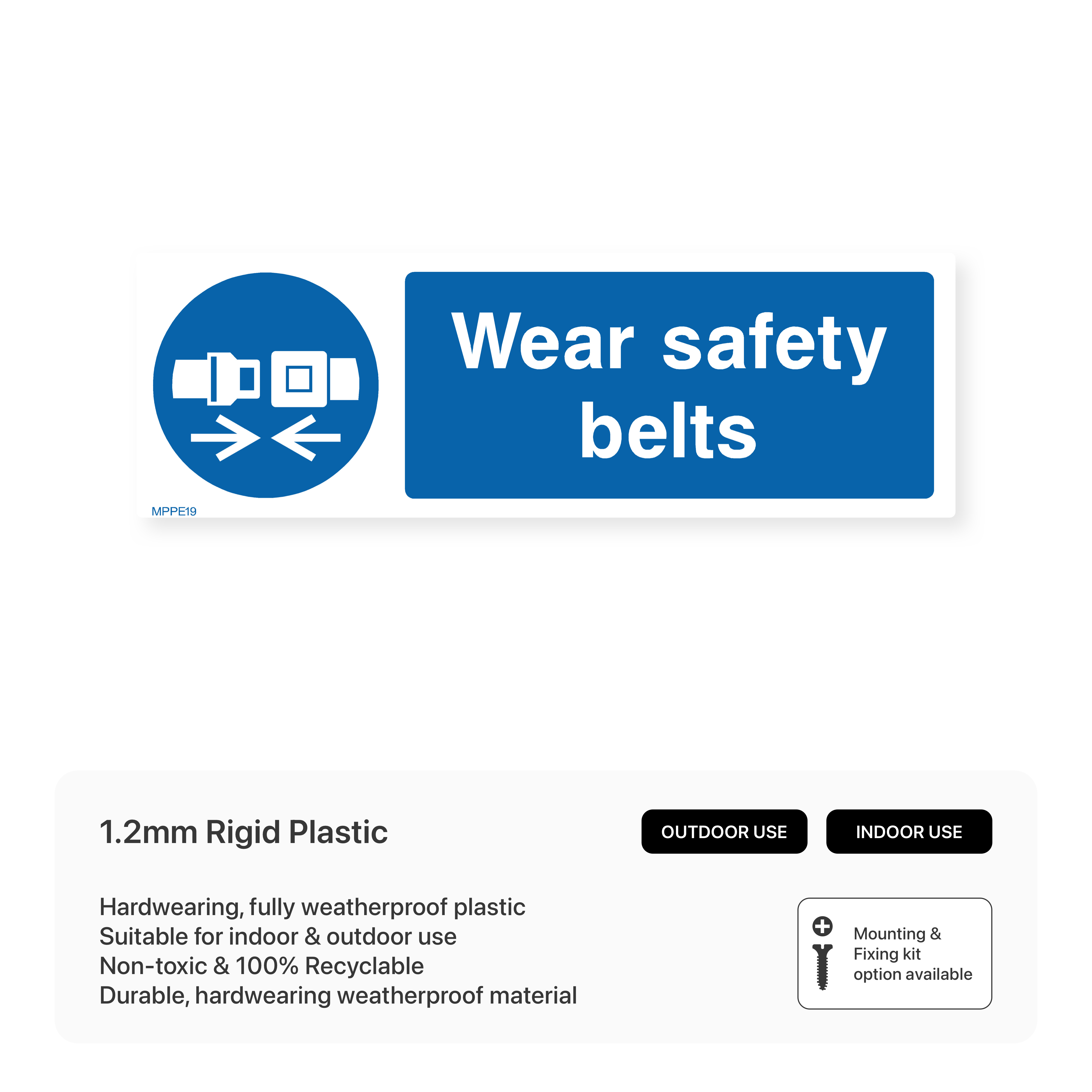 Ensure the safety of your workers at heights with our "Wear Safety Belts" sign. Clearly communicate the mandatory use of safety belts in designated areas to prevent falls and injuries. Choose from various sizes and materials to suit your specific needs and comply with safety regulations.