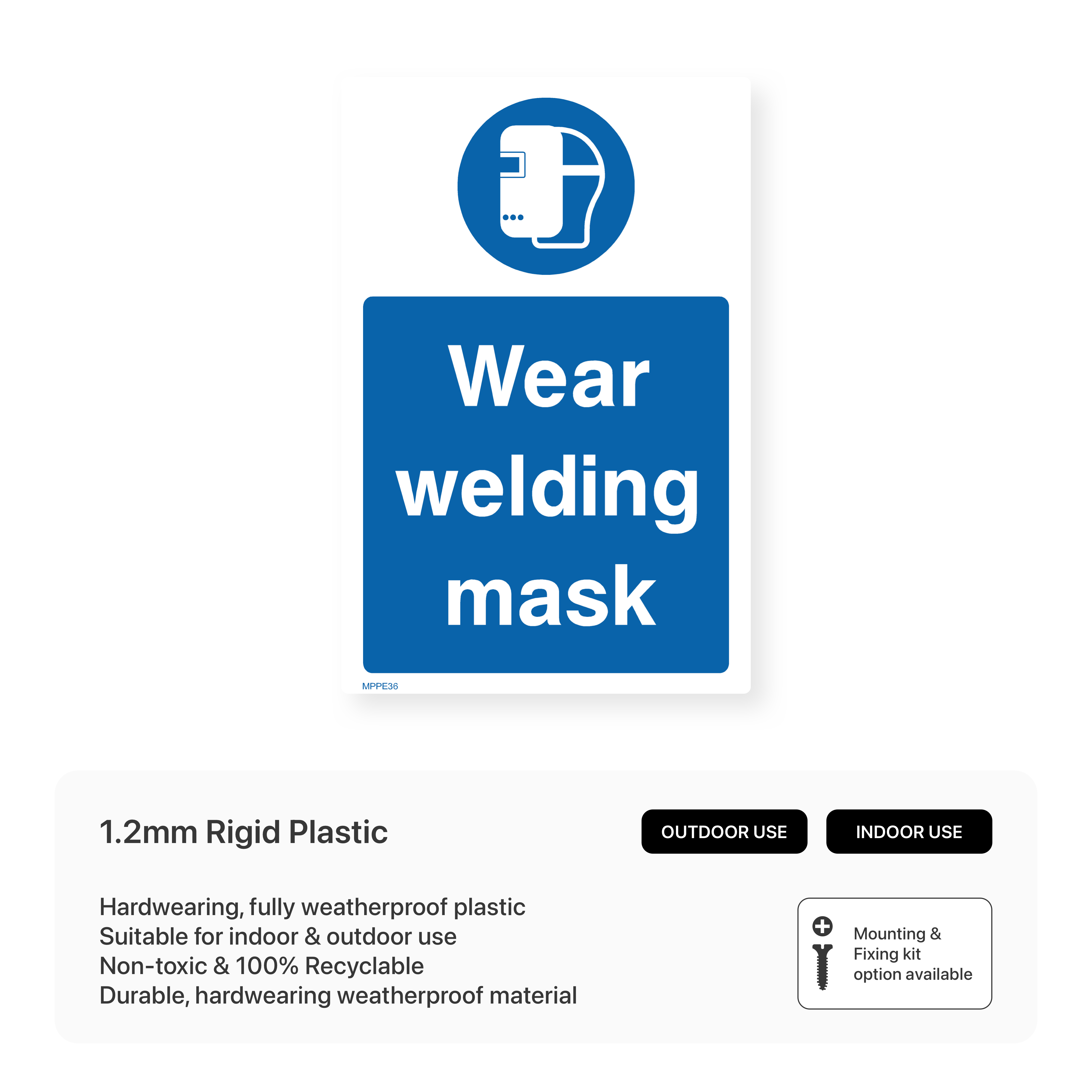 Protect your welders' eyes and faces from harmful radiation with our "Wear Welding Mask" portrait sign. Clearly communicate the mandatory use of welding masks in designated areas to prevent eye injuries and burns. Choose from various sizes and materials to suit your specific needs and ensure compliance with safety regulations.