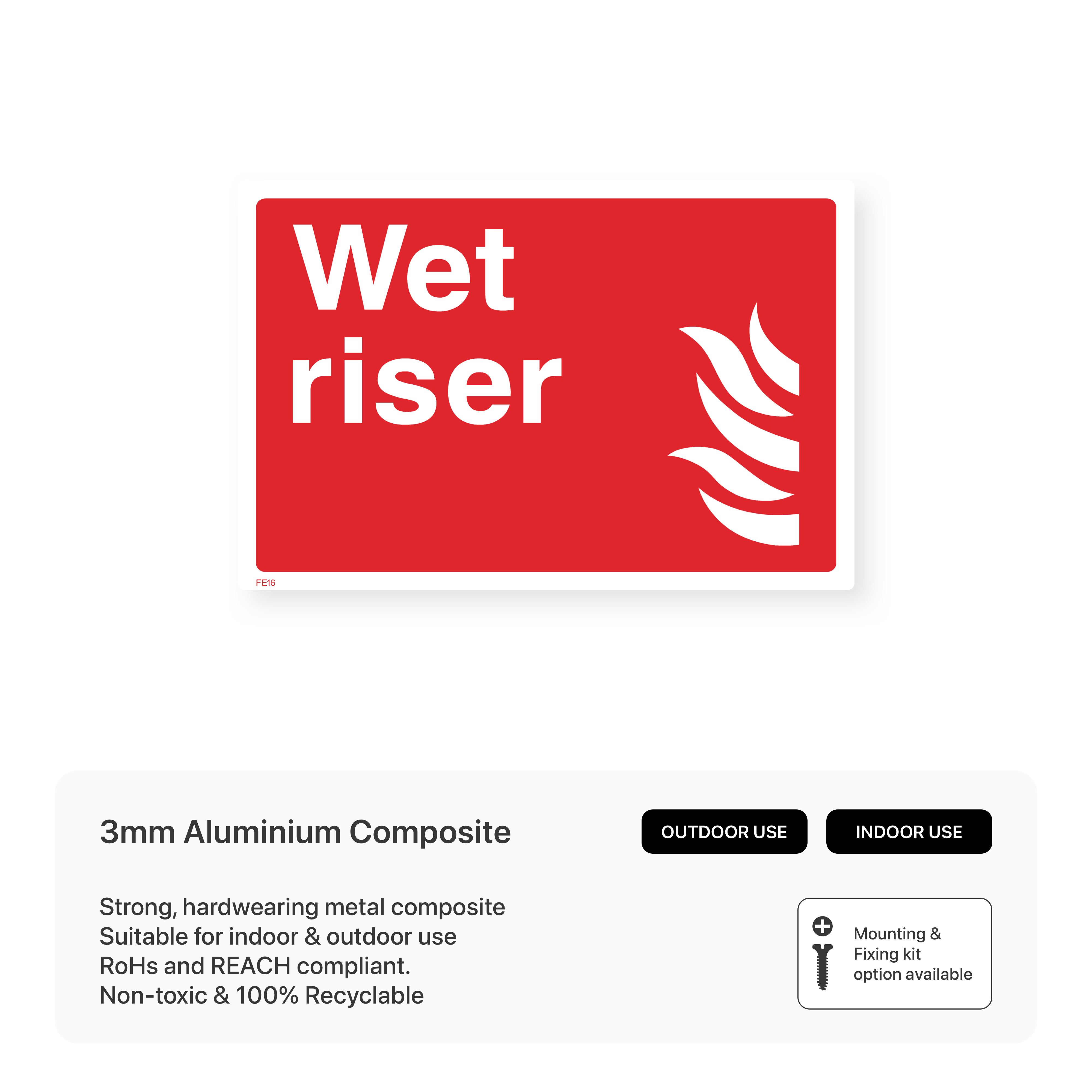 Clearly mark the location of wet risers with our "Wet riser" sign. This sign helps firefighters quickly locate and access the water supply for firefighting, enabling them to effectively combat fires.
