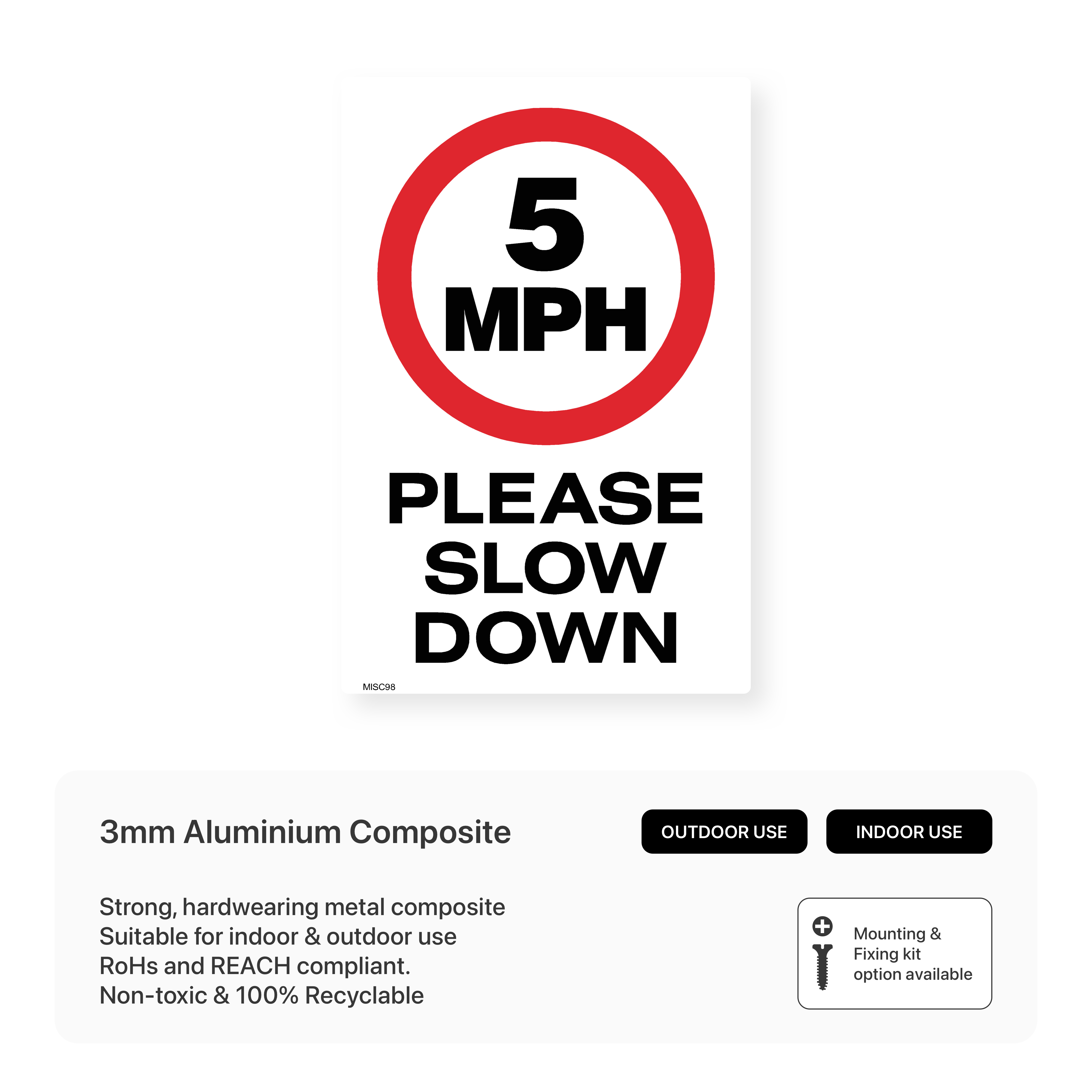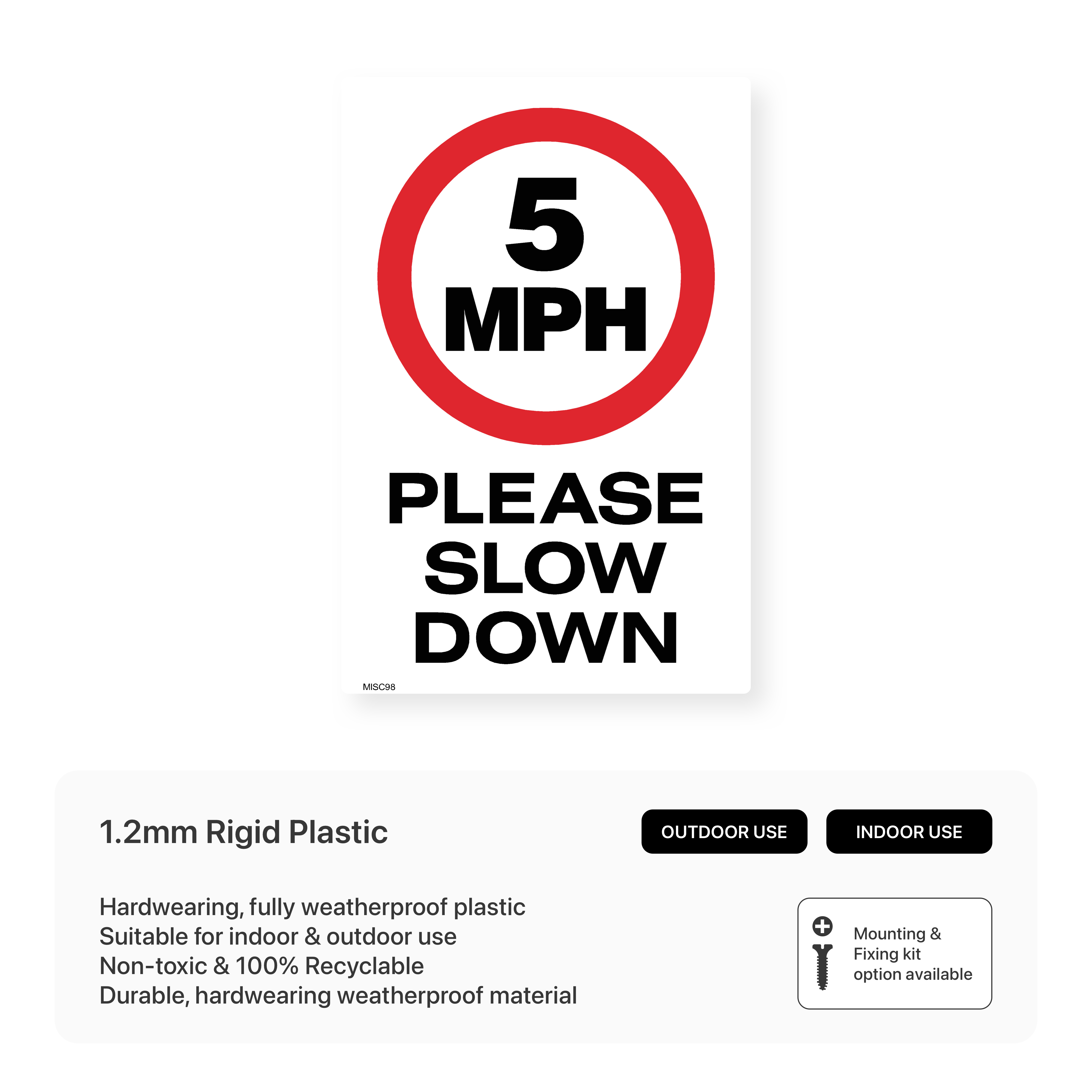 Enforce a 5 MPH speed limit in restricted areas with our clear and visible signs. Promote safety and prevent accidents.