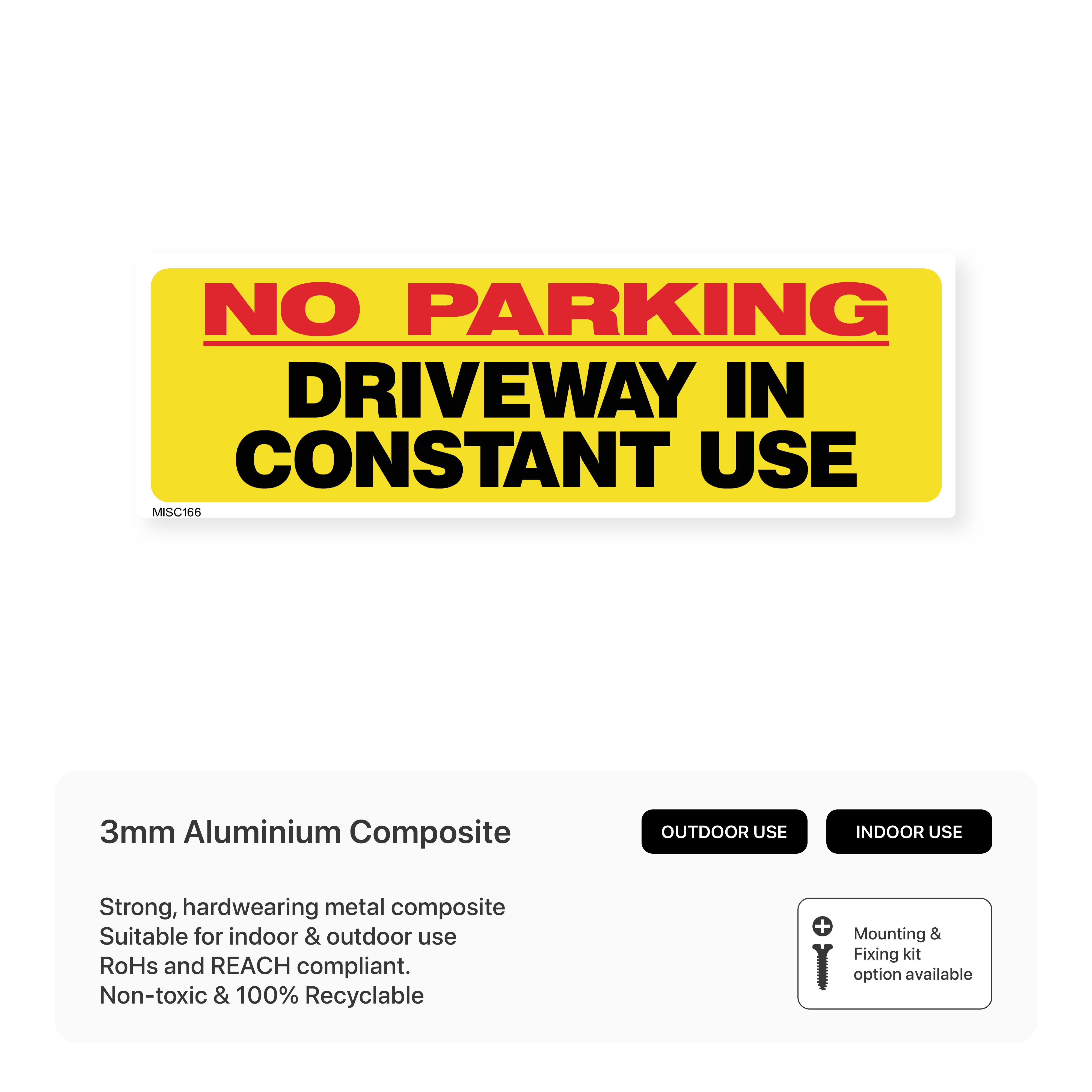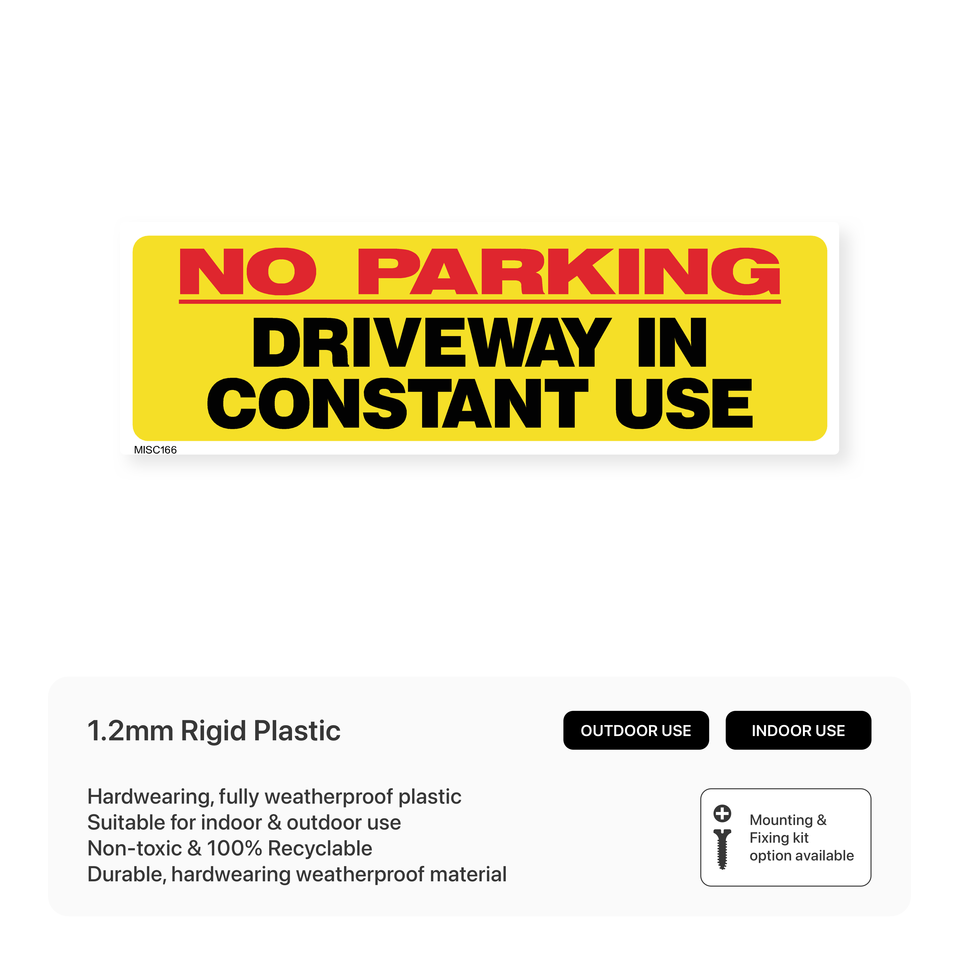 Prevent unauthorized parking in driveways with our "No Parking - Driveway in Constant Use" signs.