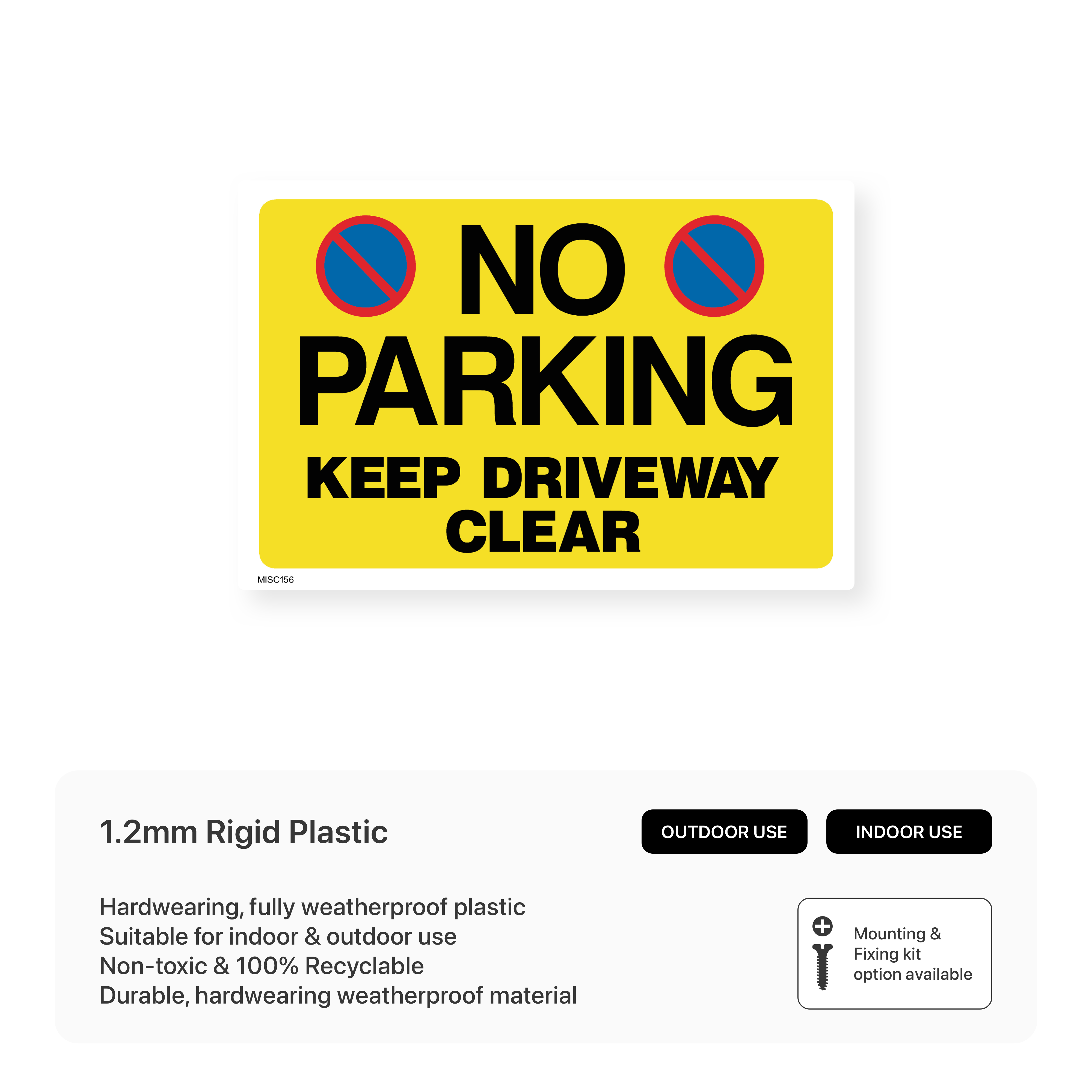 Ensure your driveway remains accessible with our "No Parking Keep Driveway Clear" signs. Clearly communicate parking restrictions and deter unauthorized parking.