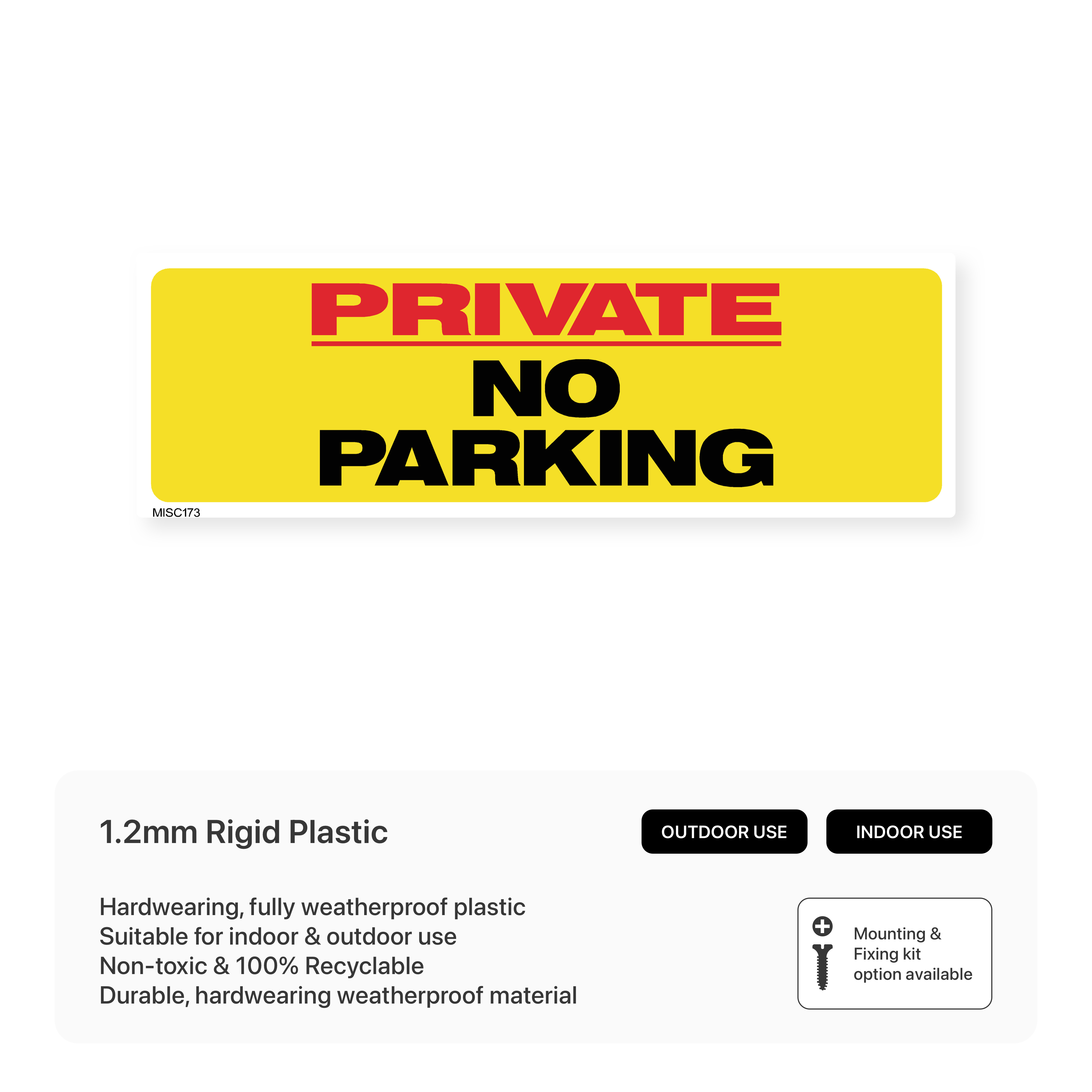 Clearly communicate parking restrictions on your private property with our "Private - No Parking" signs. Available in various sizes and materials.