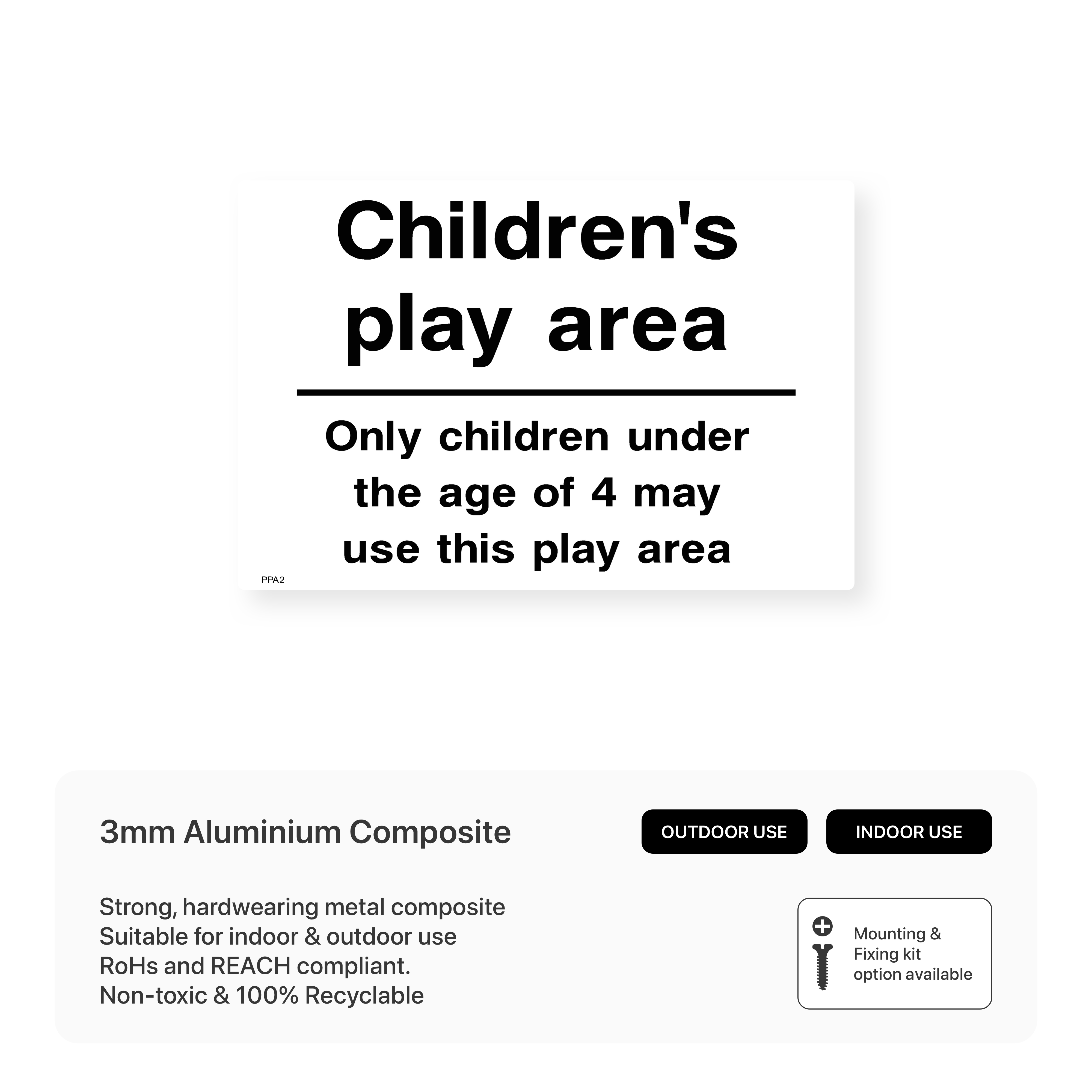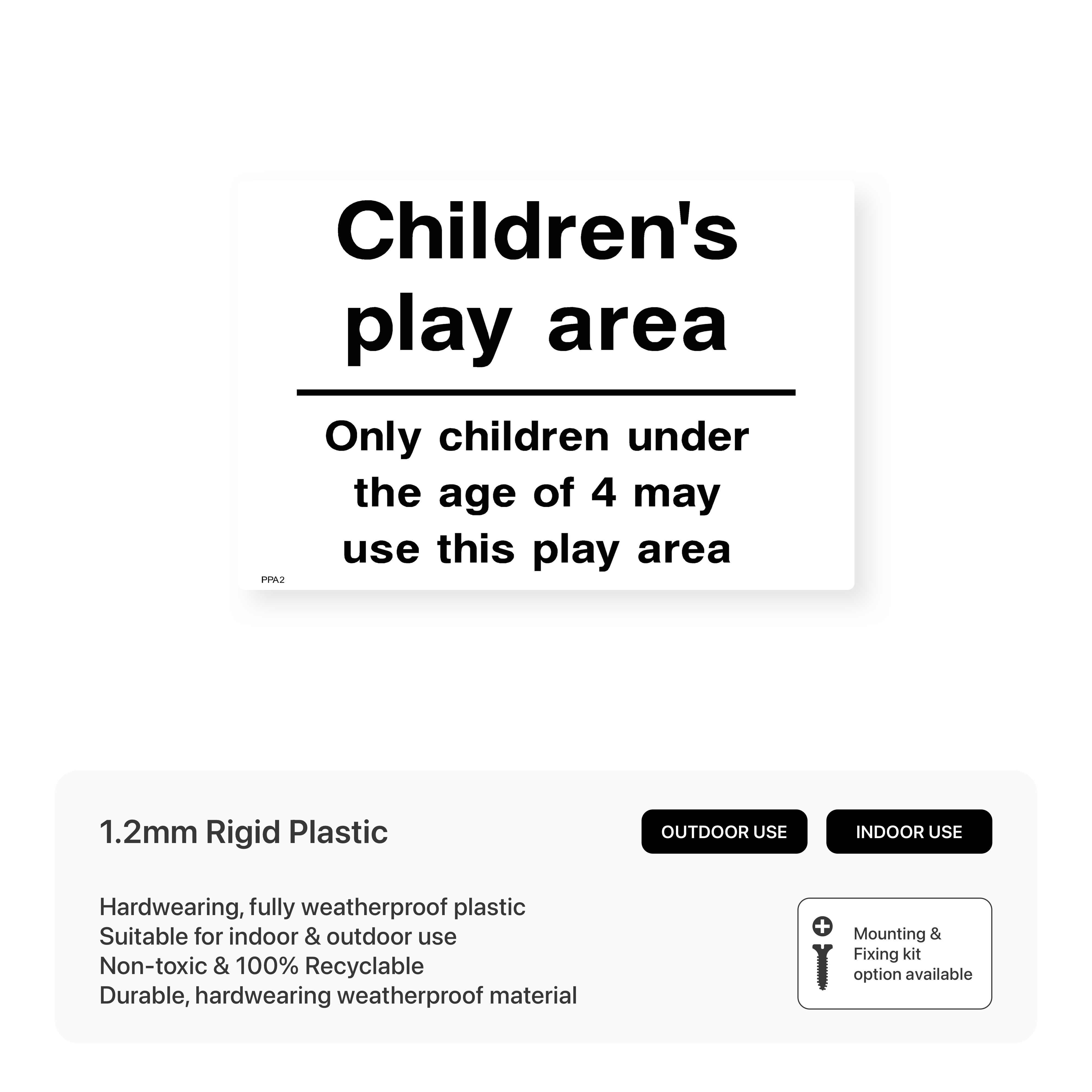 Clearly define age restrictions for your play area with our "Children's Play Area - Only Children Under the Age of 4 May Use This Play Area" sign. This sign helps create a safe and age-appropriate environment for younger children, preventing accidents and ensuring their well-being. Available in various sizes and materials, it is suitable for playgrounds, parks, and other recreational areas.