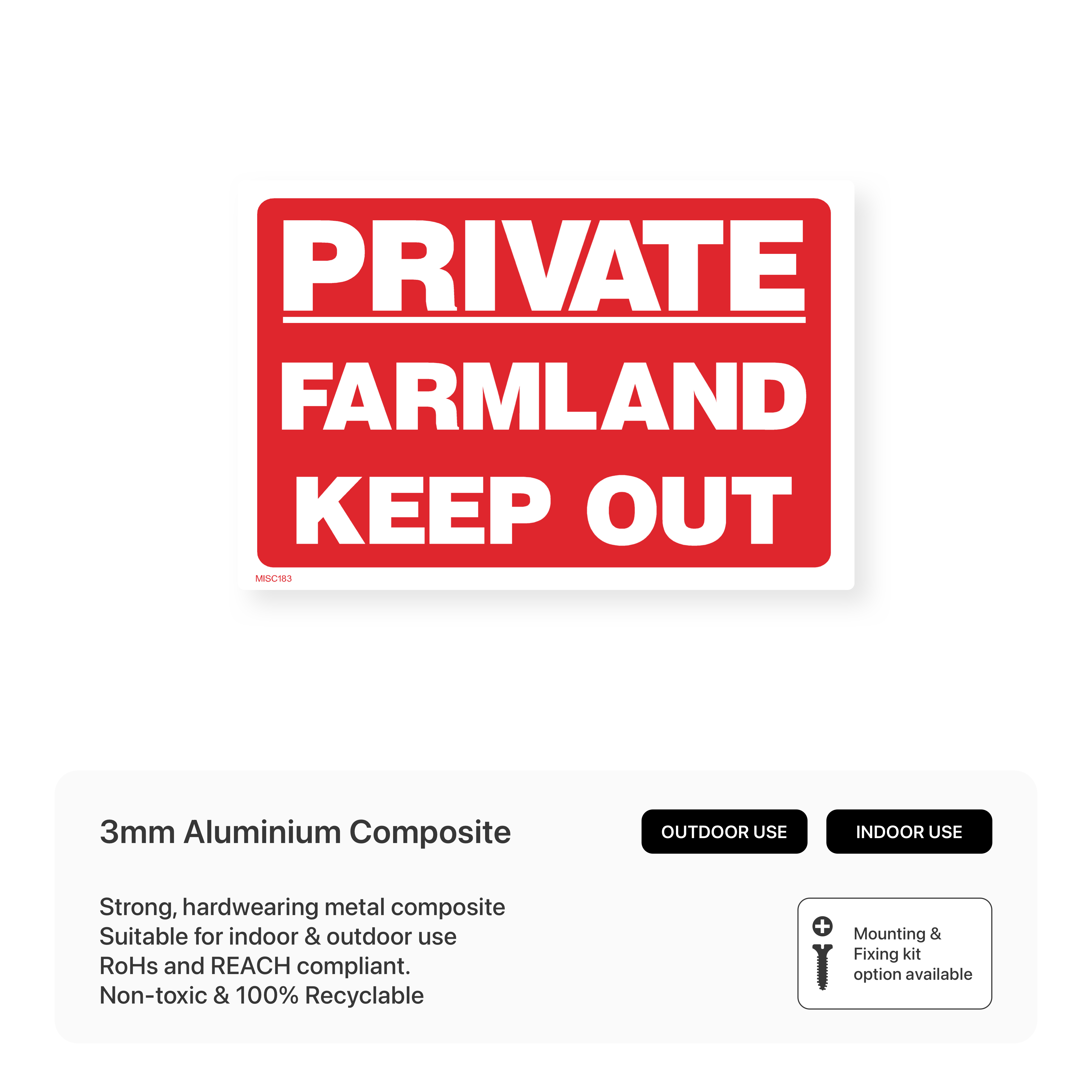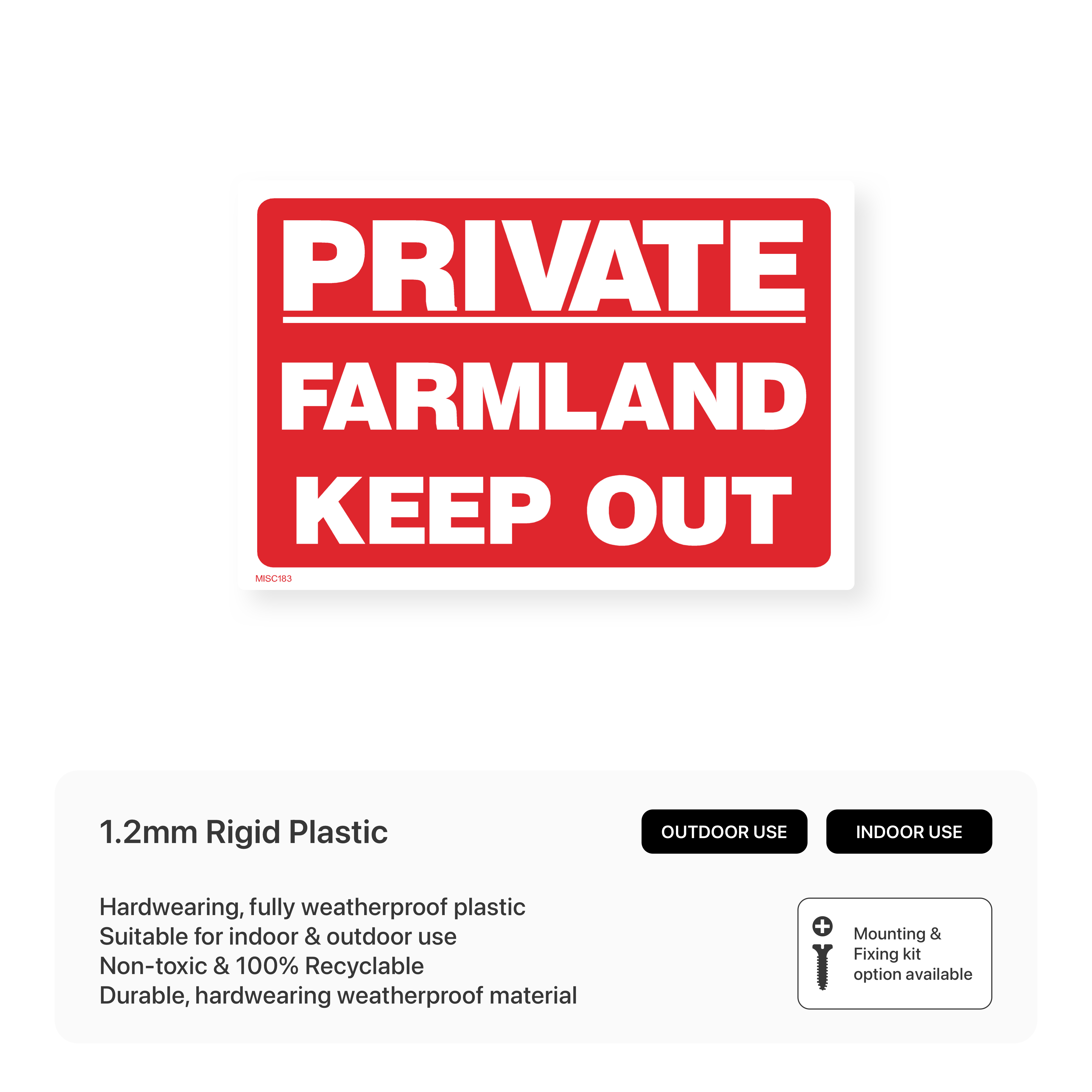 Secure your farmland and deter trespassers with our "Private Farmland Keep Out" signs.