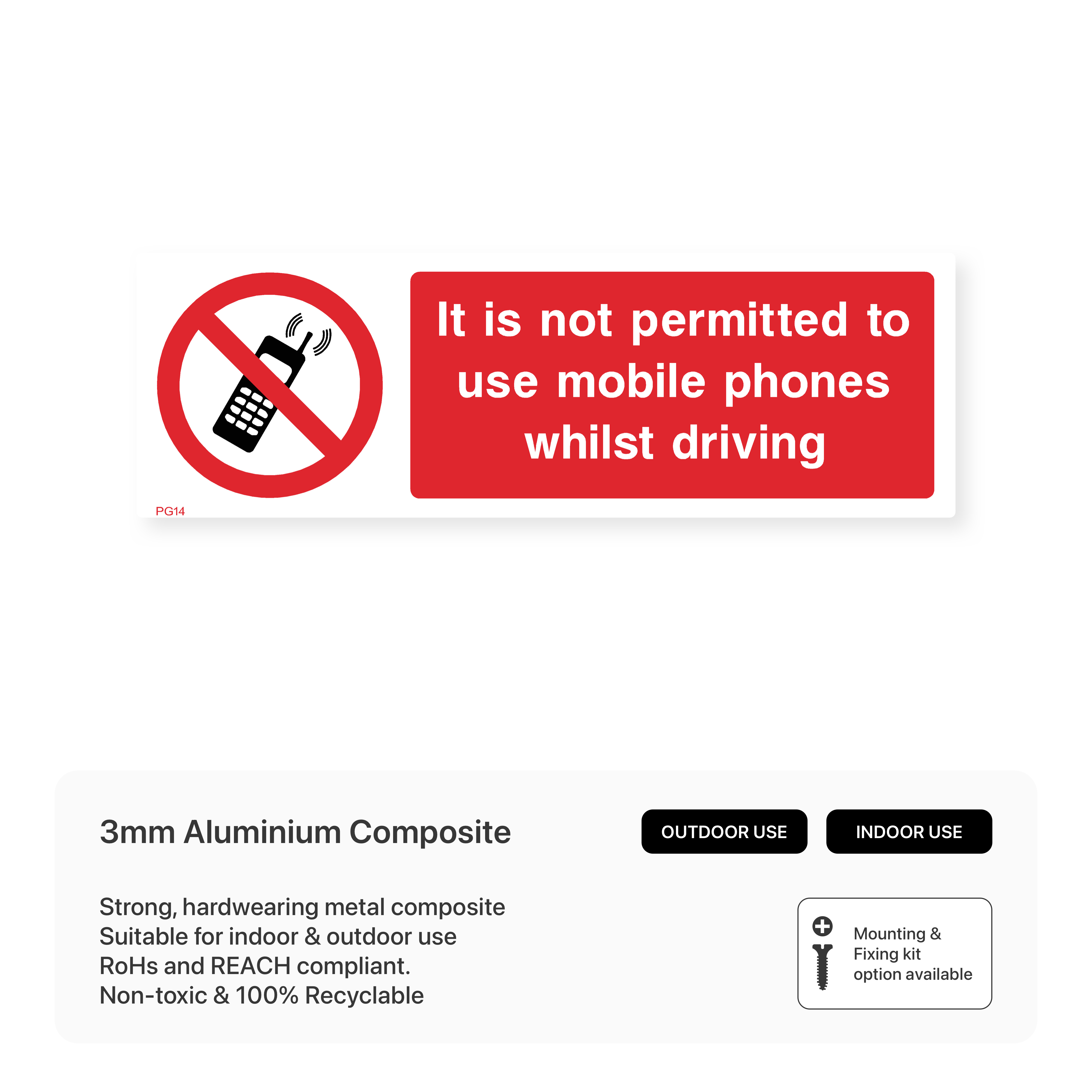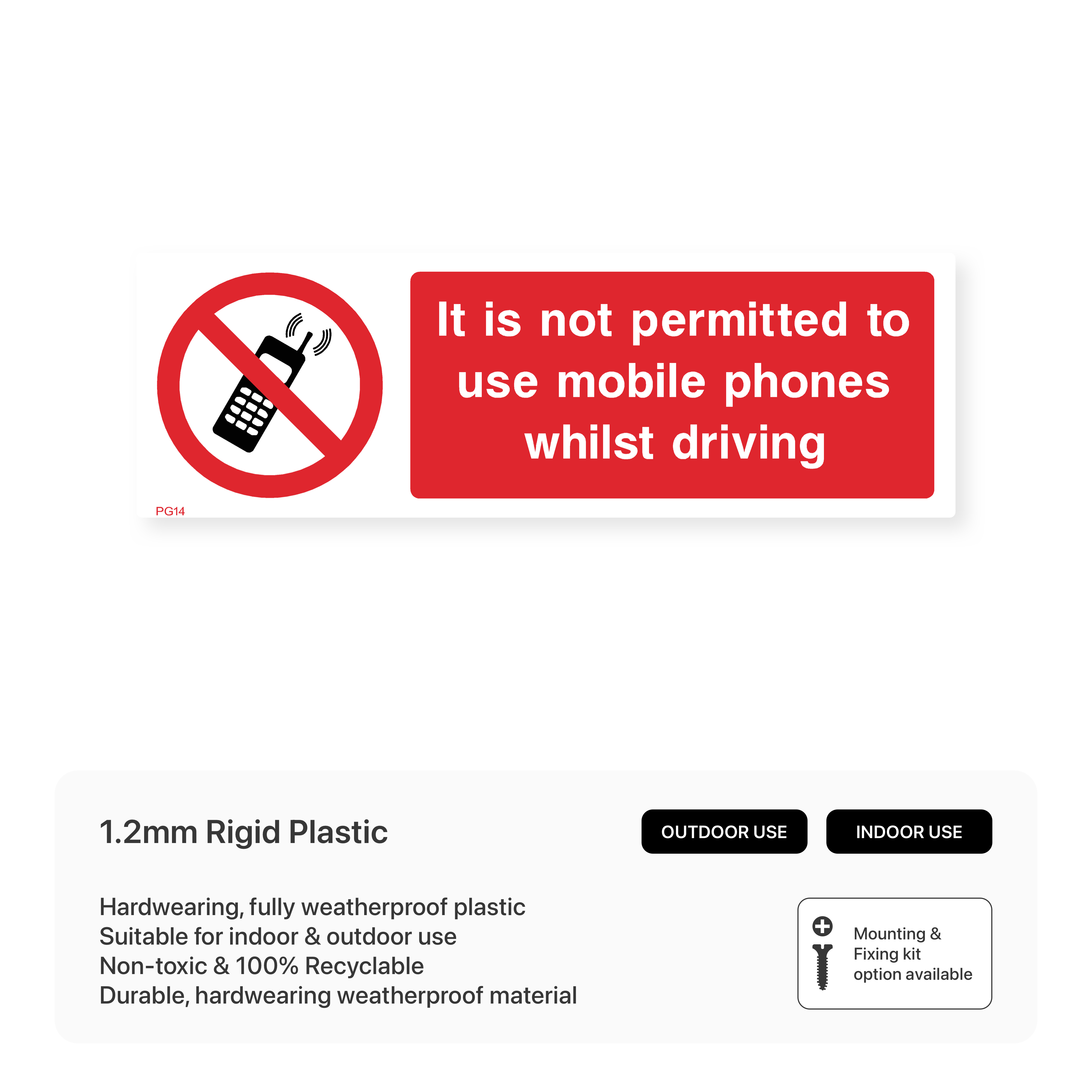 Ensure compliance with road safety laws with our "It is Not Permitted to Use Mobile Phones Whilst Driving" sign. This sign clearly communicates the legal restriction on mobile phone use while driving, promoting responsible behaviour and reducing the risk of accidents. Available in various sizes and materials, it is suitable for roadsides, workplaces, and other areas where distracted driving may be an issue.