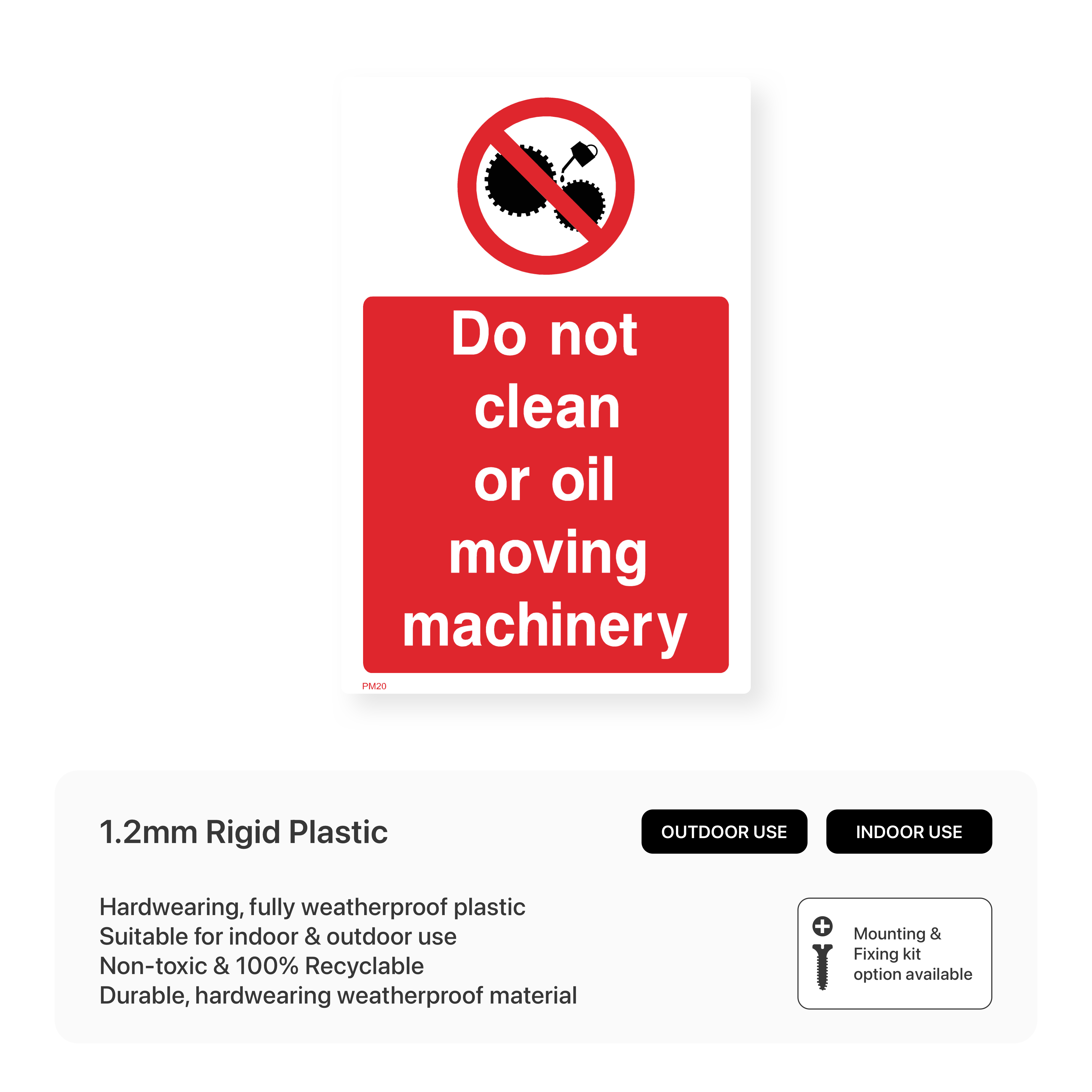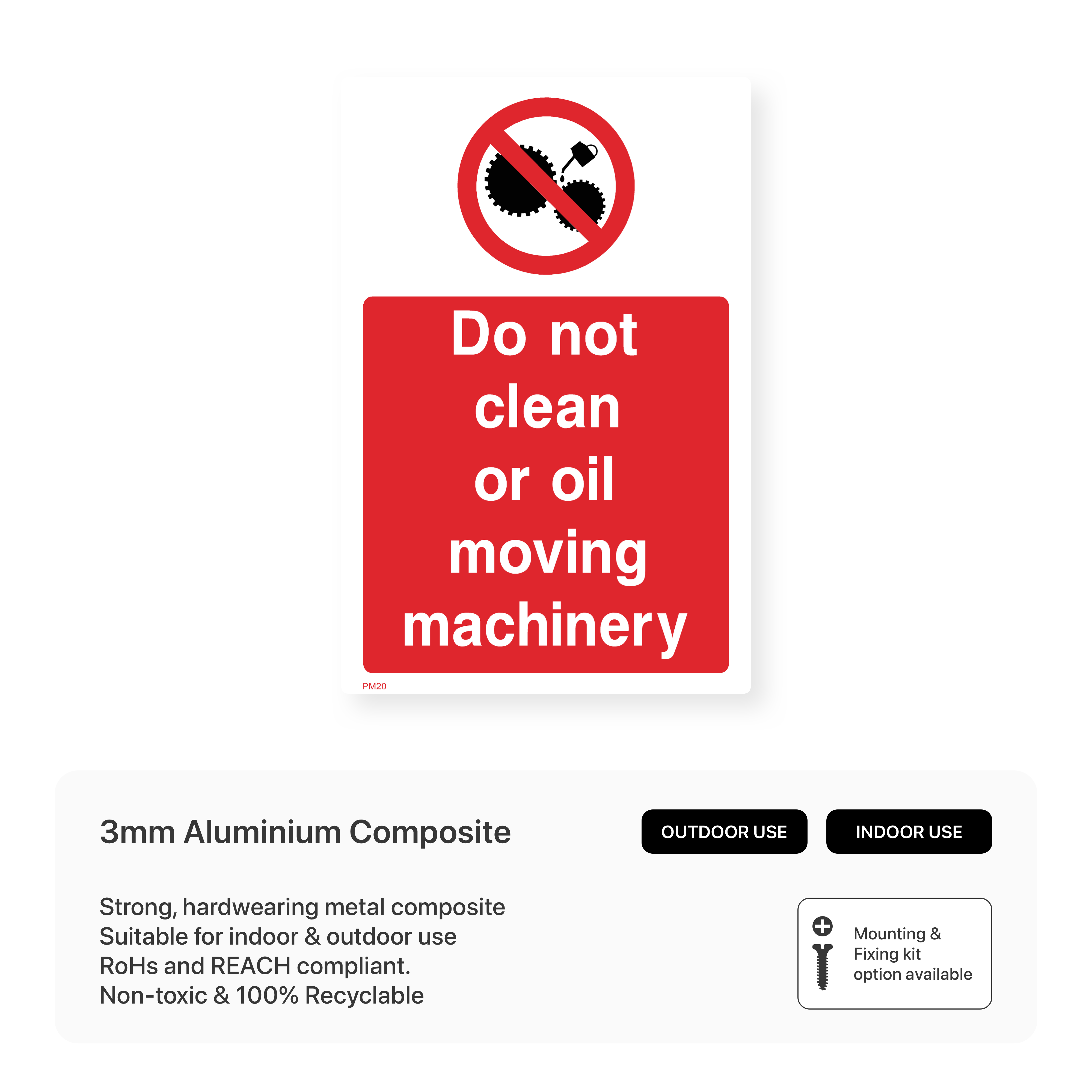 Prioritise safety and prevent accidents with our "Do Not Clean or Oil Moving Machinery" portrait sign. This sign clearly communicates the dangers of cleaning or oiling machinery while it is in motion.