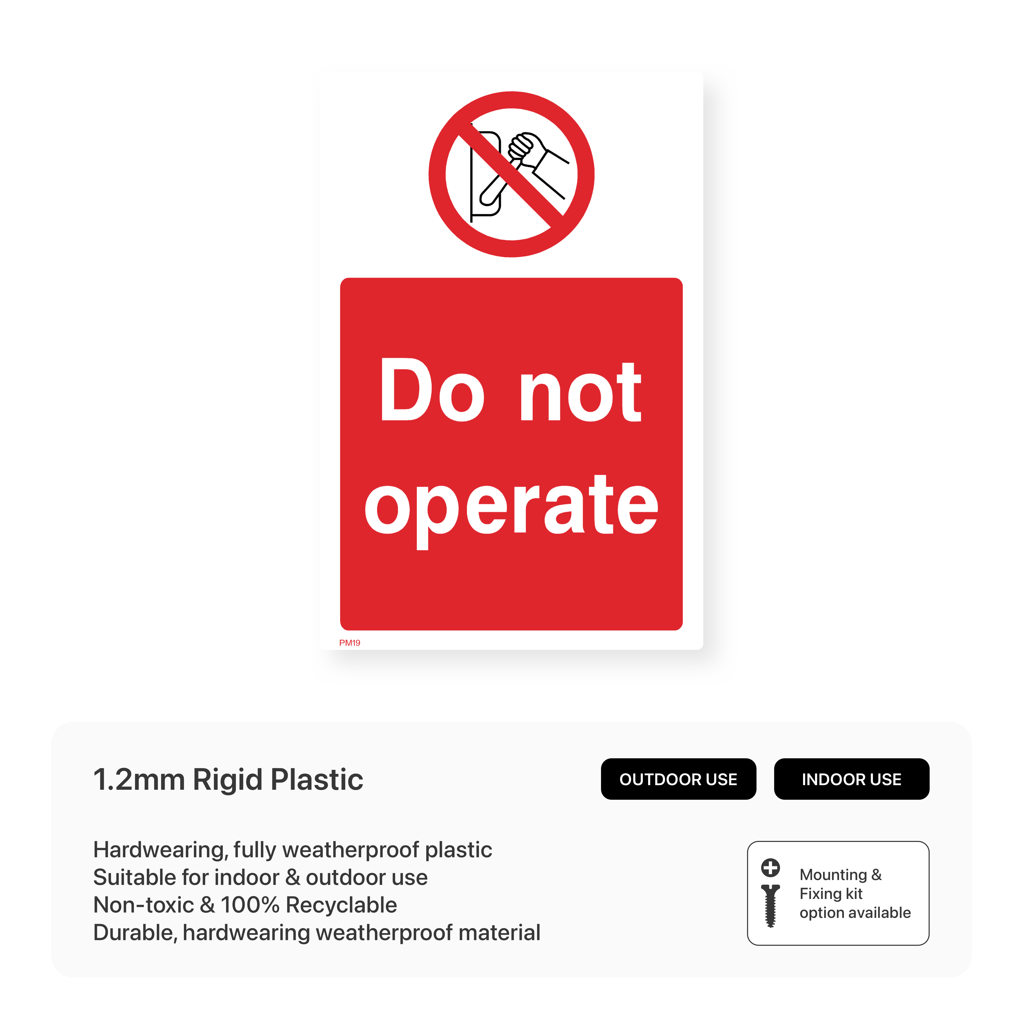 Clearly indicate out-of-service machinery with our "Do Not Operate" portrait sign. This sign effectively prevents the use of malfunctioning or unsafe equipment, ensuring the safety of your workforce.