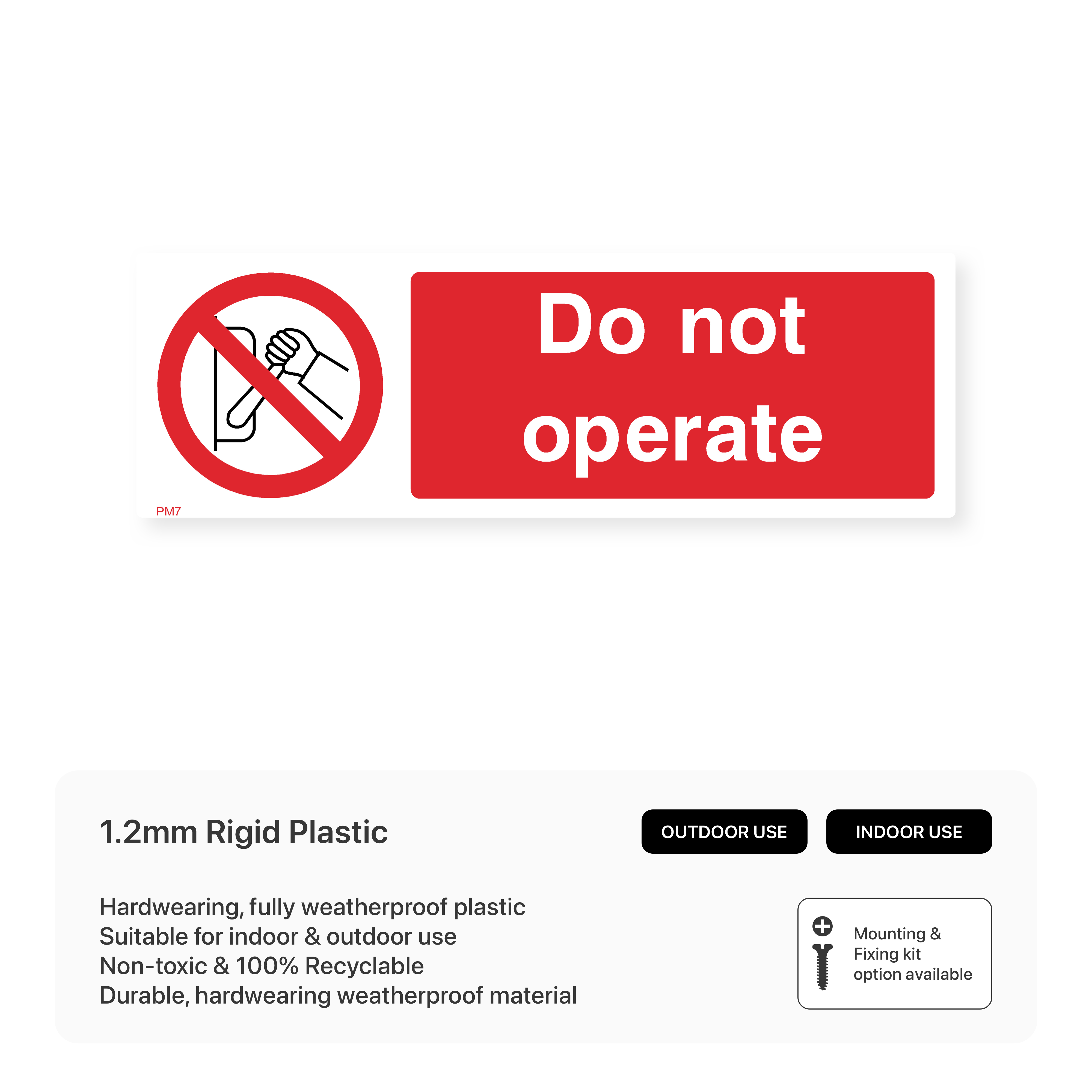Clearly indicate out-of-service machinery with our "Do Not Operate" sign. This sign effectively prevents the use of malfunctioning or unsafe equipment, ensuring the safety of your workforce. Choose from various sizes and materials to suit your specific needs.