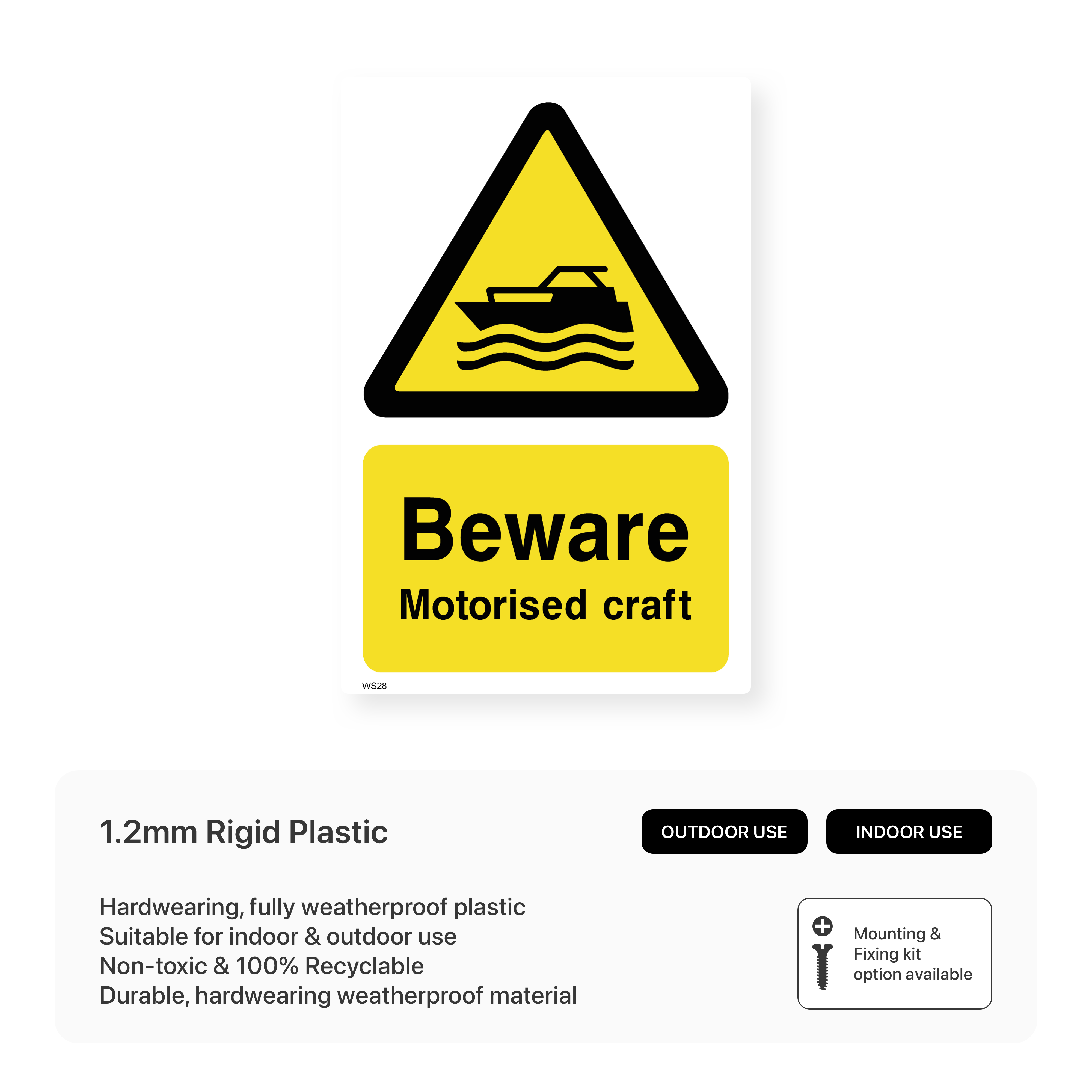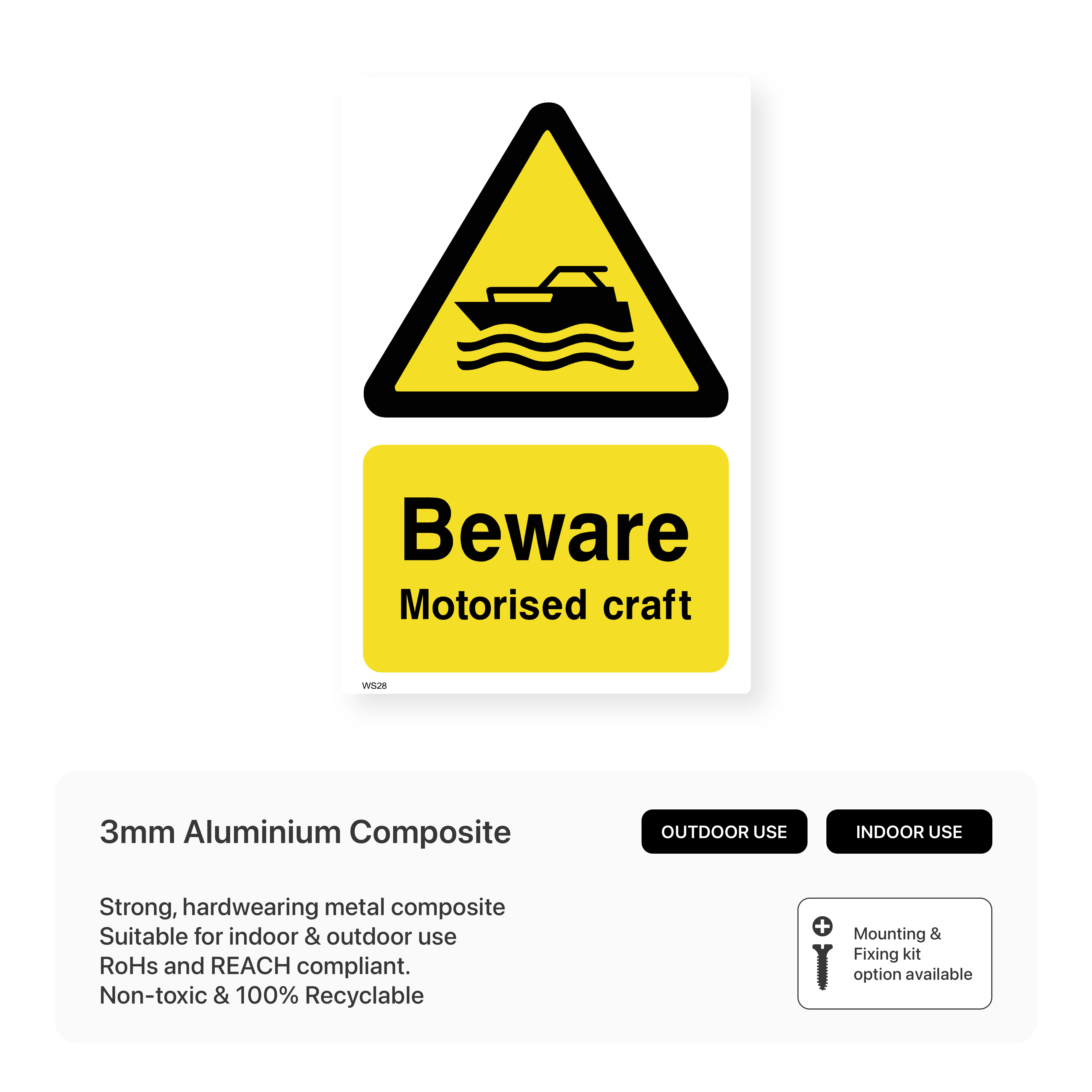 Alert swimmers and boaters to the presence of motorised craft with our "Beware - Motorised Craft" sign. Clearly indicates areas where motorised vessels operate, promoting safety and preventing accidents. Available in various sizes to suit different water bodies.
