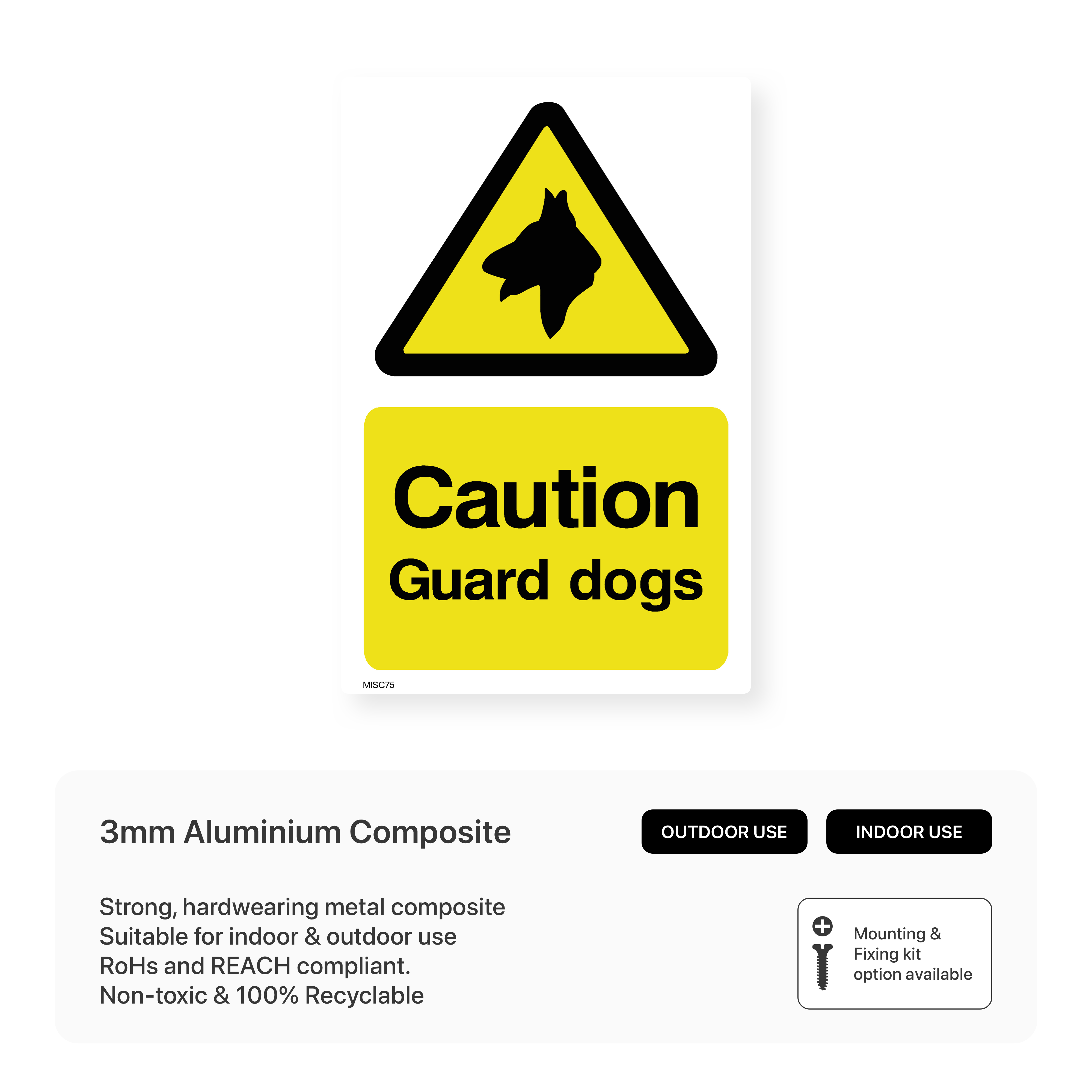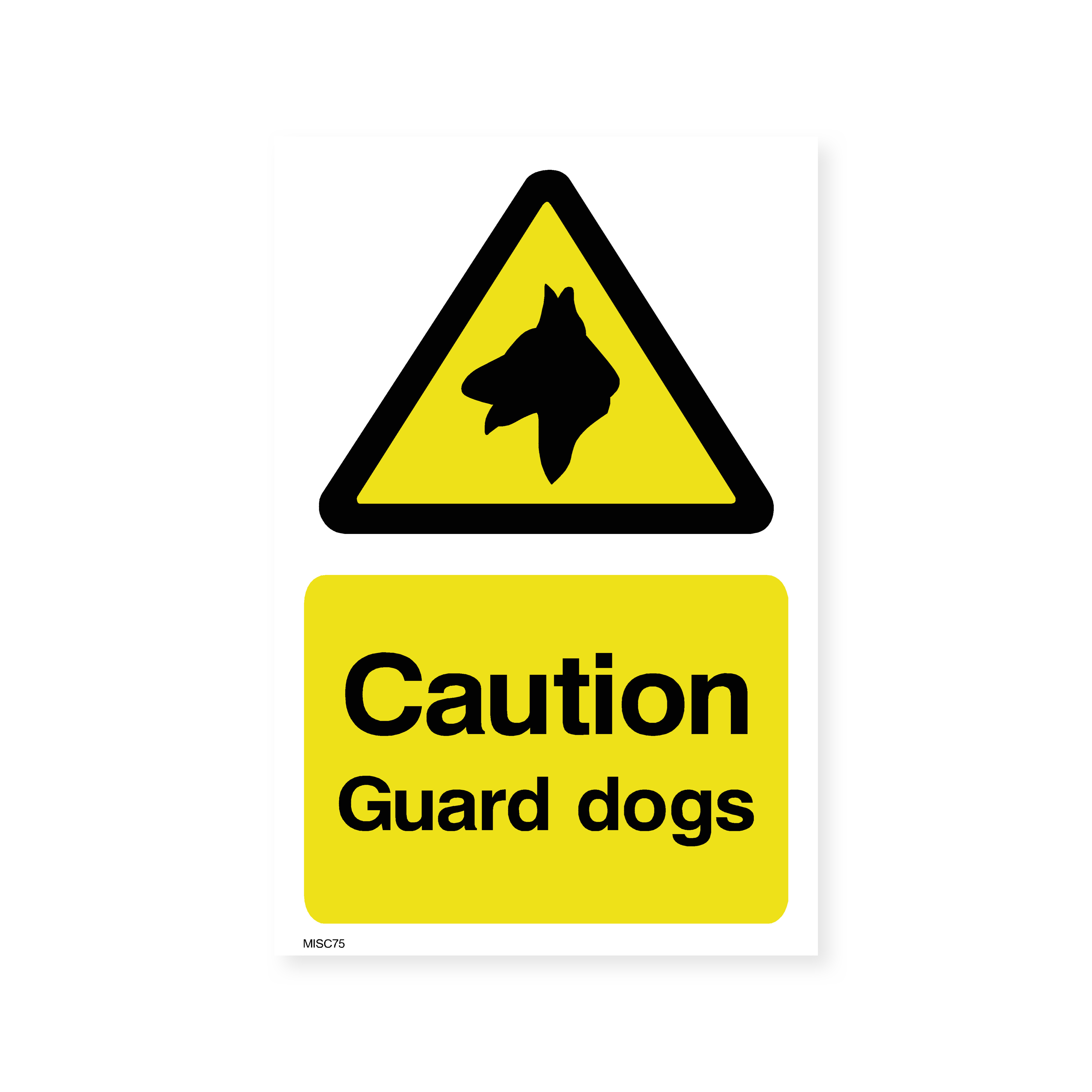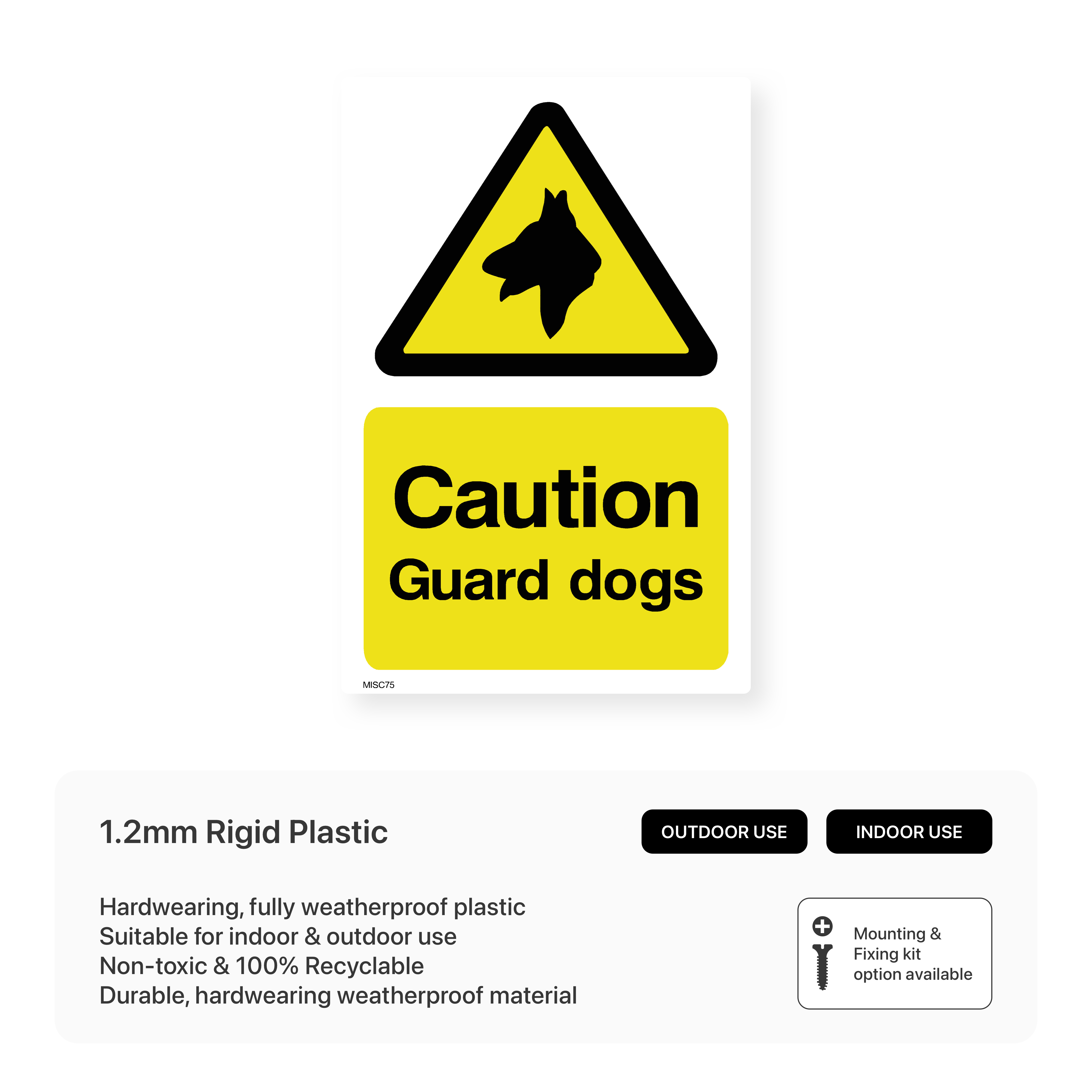 Warn visitors of guard dogs on your premises with our "Caution Guard Dogs" signs. Deter unwanted intruders and ensure the safety of your property.