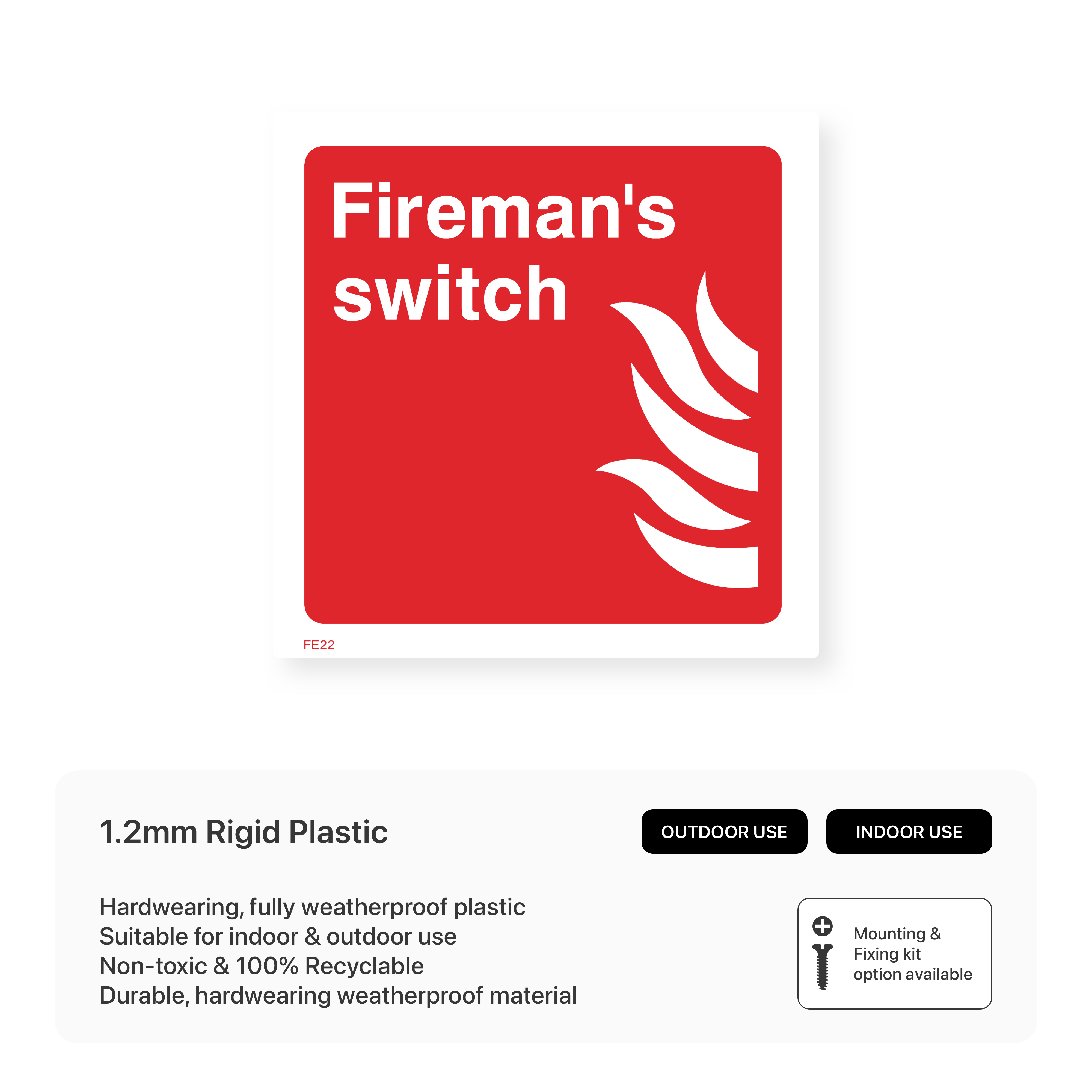 Clearly mark the location of the fireman's switch with our "Fireman's switch" sign. This sign helps firefighters quickly locate and activate the switch, which controls essential systems during emergencies.