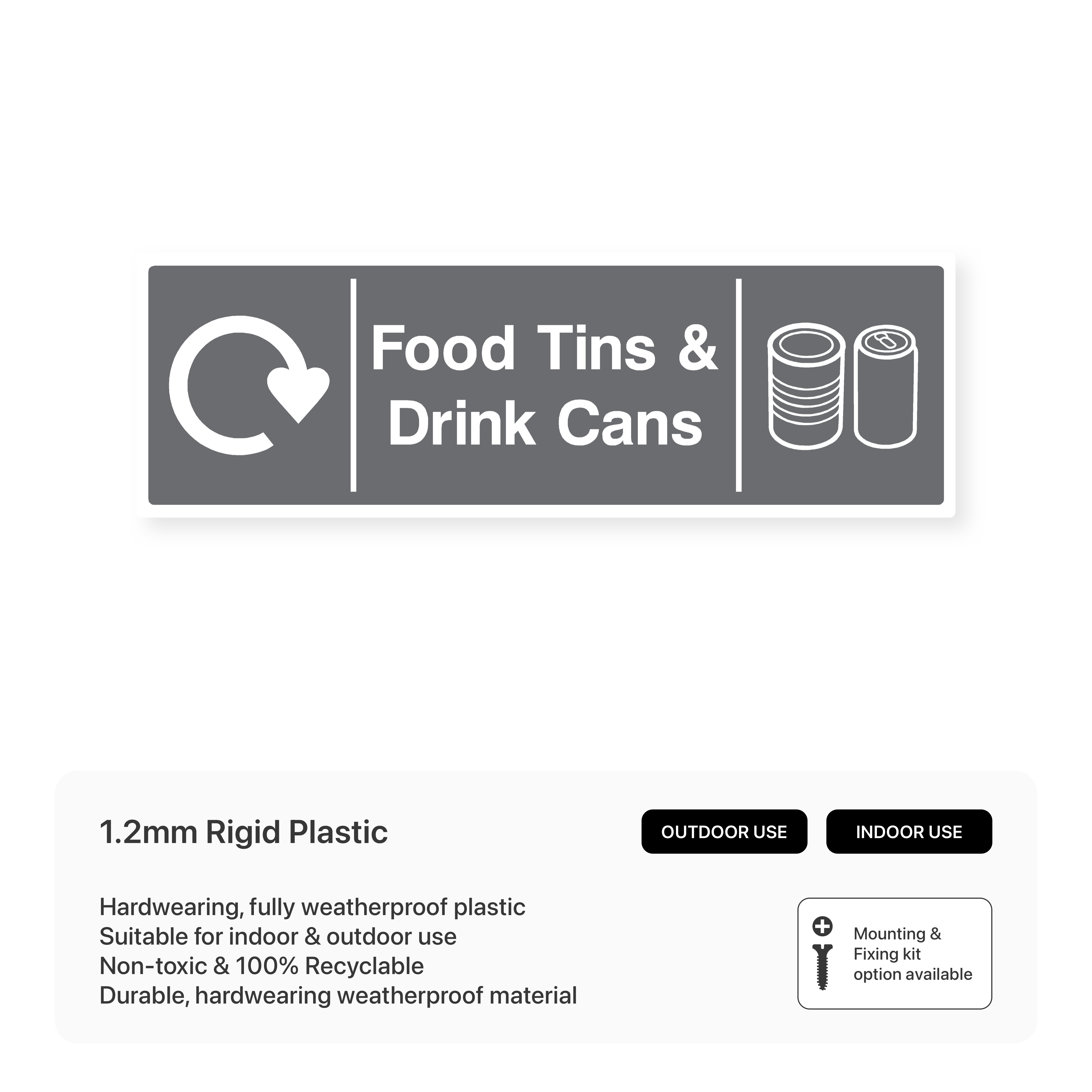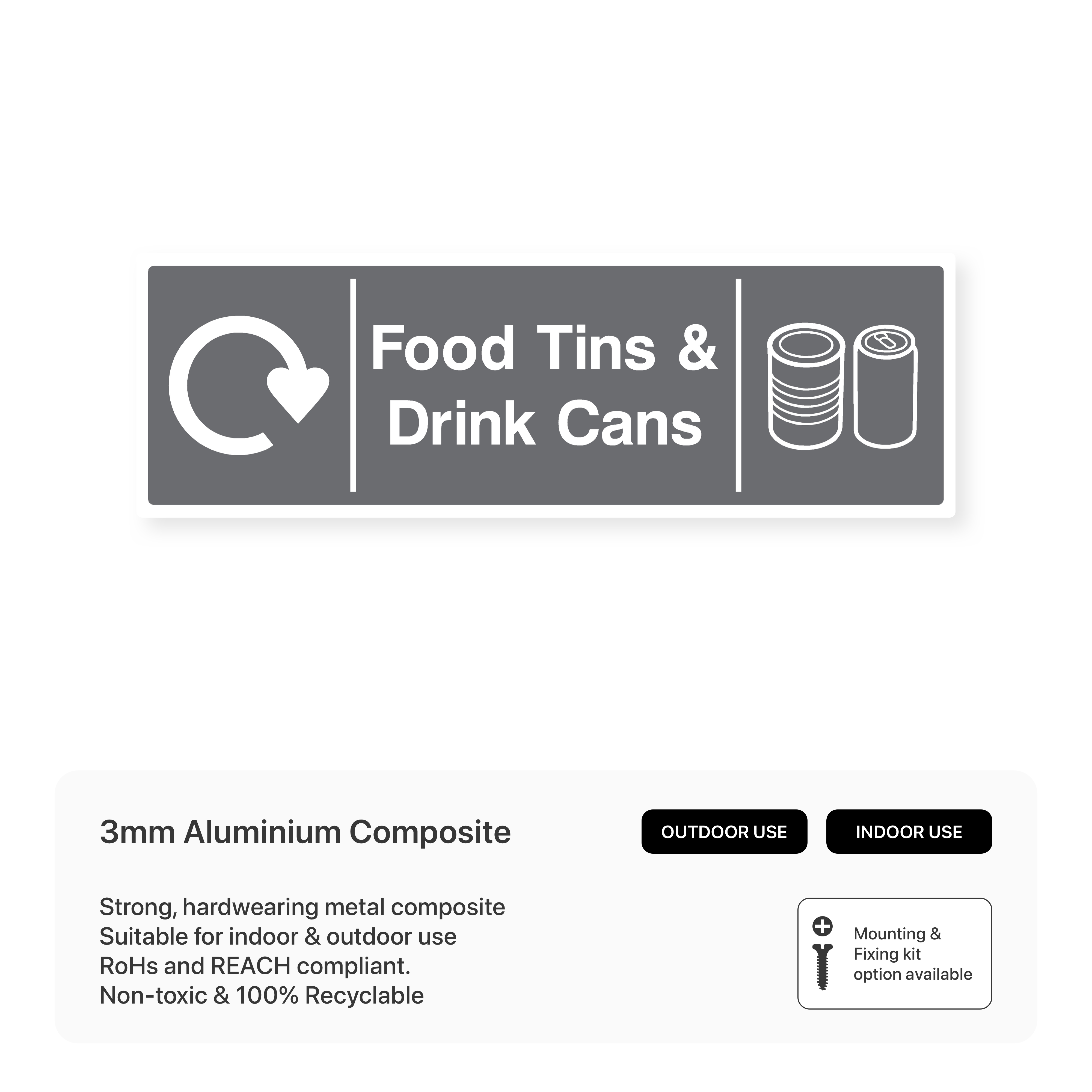 Food Tins & Drink Cans - Recycling: Encourage recycling of food tins and drink cans with this informative sign. Help reduce waste and conserve resources by directing these items to the correct recycling bins.