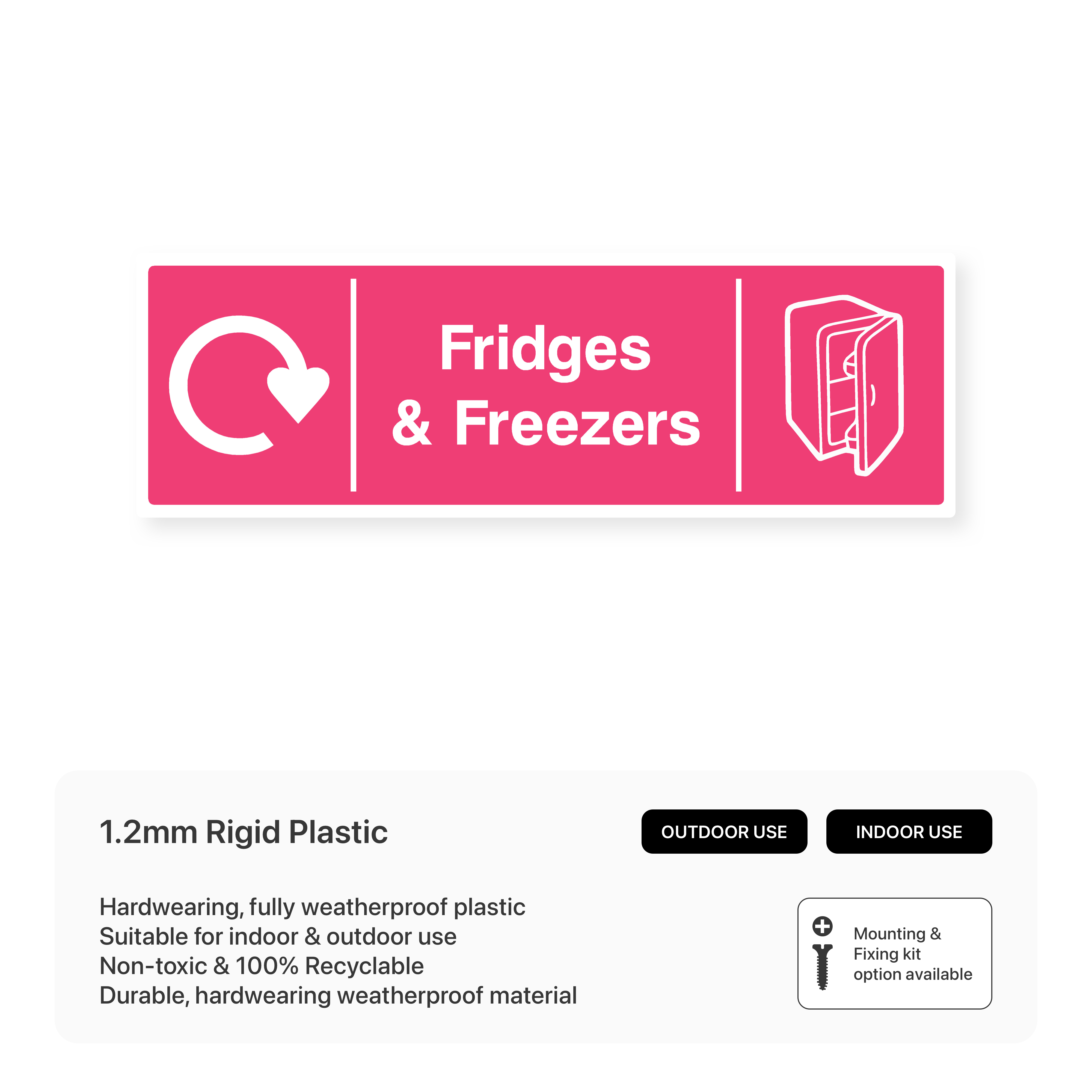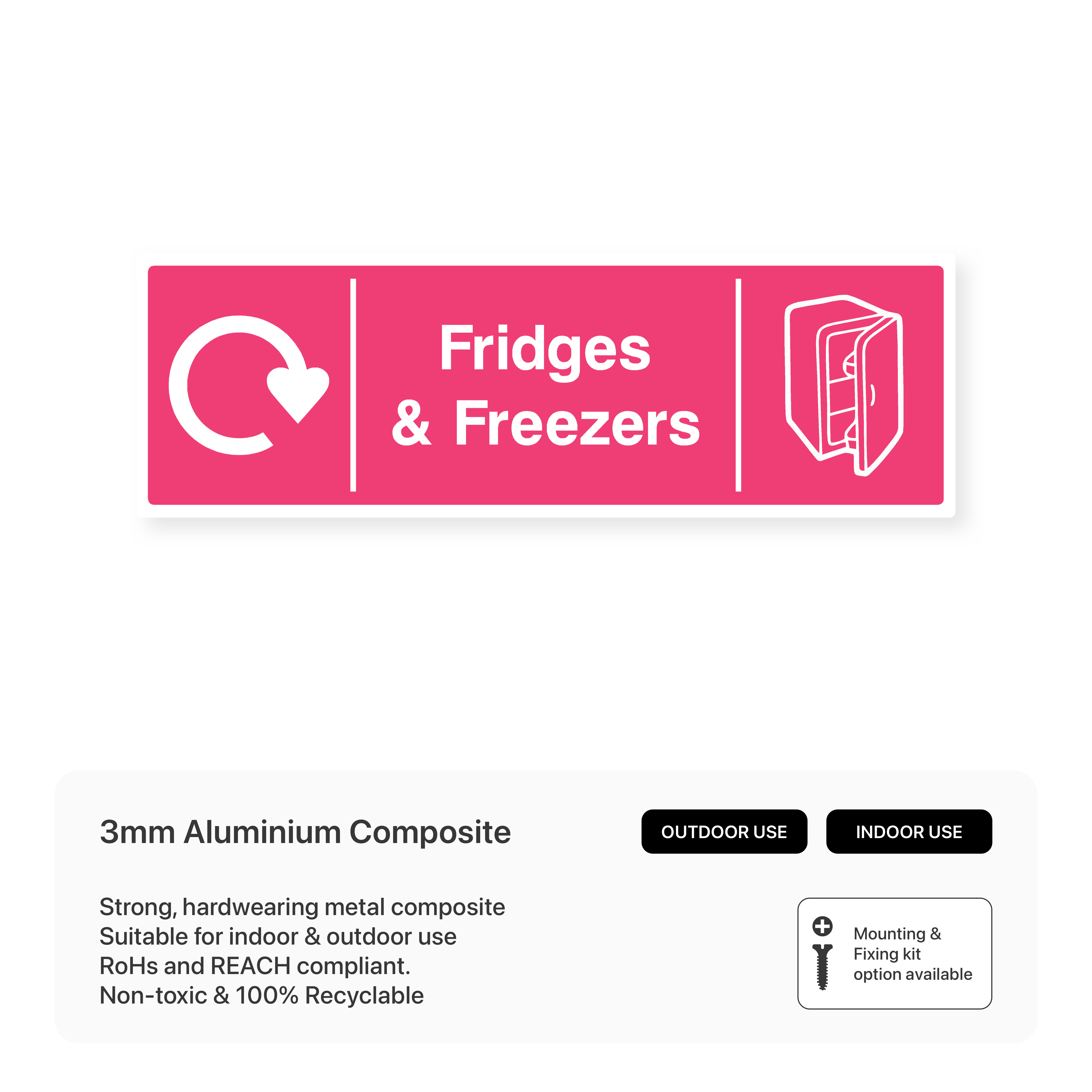 Fridge & Freezers - Recycling: Guide disposal of fridges and freezers with this clear sign. Direct these appliances to designated areas for proper recycling and disposal, ensuring the safe removal of harmful refrigerants and promoting responsible waste management.