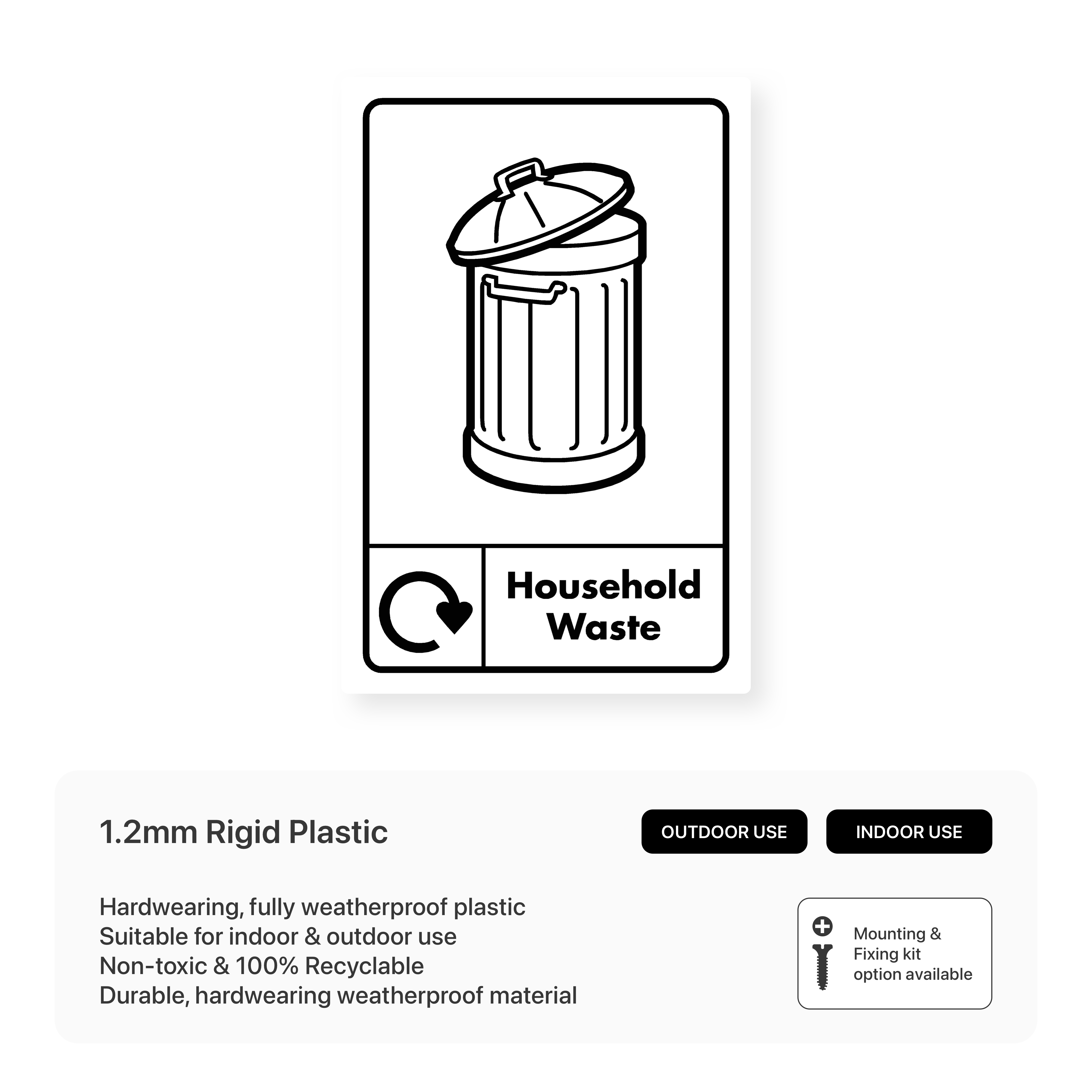 Household Waste - Portrait - Recycling: Direct household waste to designated bins with this portrait-oriented sign. Help maintain a clean and organized environment by ensuring proper disposal of household waste.