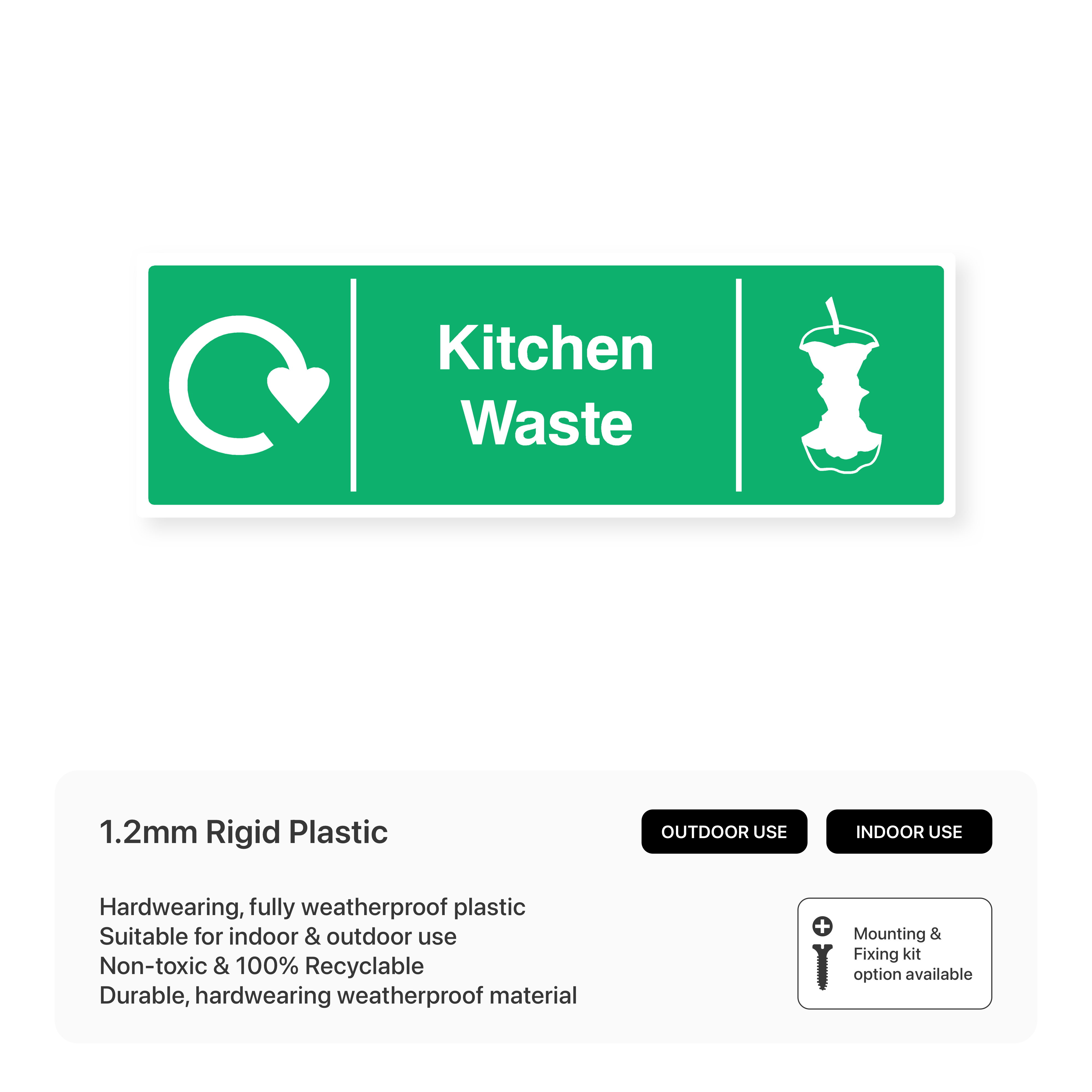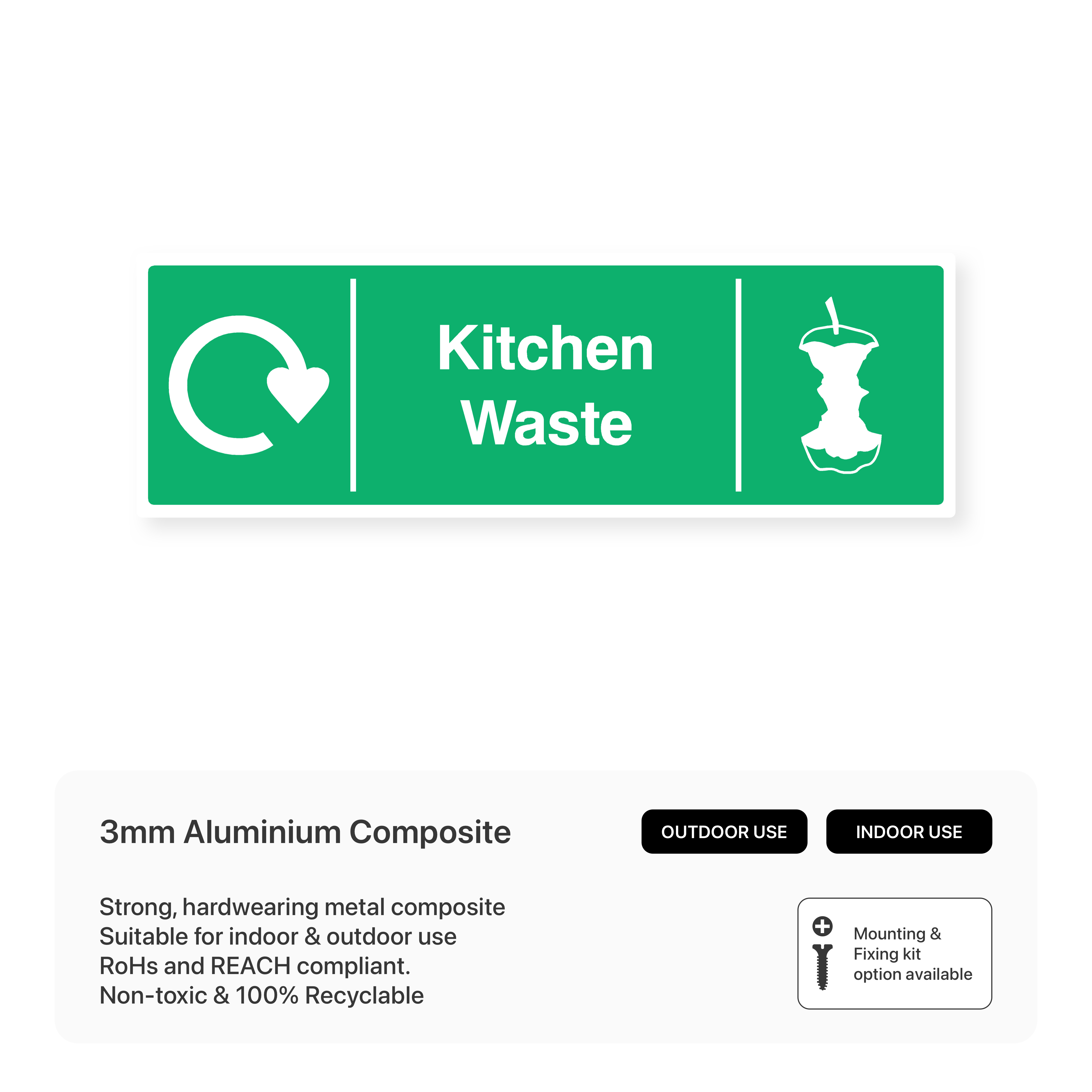 Kitchen Waste - Recycling: Encourage composting and recycling of kitchen waste with this informative sign. Help reduce landfill waste and create nutrient-rich compost by directing kitchen waste to designated areas or collection bins.